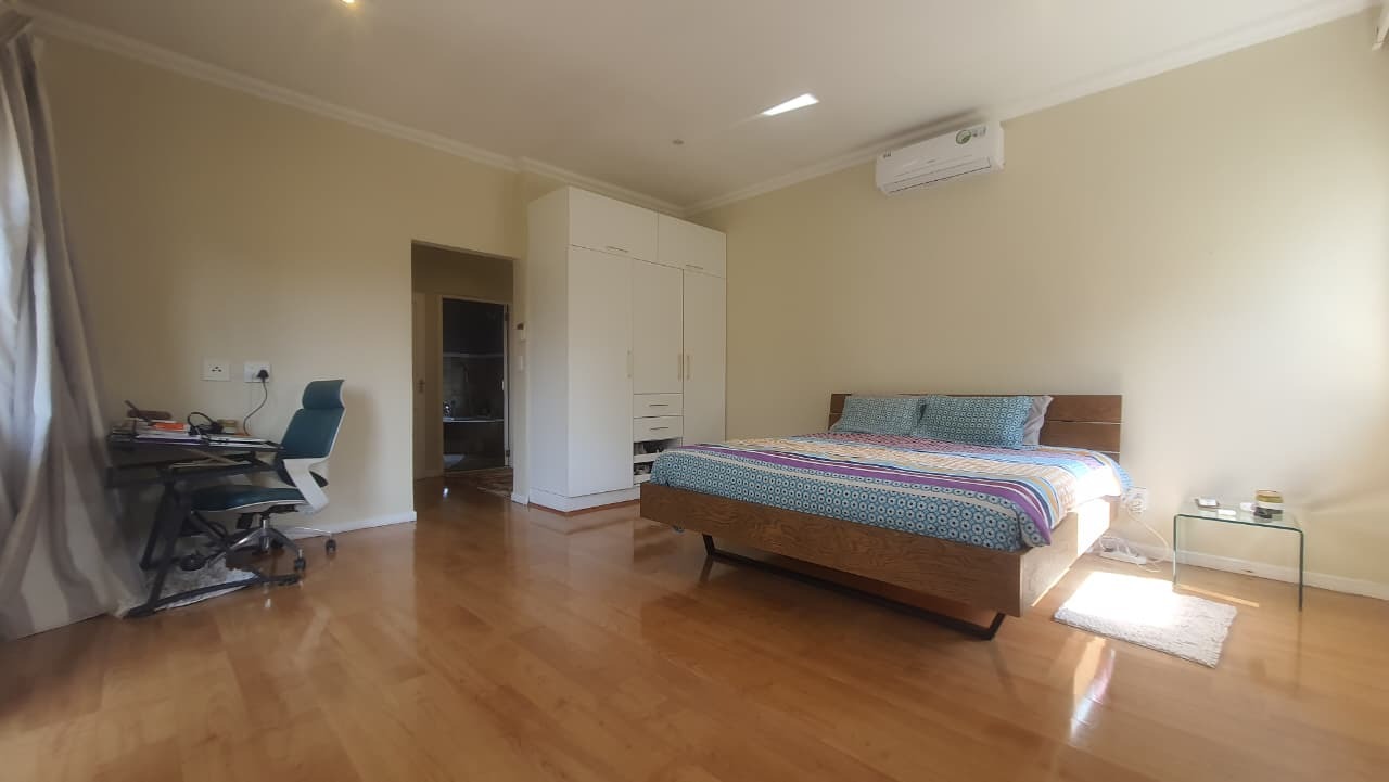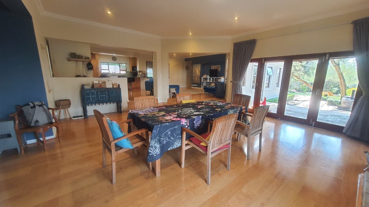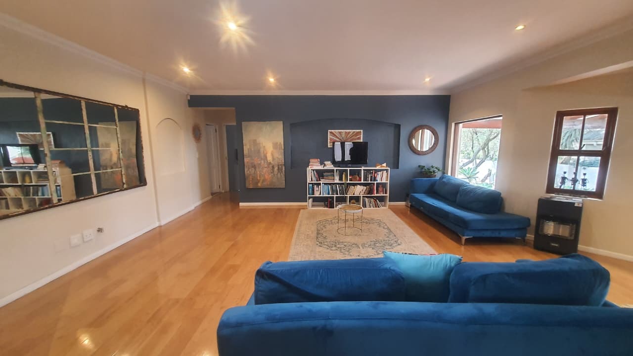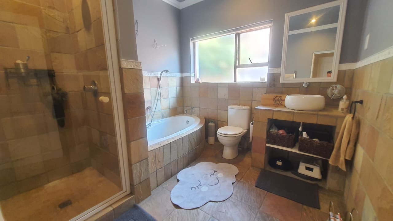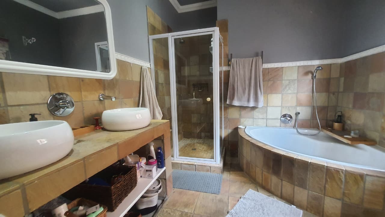 A large covered patio with a built-in braai overlooks a beautifully manicured garden, providing an ideal space for relaxing or entertaining. The property includes a double automated garage and additional driveway parking. There is no pool, making this home easy to maintain, and its position within the estate adds to its overall appeal.