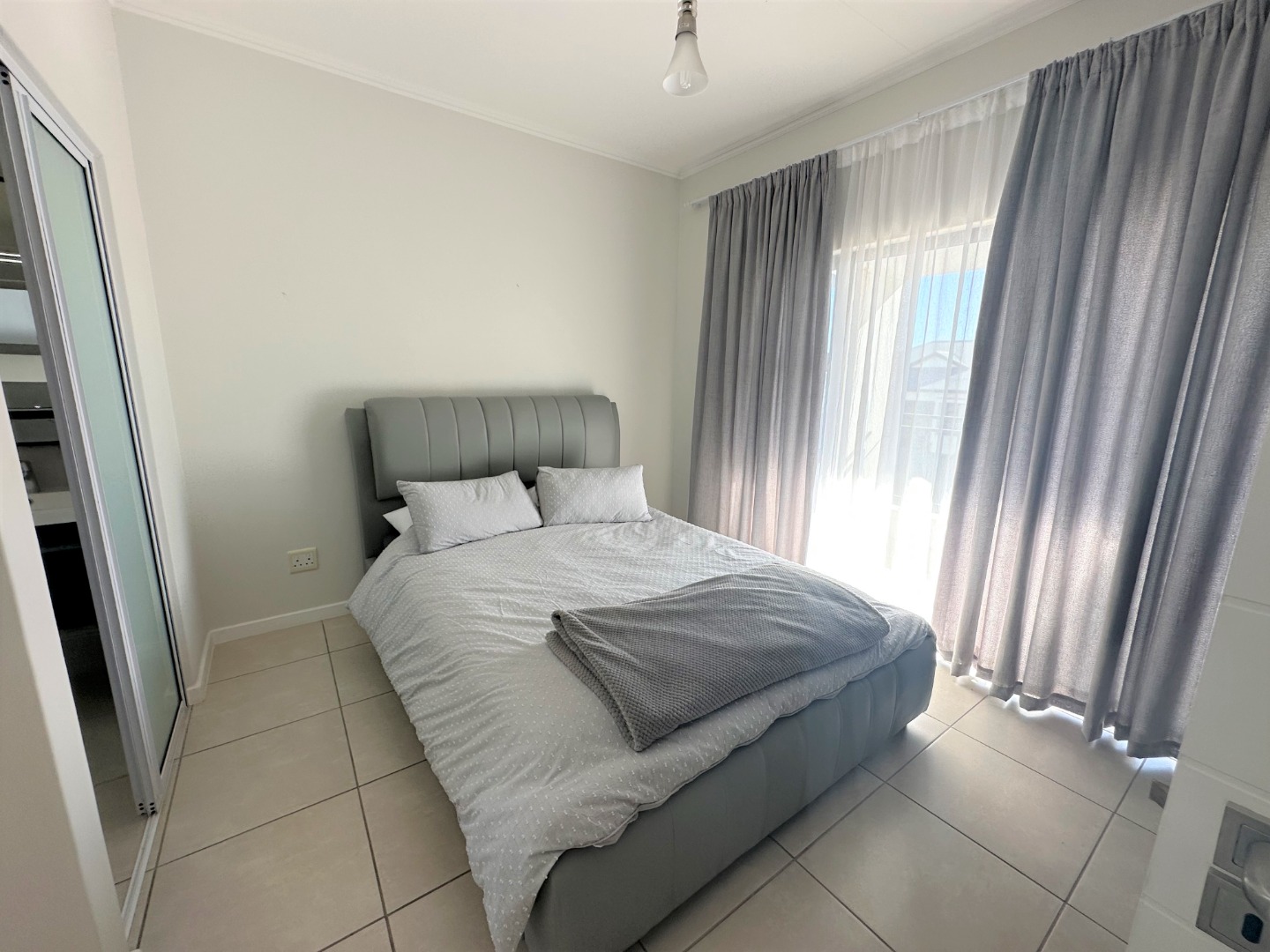 One spacious bedroom - well lit - streaming with sunlight.