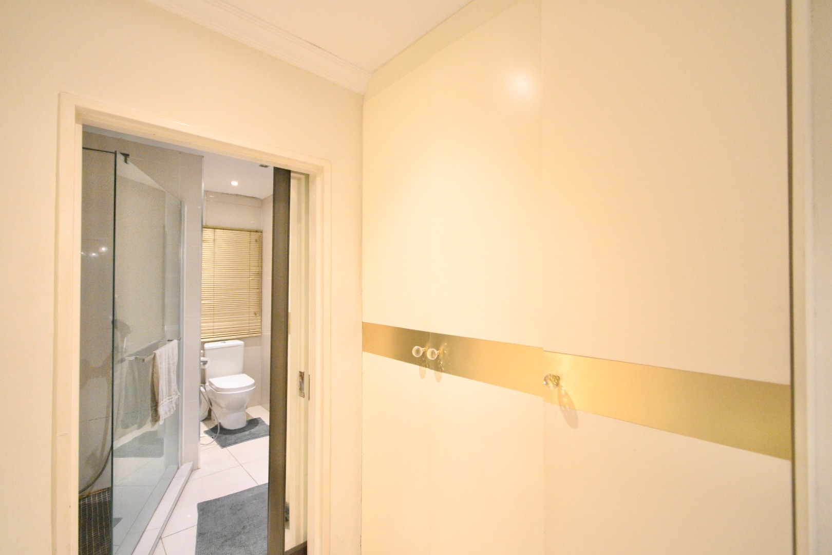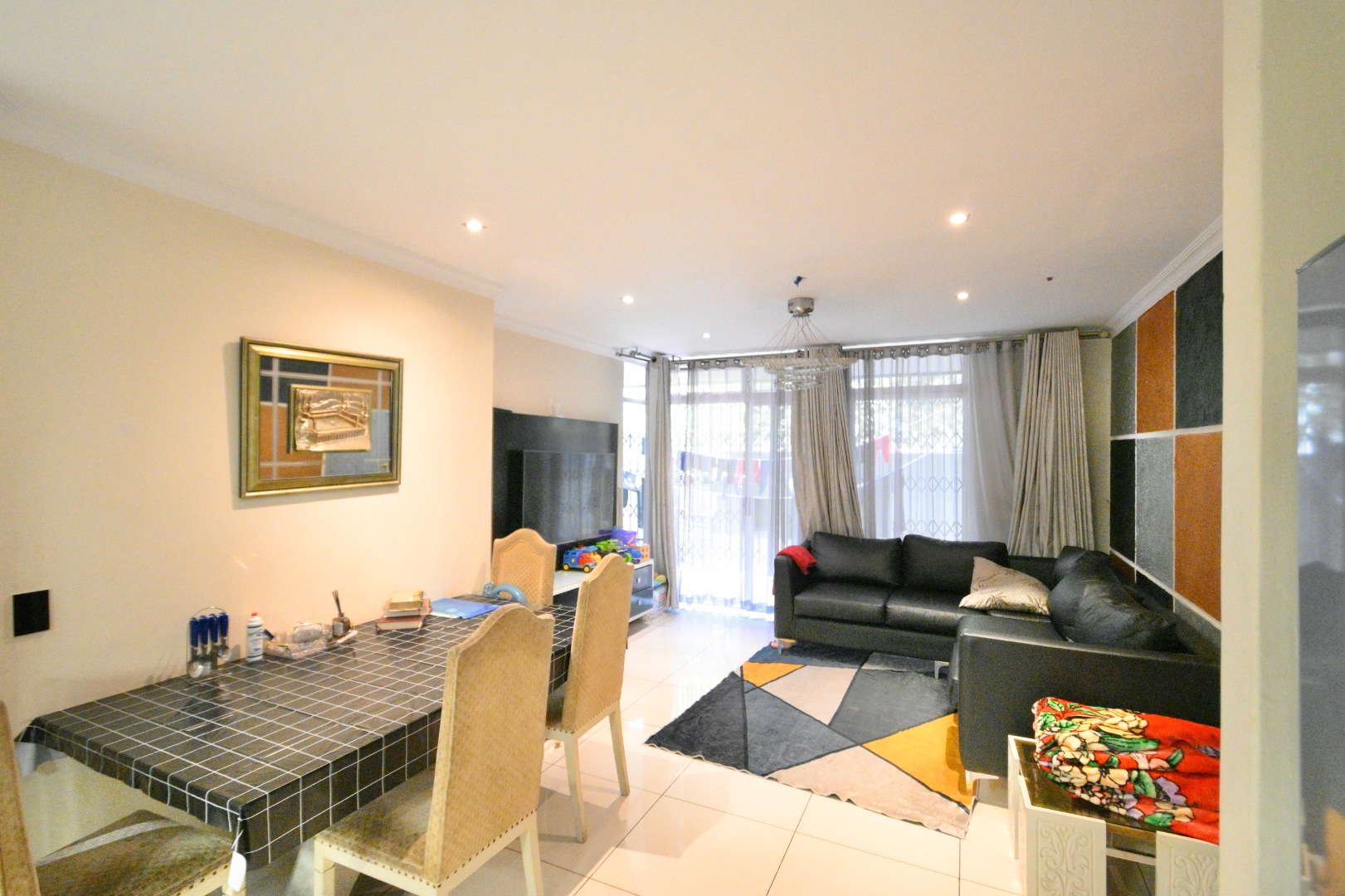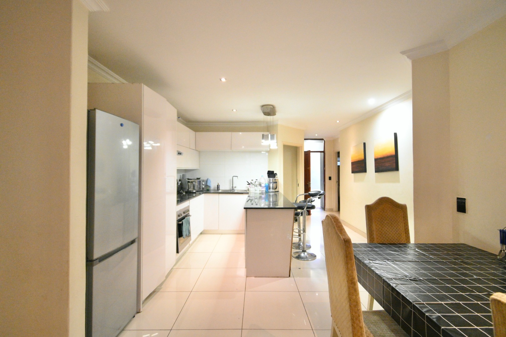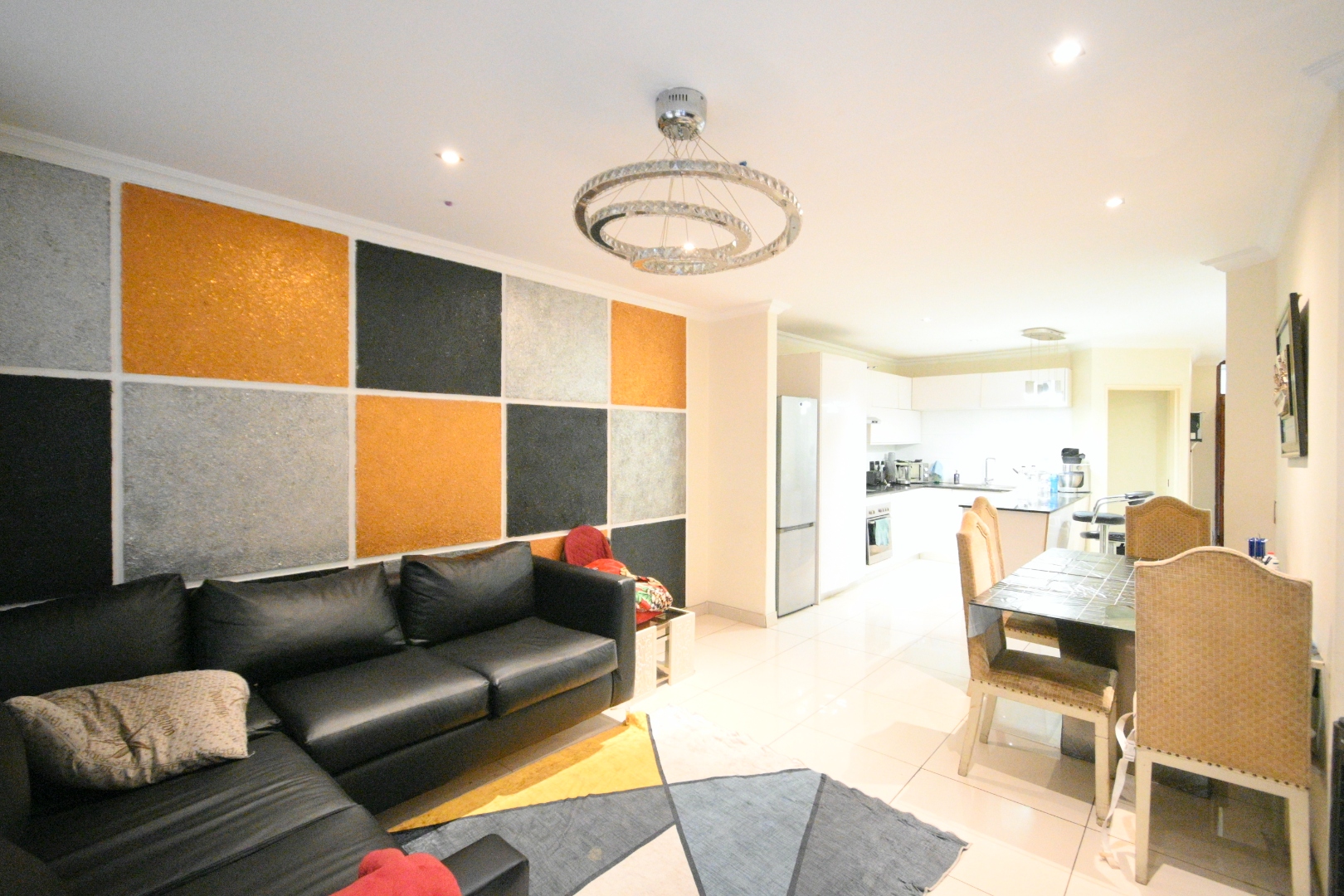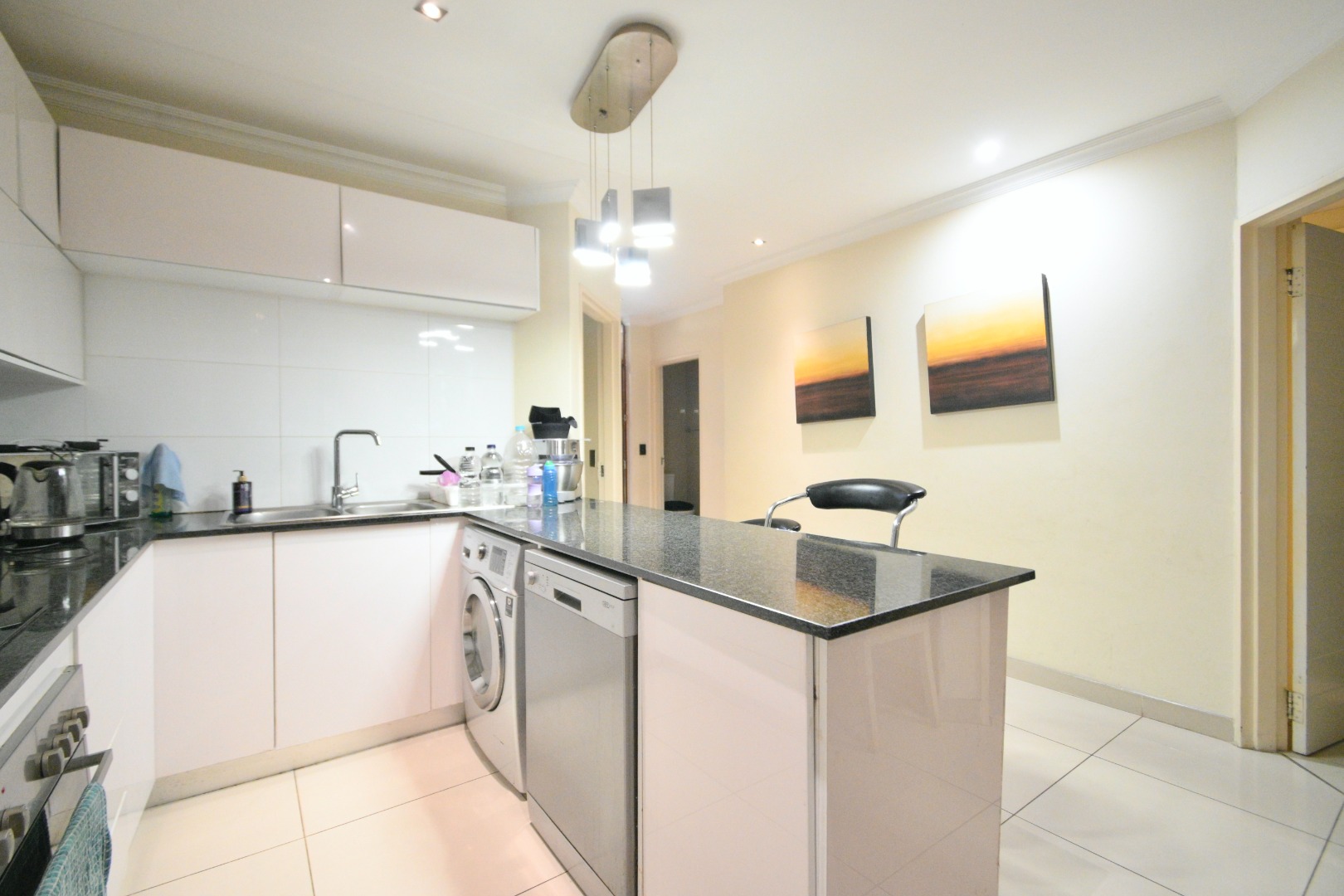 Discover modern living in this stylish, furnished ground floor apartment available for rent in the The Houghton Lofts, Johannesburg. Spanning 91 square metres, this residence offers an open-plan layout designed for comfort and convenience. The heart of the home features a sleek, modern kitchen equipped with glossy white cabinetry, dark granite countertops, and a functional island with bar seating. Integrated appliances, including a washing machine, dishwasher, and oven, ensure a seamless living experience. The space flows effortlessly into a dining area and lounge, perfect for both relaxation and entertaining.