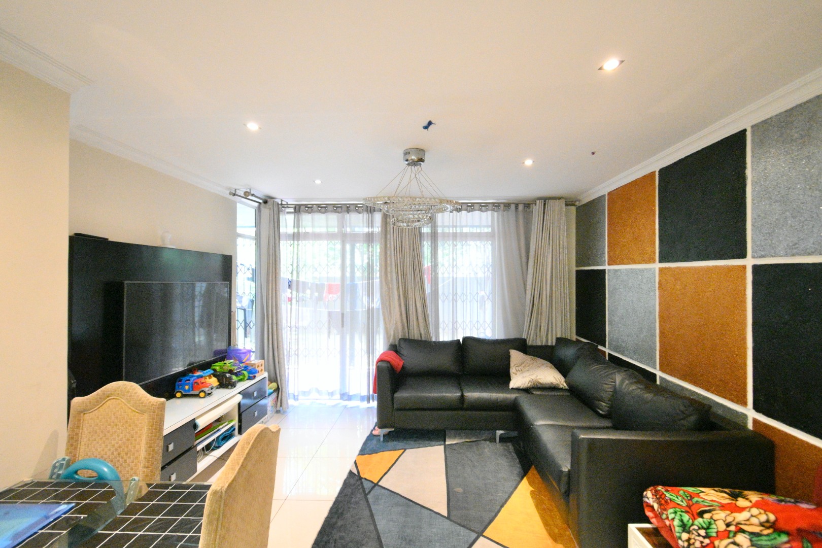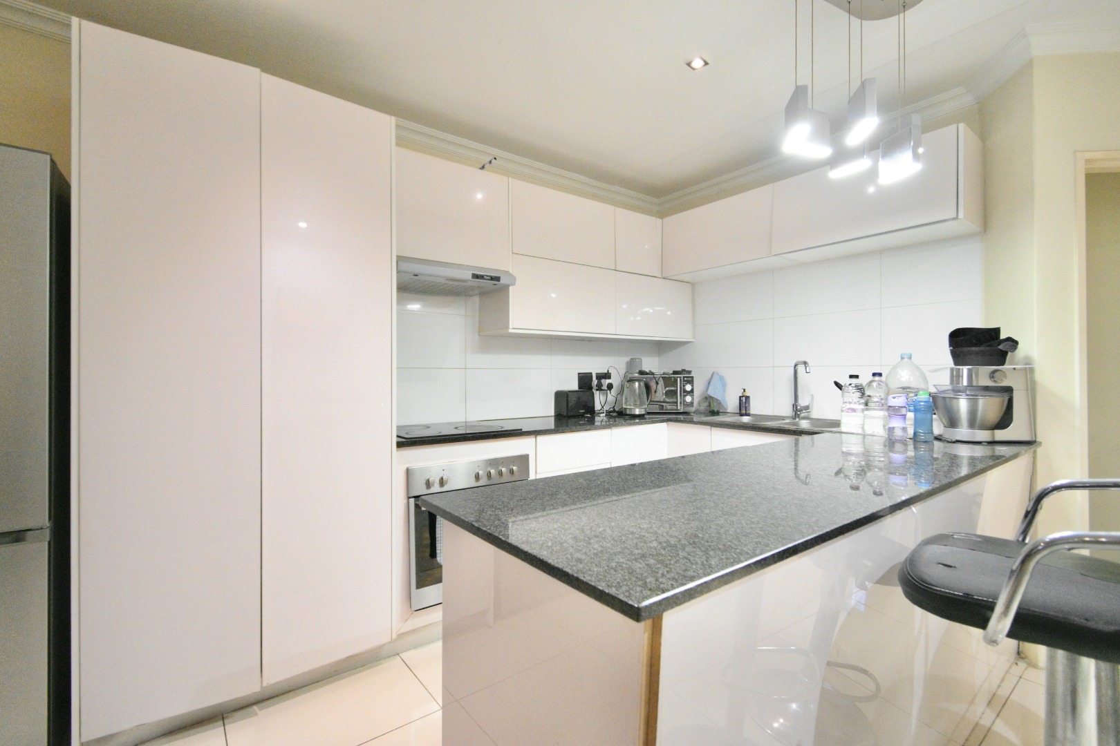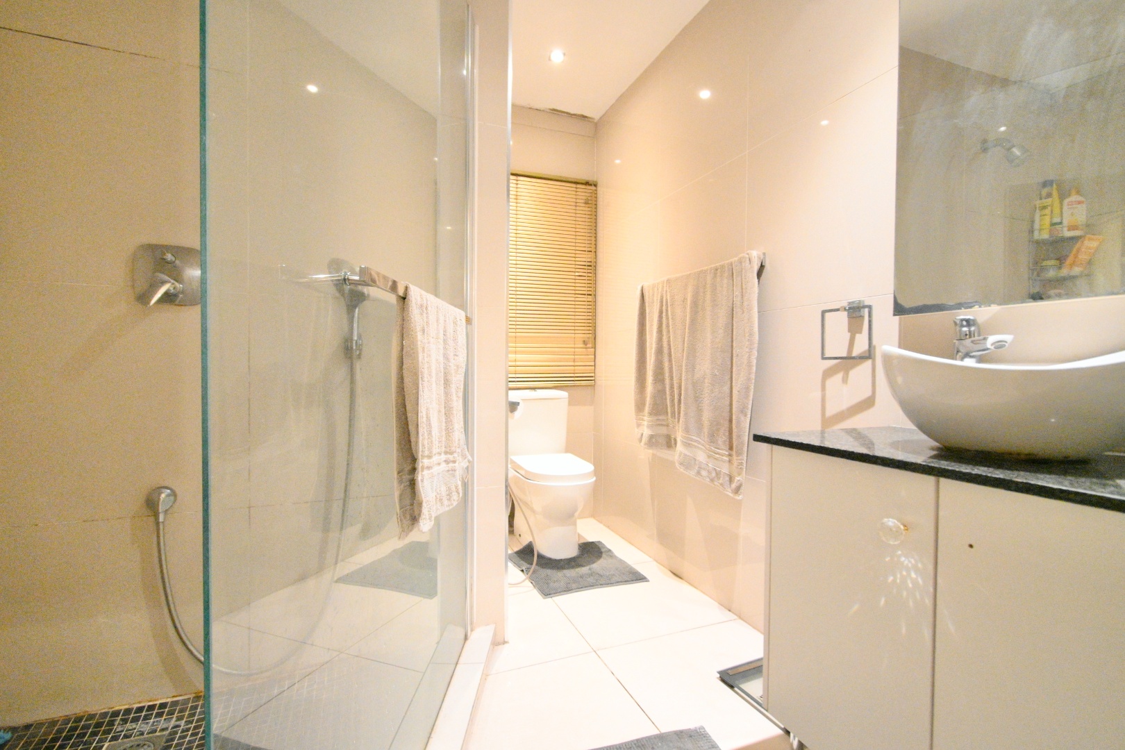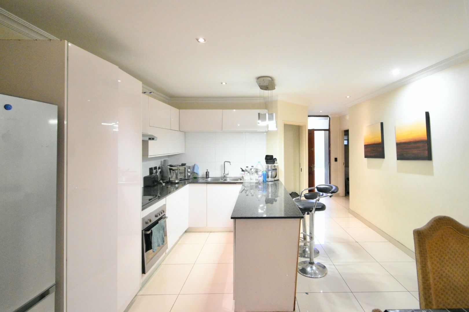 Discover modern living in this stylish, furnished ground floor apartment available for rent in the The Houghton Lofts, Johannesburg. Spanning 91 square metres, this residence offers an open-plan layout designed for comfort and convenience. The heart of the home features a sleek, modern kitchen equipped with glossy white cabinetry, dark granite countertops, and a functional island with bar seating. Integrated appliances, including a washing machine, dishwasher, and oven, ensure a seamless living experience. The space flows effortlessly into a dining area and lounge, perfect for both relaxation and entertaining.