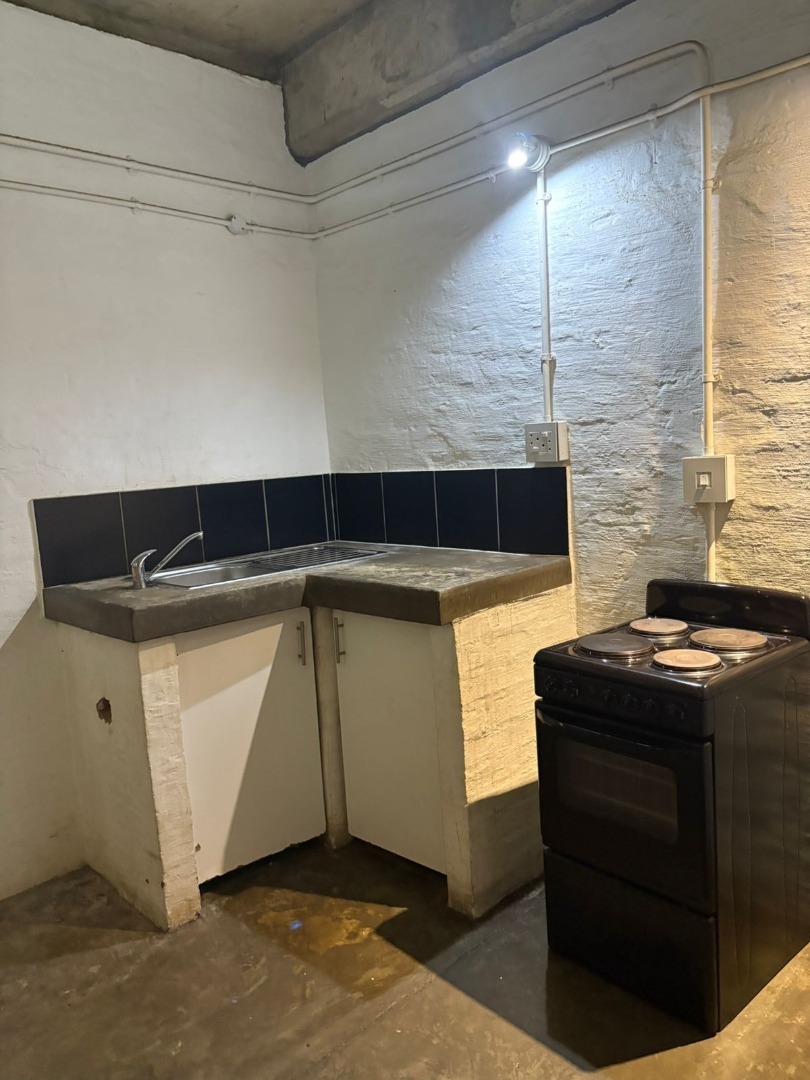 Located in the dynamic metropolitan hub of Maboneng, Johannesburg, this property offers an exciting urban lifestyle. This area is renowned for its vibrant arts scene, cultural attractions, and bustling atmosphere, making it a sought-after location for city dwellers. This unique studio apartment presents an industrial-chic aesthetic, featuring exposed brick walls, durable concrete flooring, and an unfinished concrete ceiling that adds character. The open-plan layout provides versatility, allowing residents to configure the space to their personal needs. Large glass double doors invite abundant natural light and offer direct access to an outdoor paved area, enhancing the living experience. The compact kitchen is equipped with a functional sink, an electric stove, and concrete-look countertops, providing essential amenities for daily living. A well-appointed bathroom includes a modern toilet, a square basin, and a rainfall shower, though some areas show signs of wear. Ideal for professionals or individuals seeking a dynamic urban lifestyle, this unfurnished space offers a blank canvas for personal expression. Its lock-up-and-go nature is perfect for those who appreciate convenience and connectivity within this bustling city environment. Residents benefit from enhanced security features, including 24-hour security and CCTV surveillance, ensuring peace of mind. The property also features a communal pool, providing a refreshing escape within the urban setting. Key Features: * Open-plan studio apartment * One bathroom * Equipped kitchen * Industrial-chic design * Abundant natural light * Private patio access * Communal swimming pool * 24-hour security and CCTV * Prime urban location