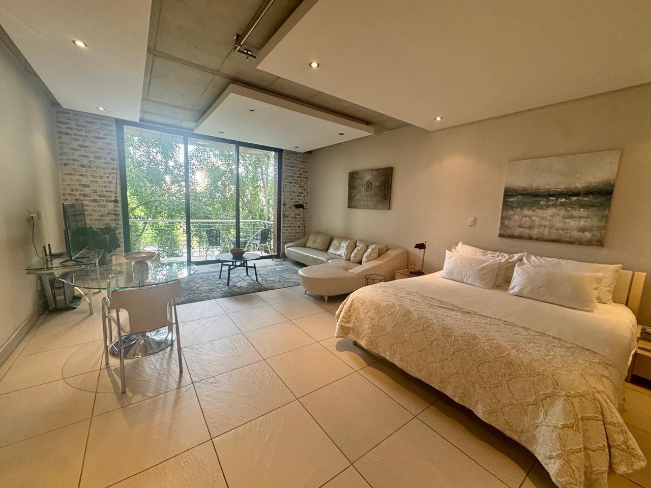 Experience contemporary urban living in this beautifully designed 1-bedroom, 1-bathroom studio apartment, perfectly positioned in the sought-after Melrose Arch precinct of Johannesburg. Ideal for professionals, this chic lock-up-and-go residence offers seamless open-plan living, combining the living, dining, and sleeping spaces into a cohesive and stylish interior.