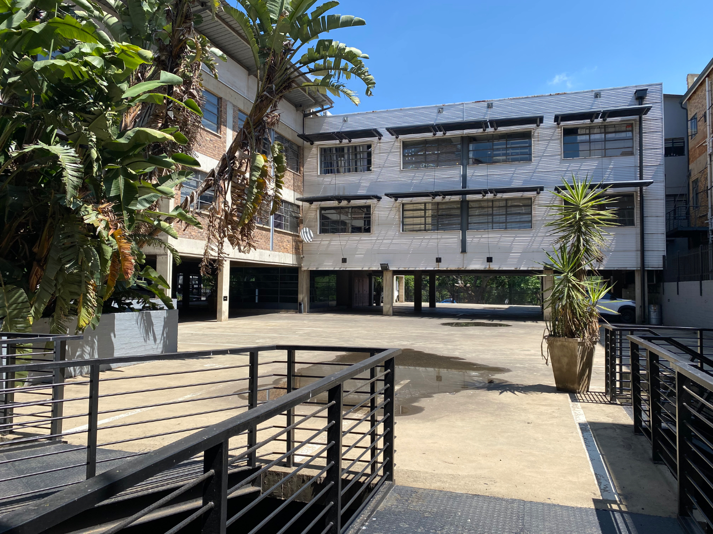 This versatile 80sqm commercial rental unit in Milpark, offers an ideal setting for various business operations. The space boasts a distinctive industrial aesthetic, featuring impressive high ceilings with exposed beams and a wooden roof deck, creating a unique and inspiring environment. Abundant natural light streams through large windows and a glass-paneled entrance, enhancing productivity. The open-plan ground floor provides exceptional flexibility, complemented by a functional mezzanine level perfect for an office, studio, or additional workspace. Air conditioning ensures a comfortable working environment year-round.