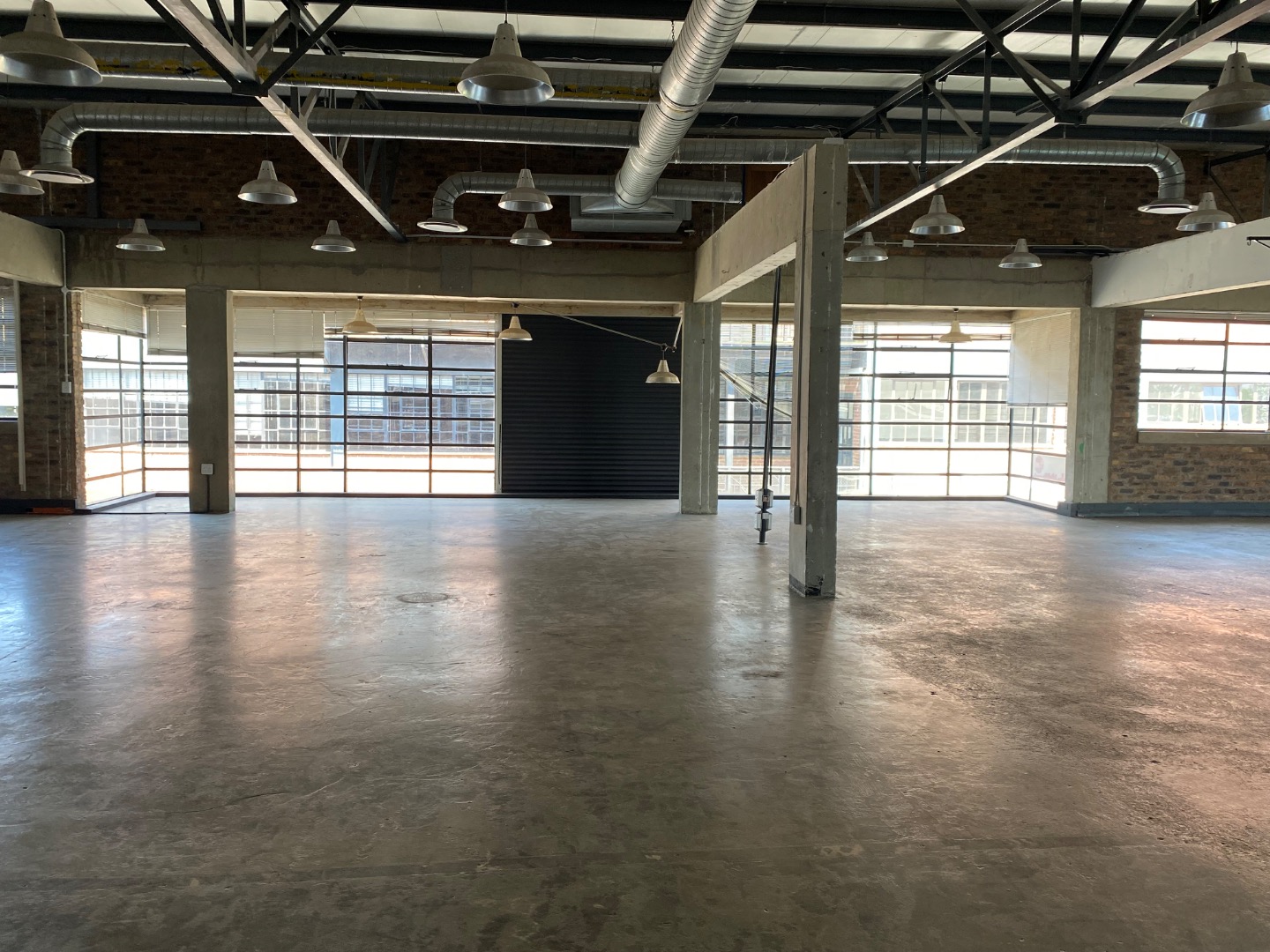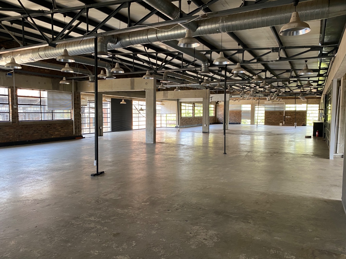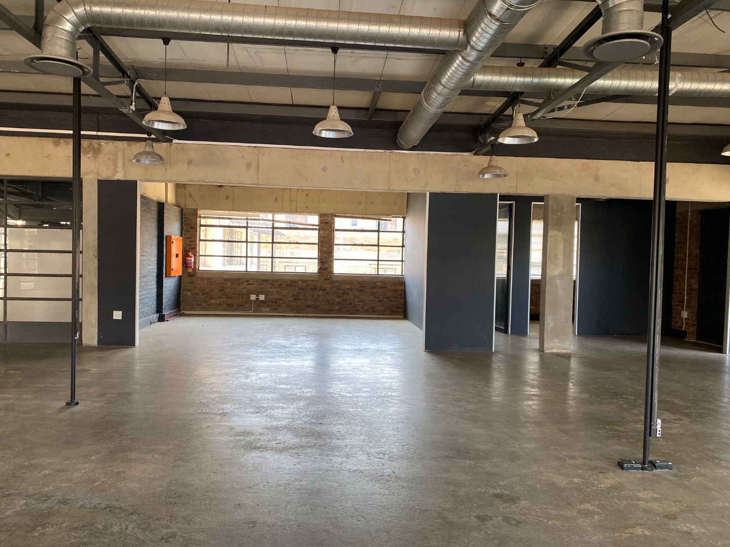 This expansive 245 sqm commercial rental space in Milpark, Johannesburg, offers a versatile open-plan layout ideal for various business operations. Featuring a modern industrial aesthetic, the unit boasts high ceilings, exposed ductwork, and durable concrete flooring. Abundant natural light streams through large windows, creating a bright and inviting environment.