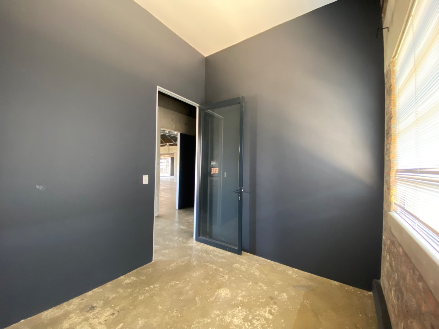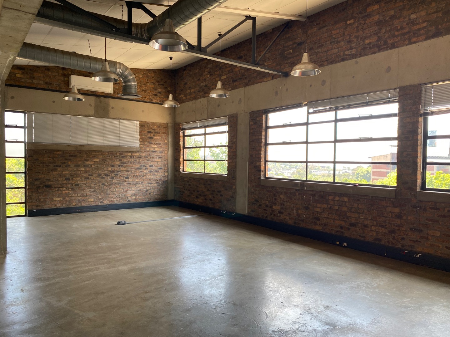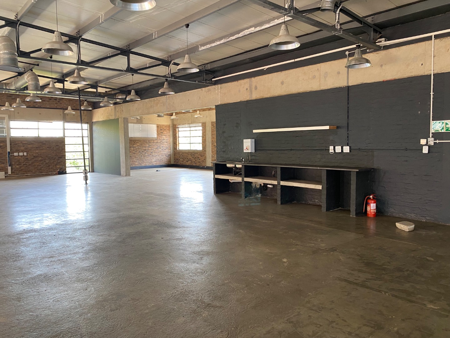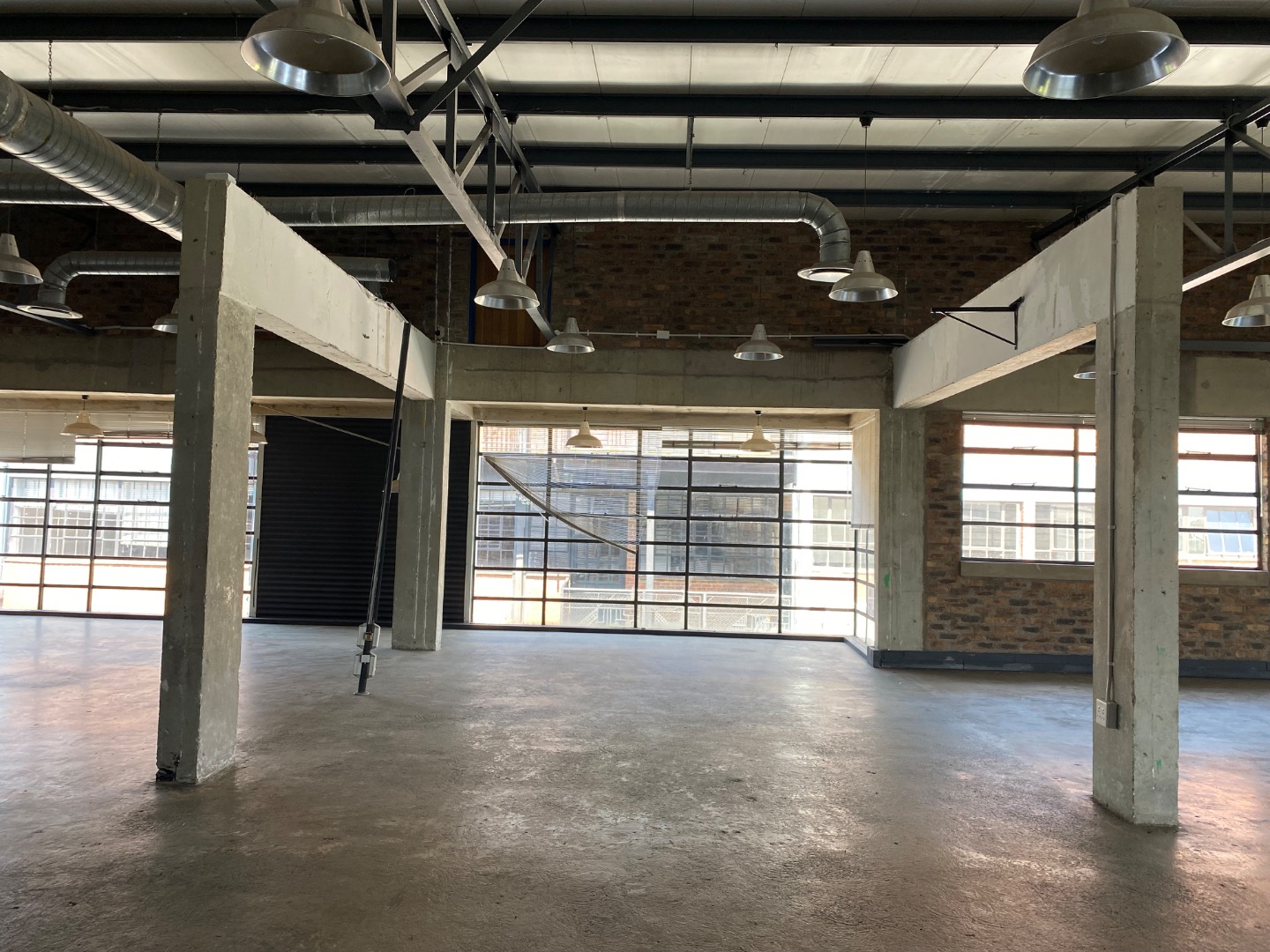 This expansive 245 sqm commercial rental space in Milpark, Johannesburg, offers a versatile open-plan layout ideal for various business operations. Featuring a modern industrial aesthetic, the unit boasts high ceilings, exposed ductwork, and durable concrete flooring. Abundant natural light streams through large windows, creating a bright and inviting environment.