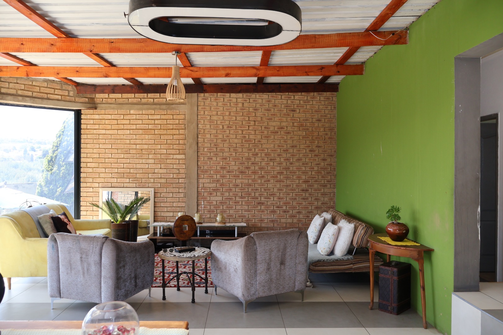 Spacious living room and entrance with wall-to-wall aluminium glass doors, welcoming natural light and offering seamless flow to the outdoors