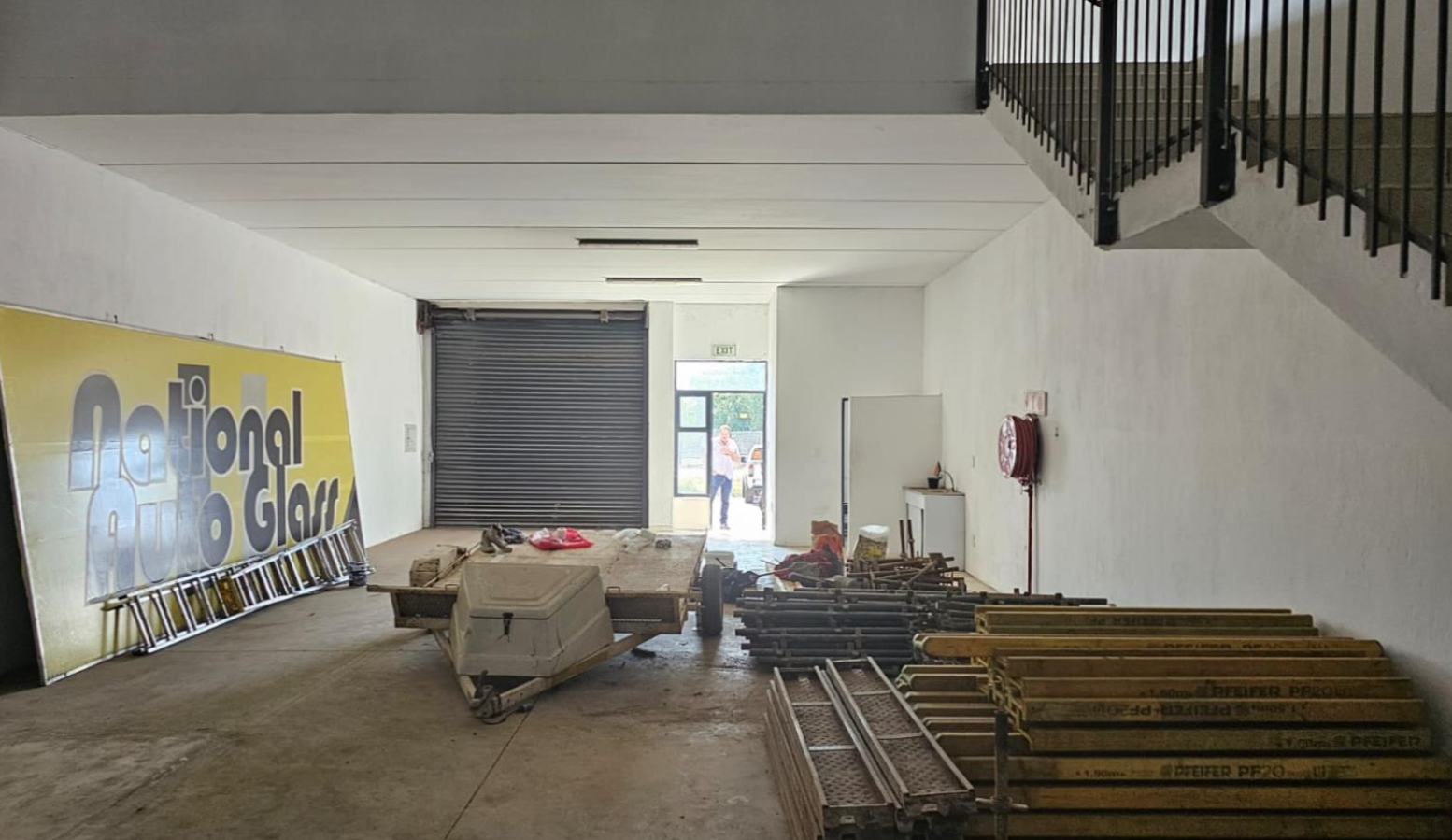 Warehouse & Office Setup: A spacious warehouse with 3-phase power, ample natural light, and a 1st-floor open-plan office area suitable for multiple workstations or a hot desk setup.