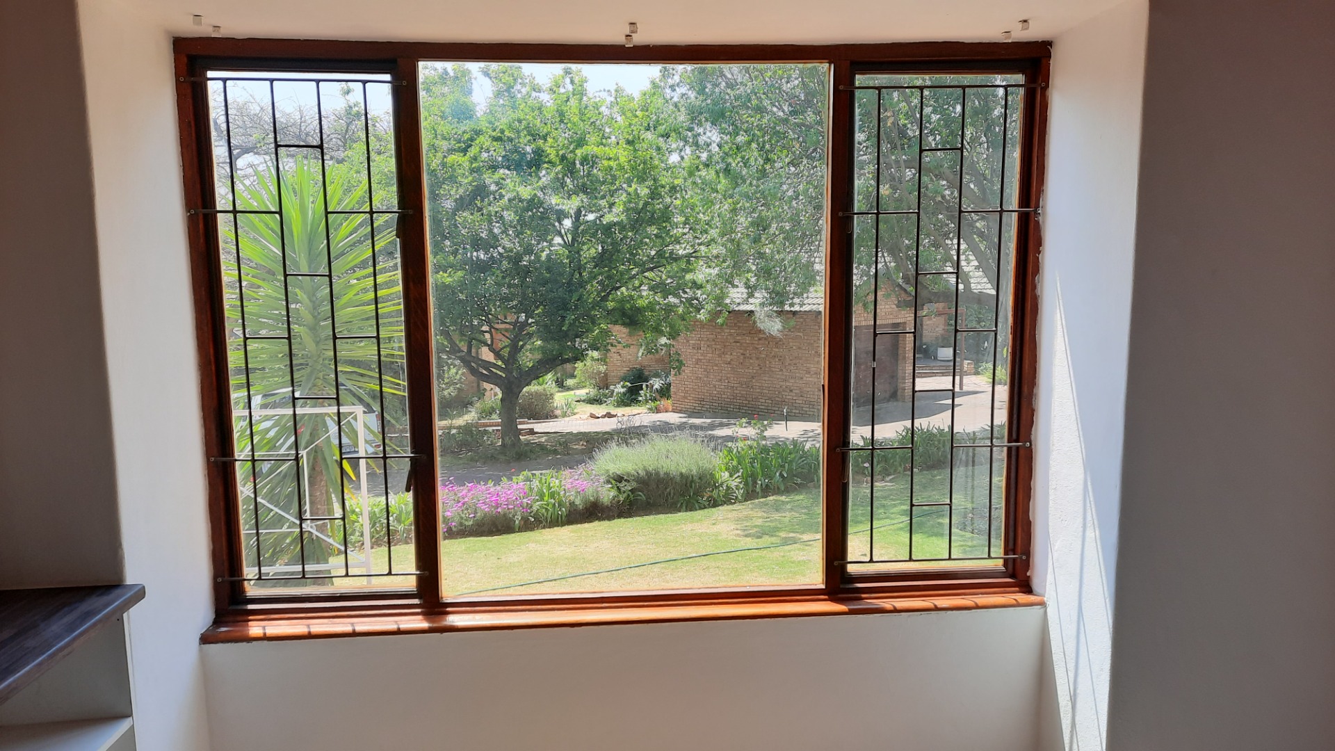 The patio has a build-in braai and overlooks the garden