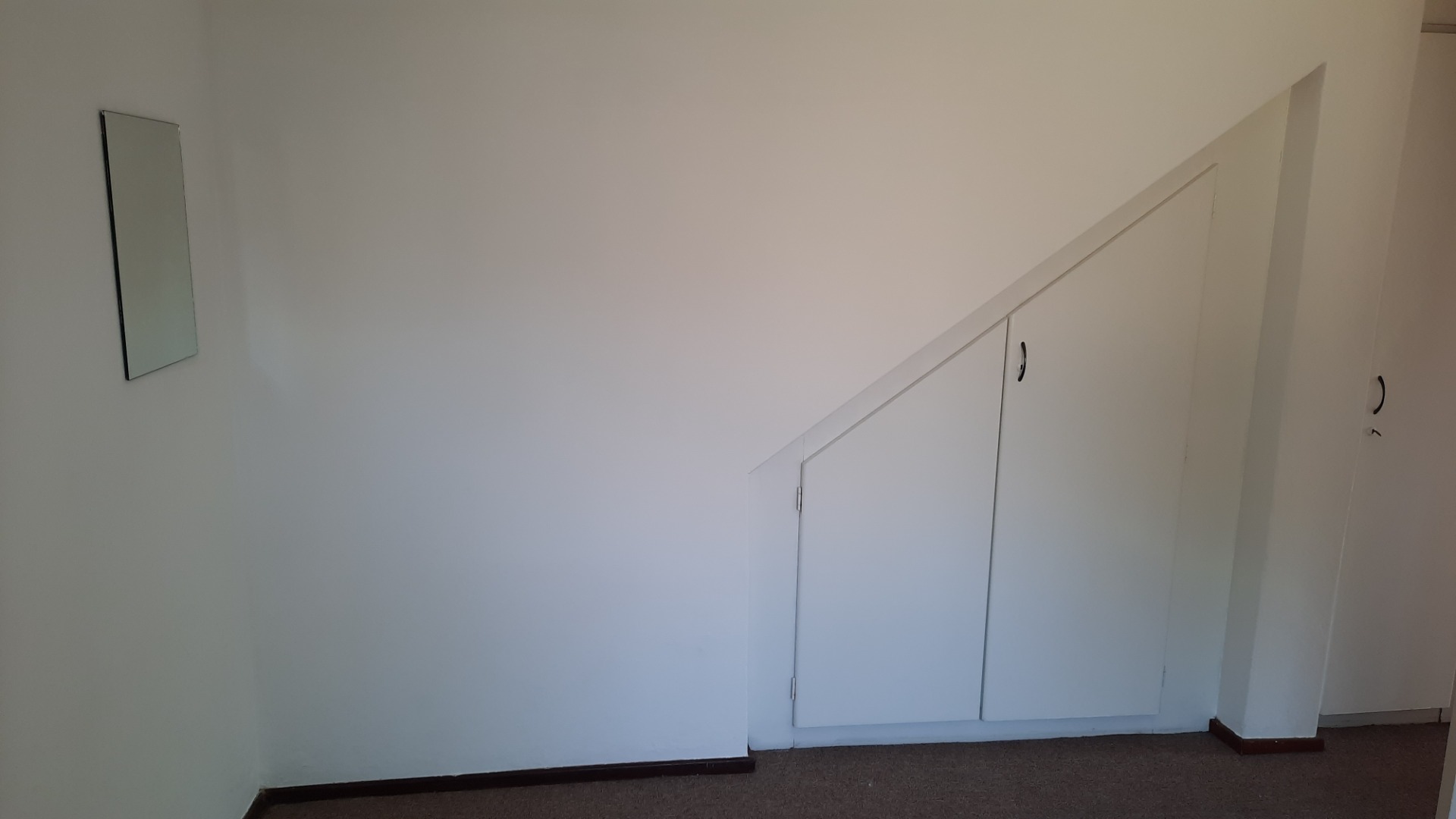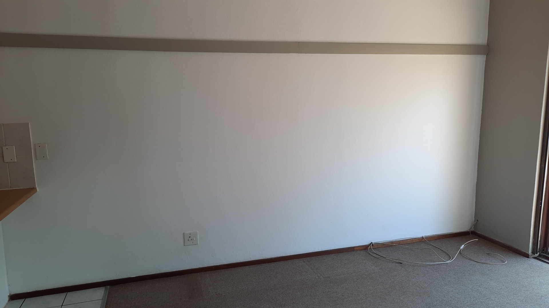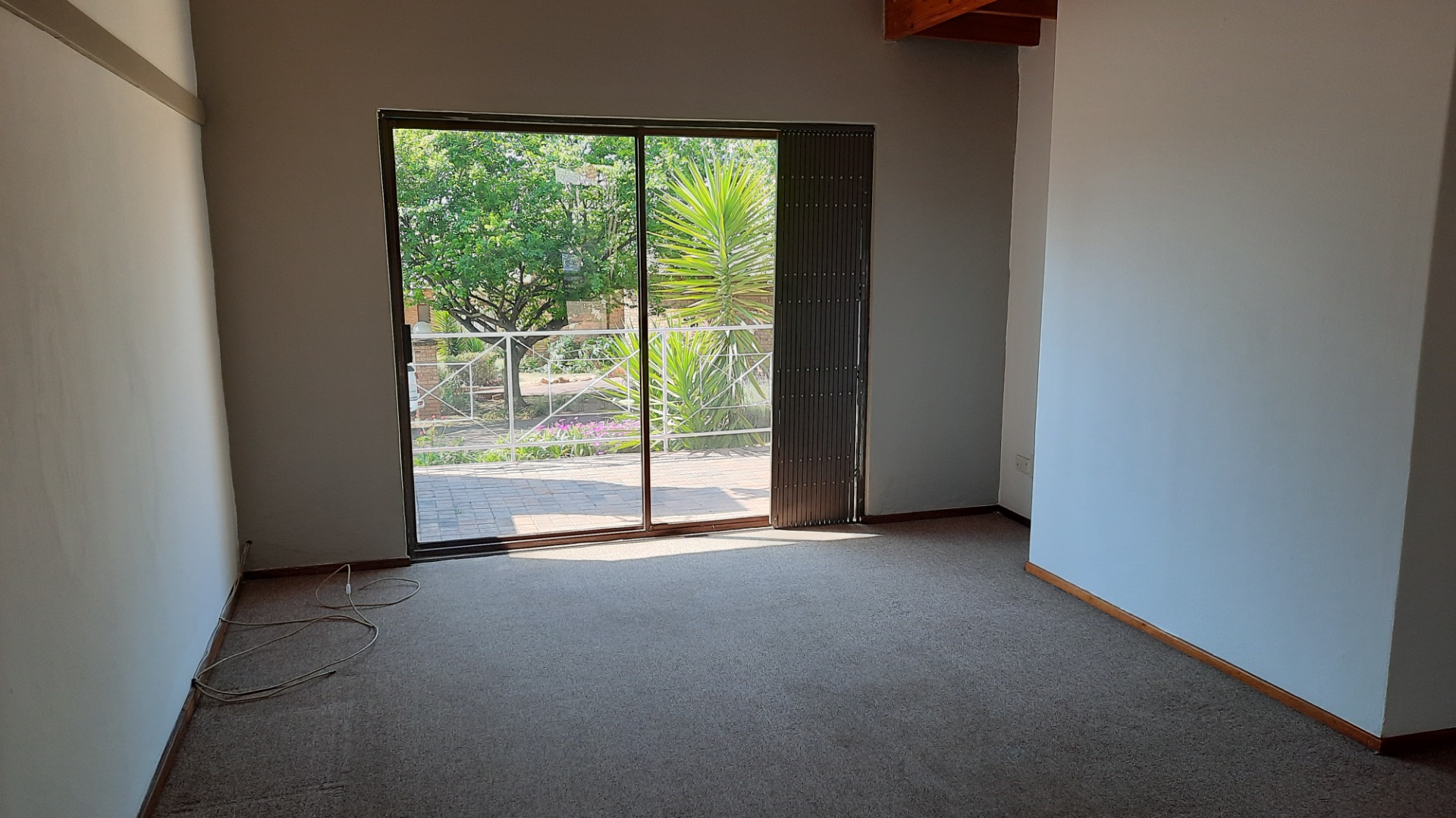 Downstairs adjacent to the kitchen is a carpeted lounge or dining room with a big sliding door that lead to the patio.