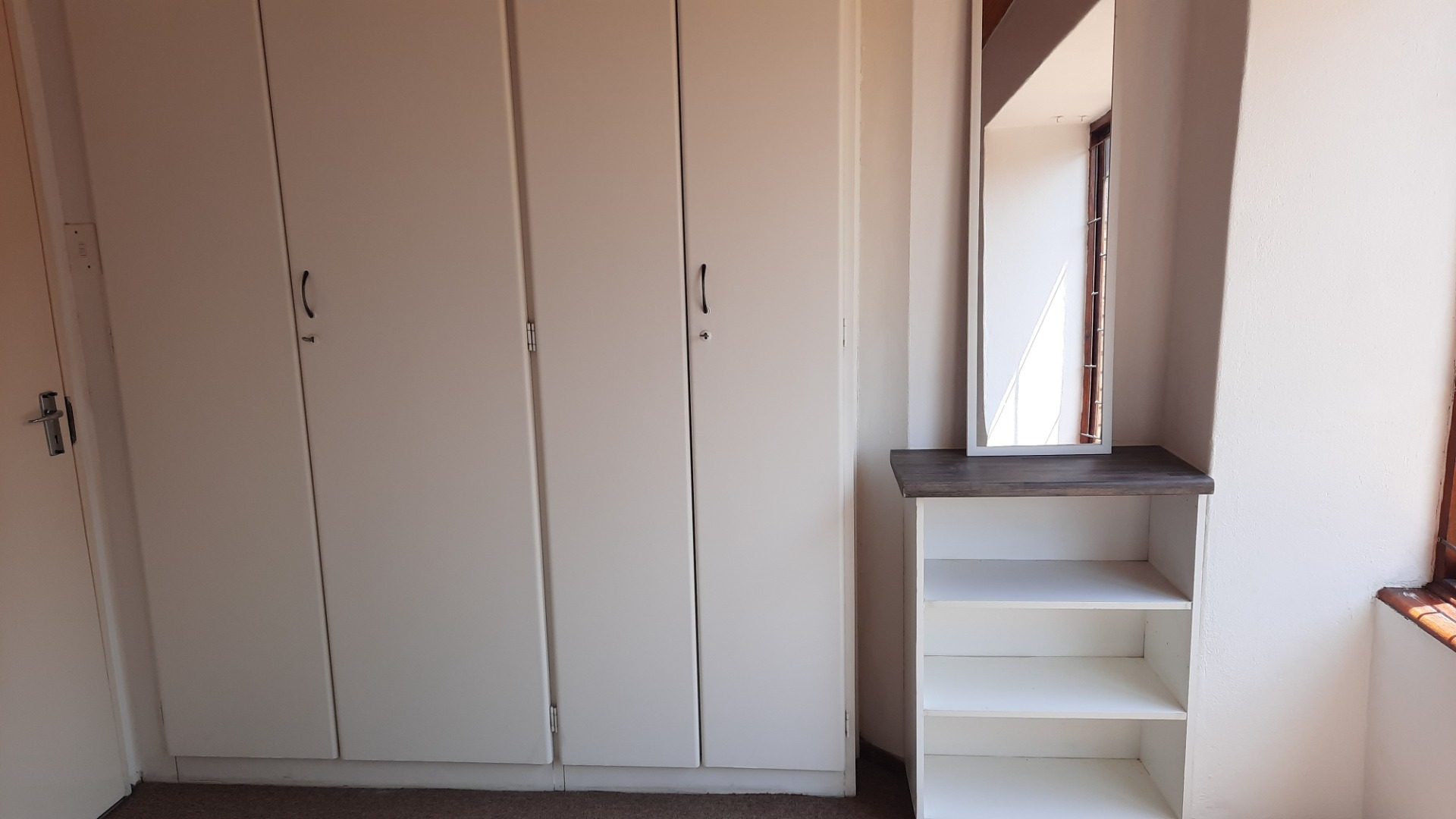 Two carpeted bedrooms has each a built-in wardrobe. Main bedroom has a built-in vanity.