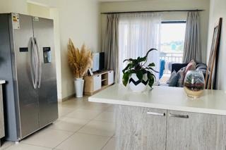 The apartment features a stylish open-plan kitchen with ample cupboard space and modern finishes, flowing into a bright lounge area. The living space opens onto a private balcony, ideal for relaxing or enjoying some fresh air.