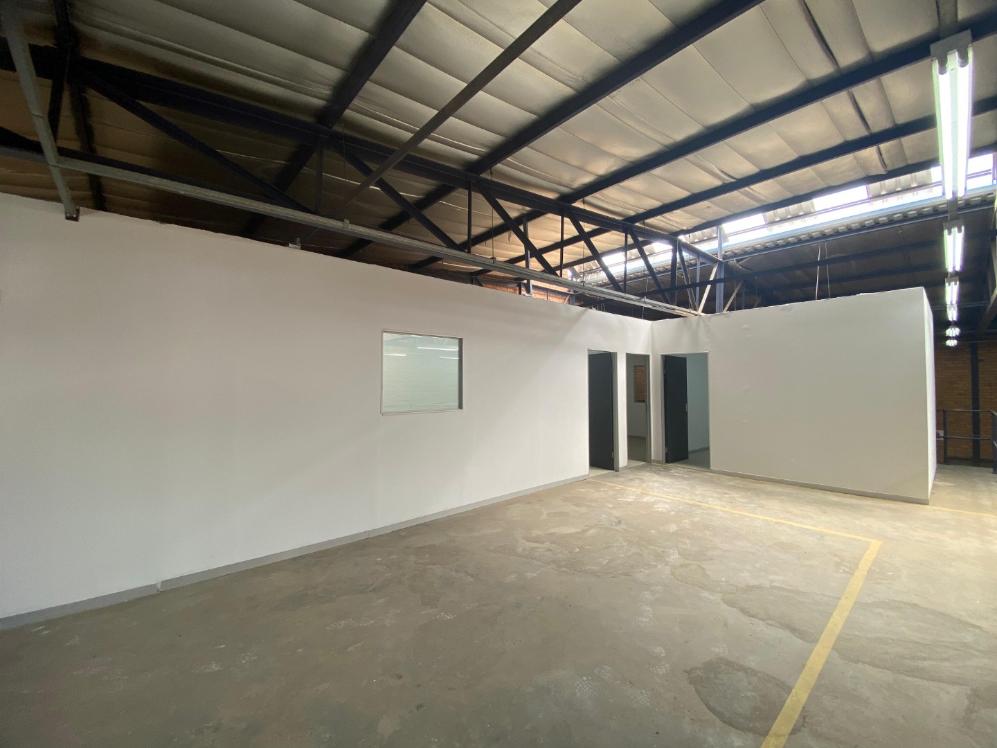 Discover this versatile 410sqm industrial unit available for rent in the bustling commercial node of Halfway House, Midrand. The expansive open-plan layout features impressive high ceilings with exposed metal trusses, providing ample vertical space for various operations. Natural light floods the interior through skylights, complemented by efficient fluorescent lighting, ensuring a bright and productive work environment. An integrated mezzanine level offers additional functional space, ideal for dedicated offices, administrative areas, or supplementary storage, enhancing the unit's adaptability. Access is streamlined via a large roller shutter door, facilitating easy loading and unloading of goods. The durable concrete flooring and robust exposed brick walls contribute to a practical and resilient workspace, complete with two bathrooms for convenience. This property is perfectly suited for businesses requiring a flexible space for warehousing, light manufacturing, or distribution. Located in the thriving commercial hub of Halfway House, Midrand, this property offers excellent connectivity and accessibility within South Africa's economic heartland. Key Features: * 410sqm industrial space * High ceilings with exposed trusses * Integrated mezzanine level * Large roller shutter door * Abundant natural and artificial light * Two bathrooms * Durable concrete flooring * Versatile open-plan layout