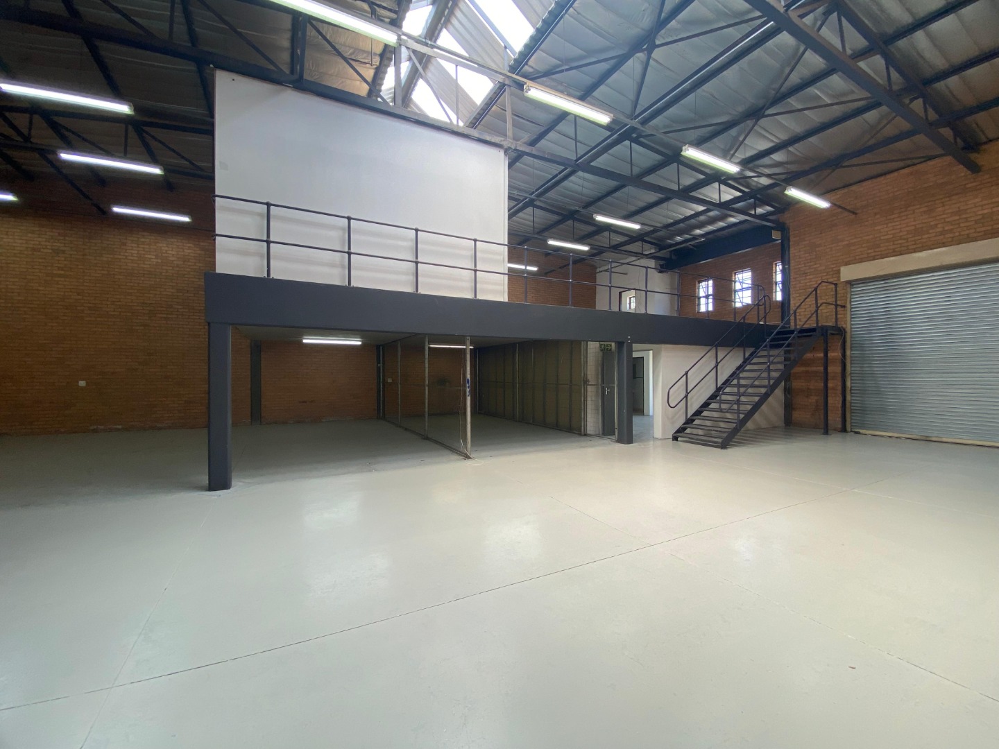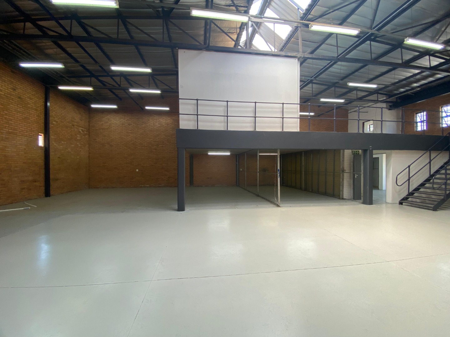 Discover a highly adaptable commercial rental opportunity in the thriving business hub of Halfway House, Midrand. This spacious 386.00 sqm industrial unit is designed for versatility, featuring a large open-plan ground floor complemented by impressive high ceilings and exposed industrial trusses, creating an expansive and functional workspace. The property boasts a substantial mezzanine level, offering valuable additional space that can be configured for office use, further storage, or light manufacturing, enhancing operational efficiency. Equipped with a large roller shutter door, the unit ensures convenient access for deliveries and logistics. The interior benefits from a clean, well-maintained concrete floor and a robust industrial aesthetic, characterized by exposed brick walls and ample natural light from windows and skylights, supplemented by efficient fluorescent lighting throughout. A dedicated kitchen facility adds to the convenience for staff. This unit is ideally suited for a range of commercial operations, from warehousing and distribution to light industrial activities or creative workshops. The integrated mezzanine includes an enclosed office space, providing a private area for administration or management, while a secure caged area and a dedicated 'STORAGE' room offer practical solutions for inventory or equipment. With 2 dedicated parking bays, accessibility for staff and clients is well catered for. Midrand is a strategically located area in South Africa, known for its excellent connectivity and growing commercial infrastructure, making it a prime location for businesses seeking accessibility and growth potential. Key Features: * 386.00 sqm versatile industrial space * Expansive open-plan ground floor * Substantial mezzanine level with enclosed office * High ceilings with exposed trusses * Large roller shutter door access * Dedicated kitchen facility * 2 parking bays * Ample natural and artificial lighting * Secure caged storage area