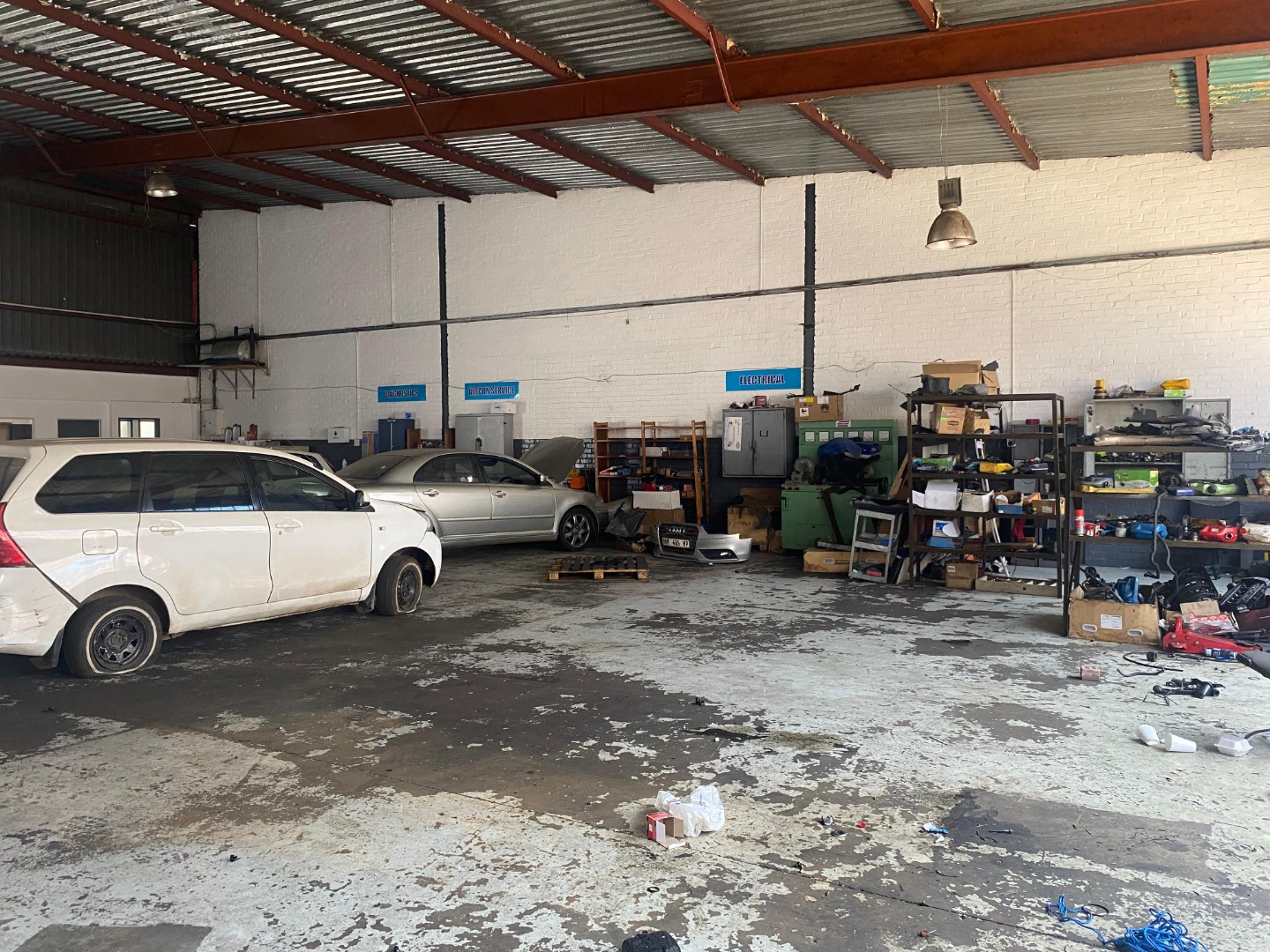 Secure this versatile 360 sqm industrial unit for rent in Halfway House, Midrand. This spacious property boasts an open-plan layout with high ceilings and robust brick walls, ideal for diverse commercial operations. A large roller shutter door provides convenient vehicle access, while extensive windows ensure ample natural light throughout the workspace. The unit includes an attached office or reception area, featuring a modern window and a security gate. Currently an active auto repair workshop, its adaptability suits businesses needing a functional workshop, light manufacturing, storage, or distribution facility. Durable concrete flooring and industrial construction are designed for demanding use. With 6 dedicated parking bays, this commercial rental property offers convenience for staff and clients. Its strategic position within this thriving commercial hub provides excellent connectivity for businesses in South Africa. Key Features: * 360 sqm industrial unit * High ceilings * Large roller shutter door * Attached office/reception area * Abundant natural light * 6 dedicated parking bays * Durable concrete floors * Strategic Midrand location