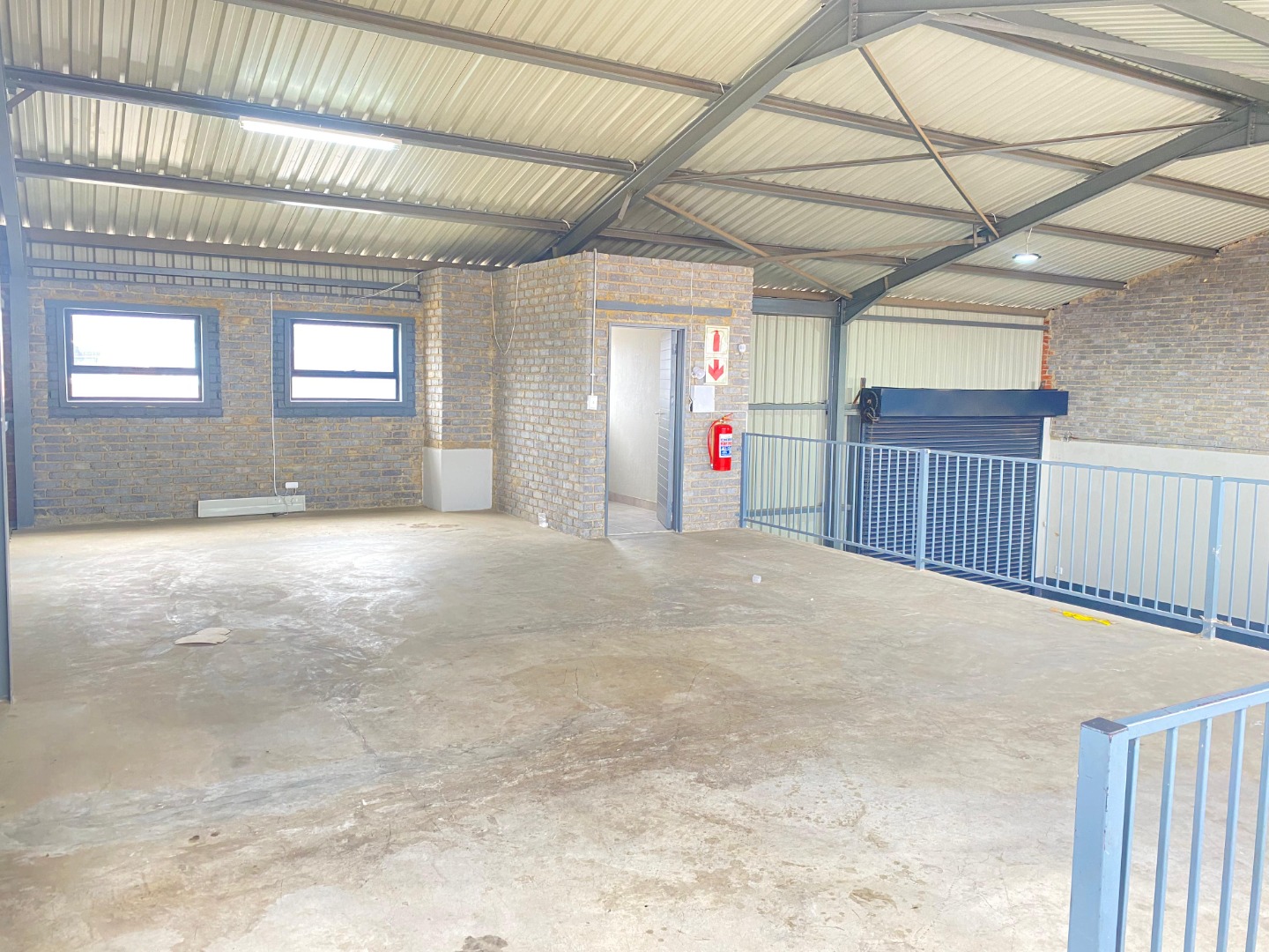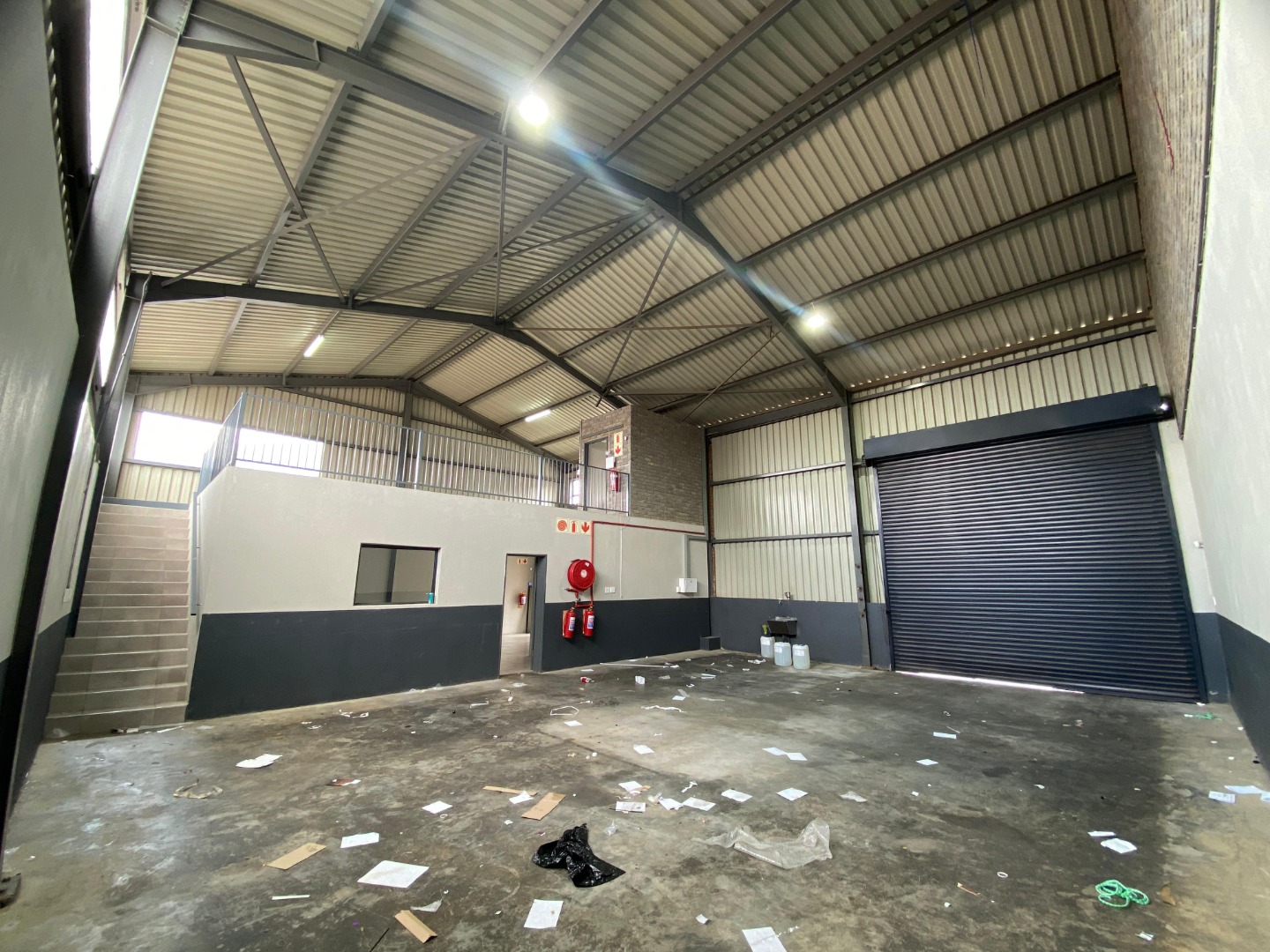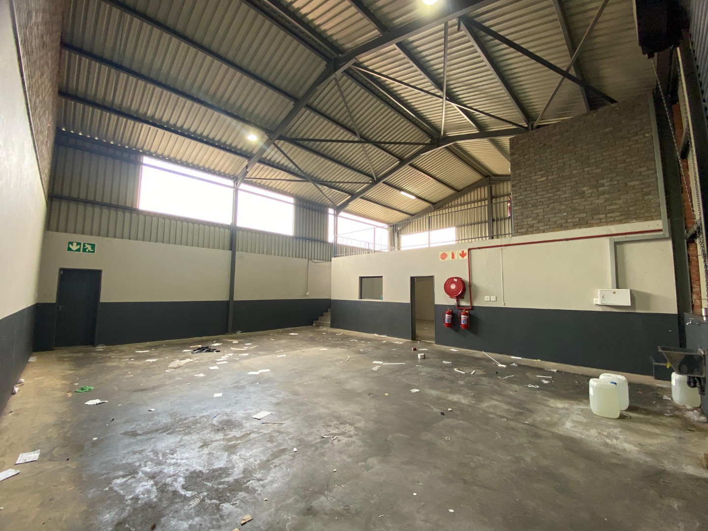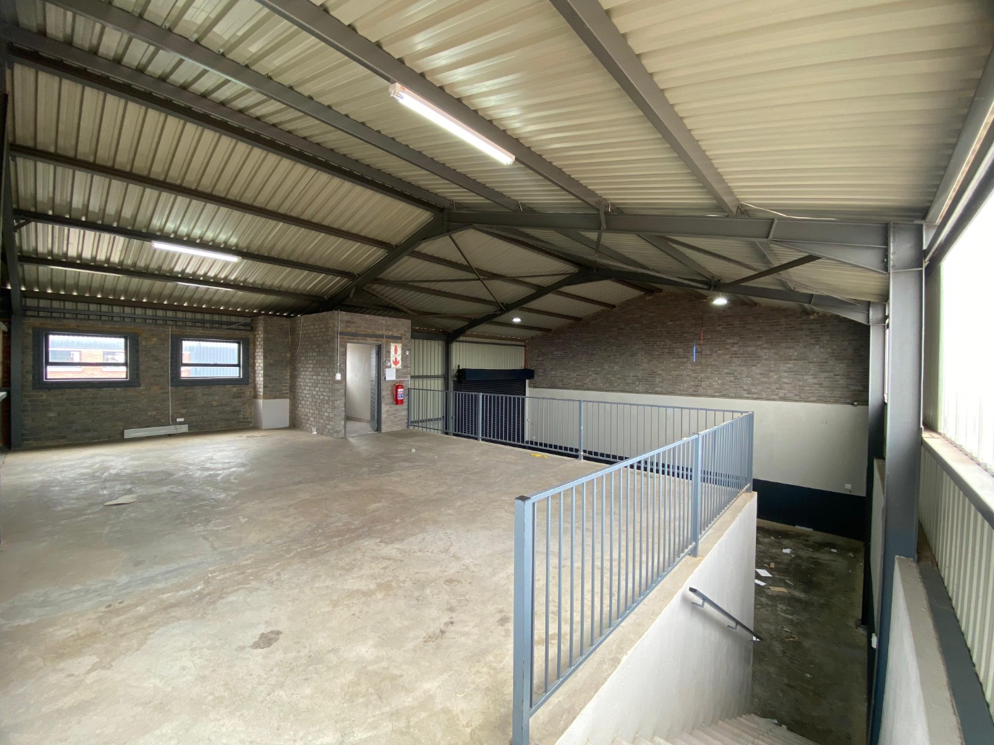 Inside, the spacious layout boasts high ceilings and an open-plan design, providing exceptional flexibility for various business operations, from office space to light industrial or storage. The interior is characterized by durable tiled flooring, neutral walls, and ample fluorescent lighting, complemented by natural light from multiple windows. An integrated kitchenette and two bathrooms enhance functionality.
