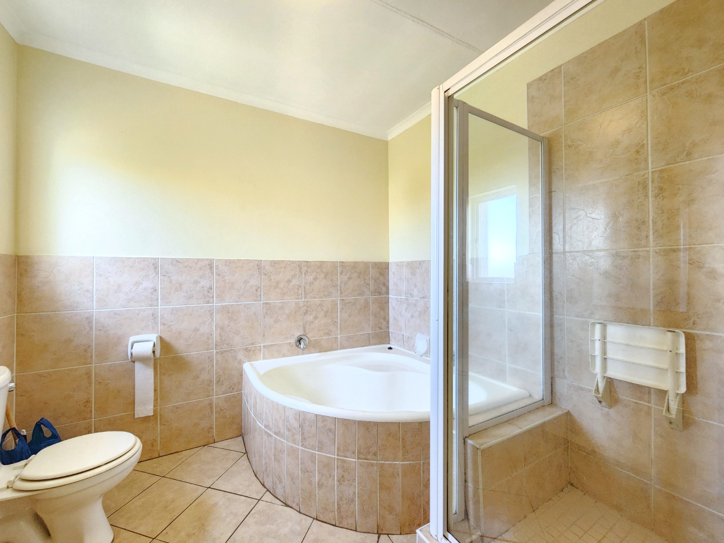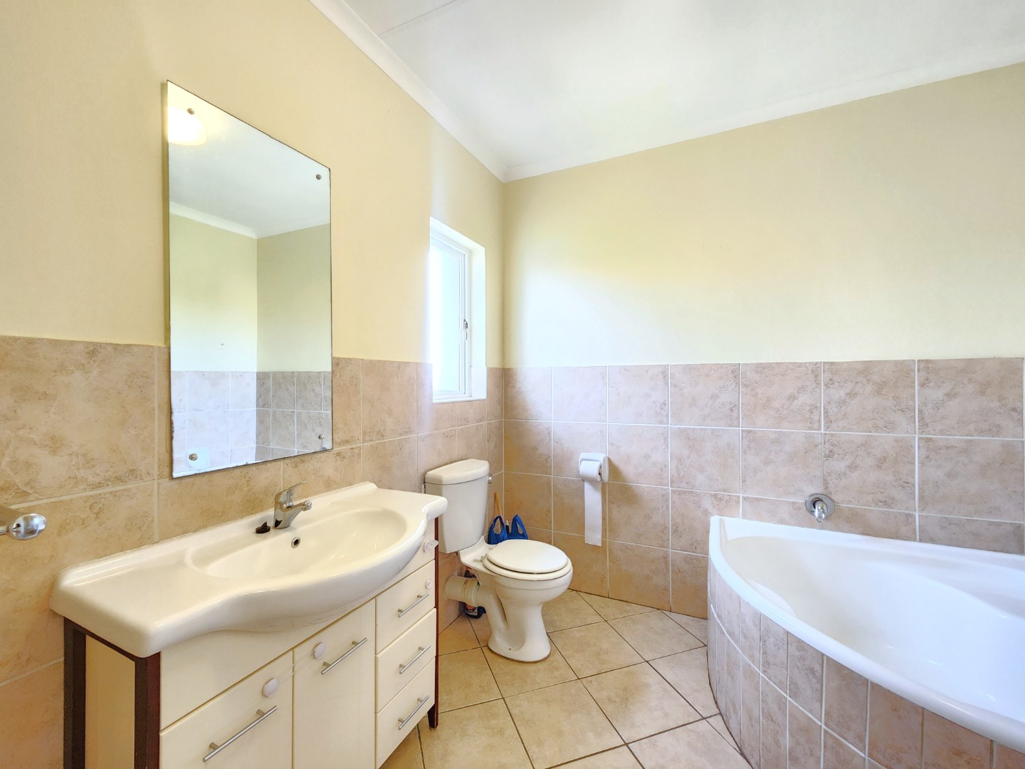 Upstairs, you’ll find three well-sized bedrooms, all equipped with built-in cupboards. The main bedroom boasts a full en-suite bathroom, while the remaining two bedrooms are serviced by a second bathroom, ensuring comfortable living for the whole family.