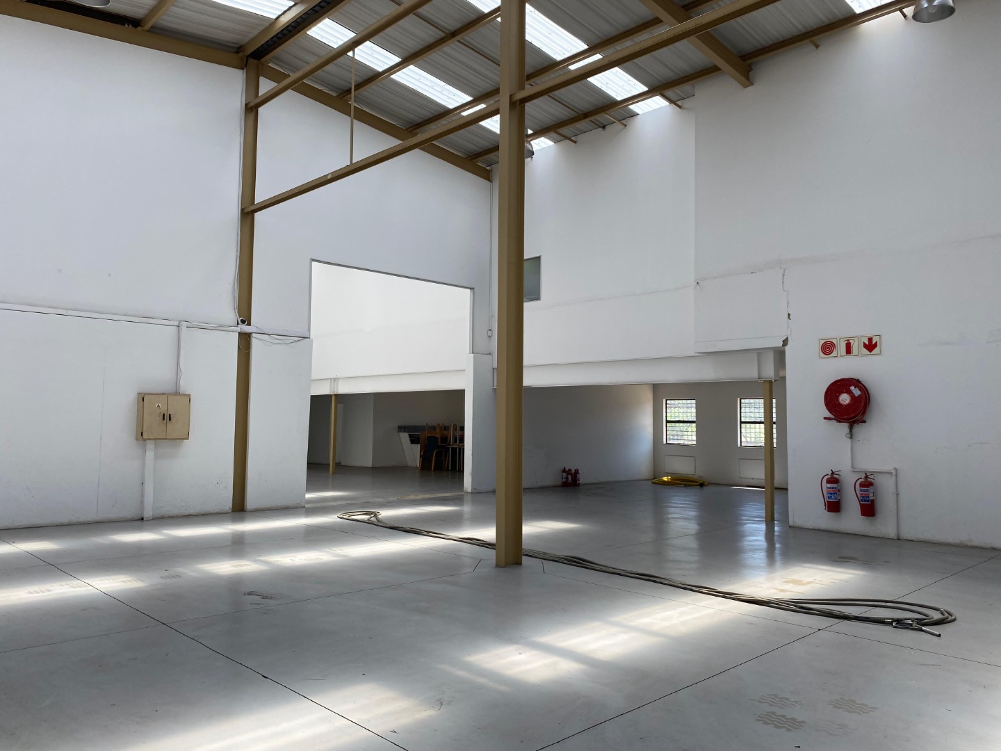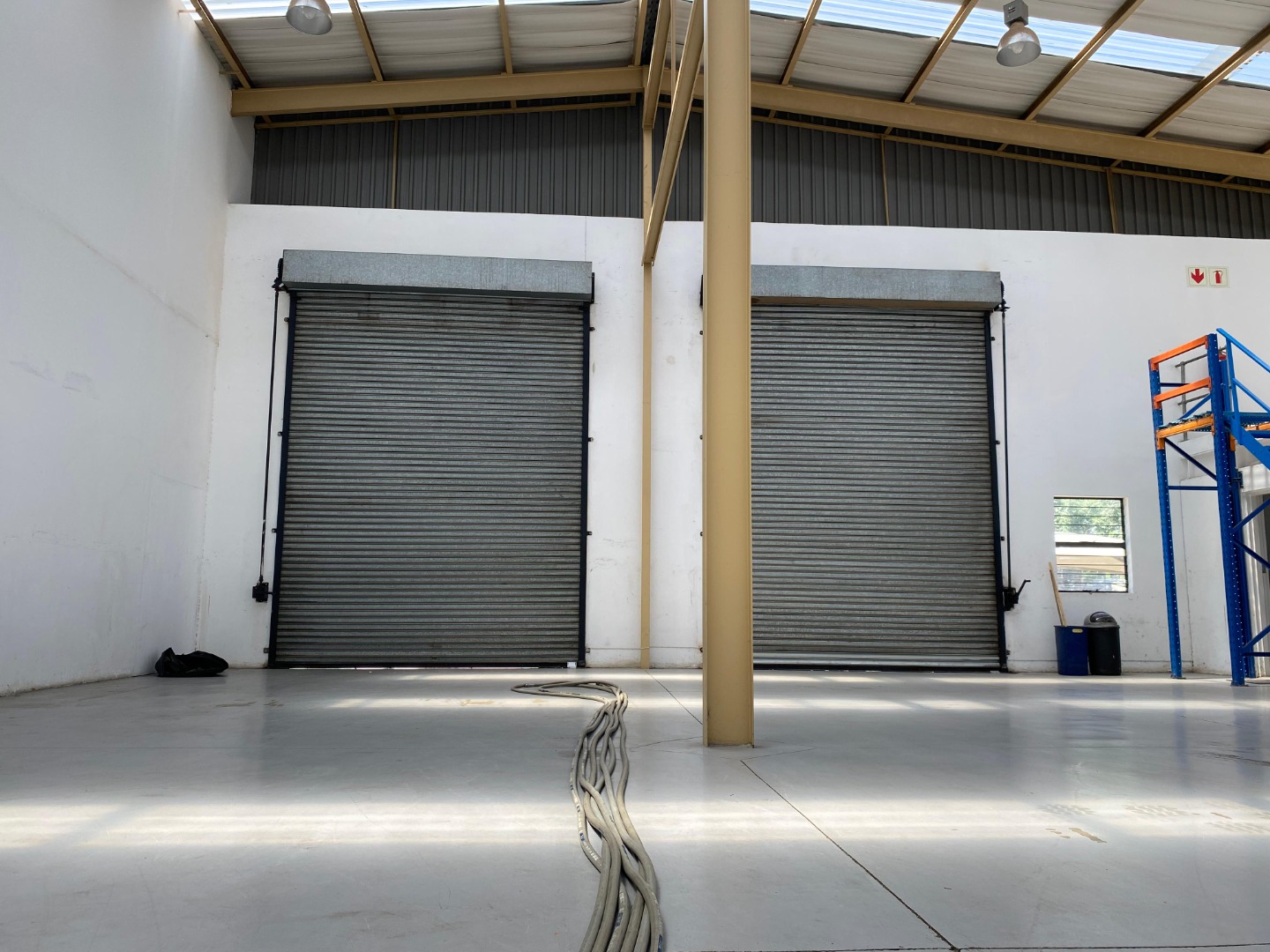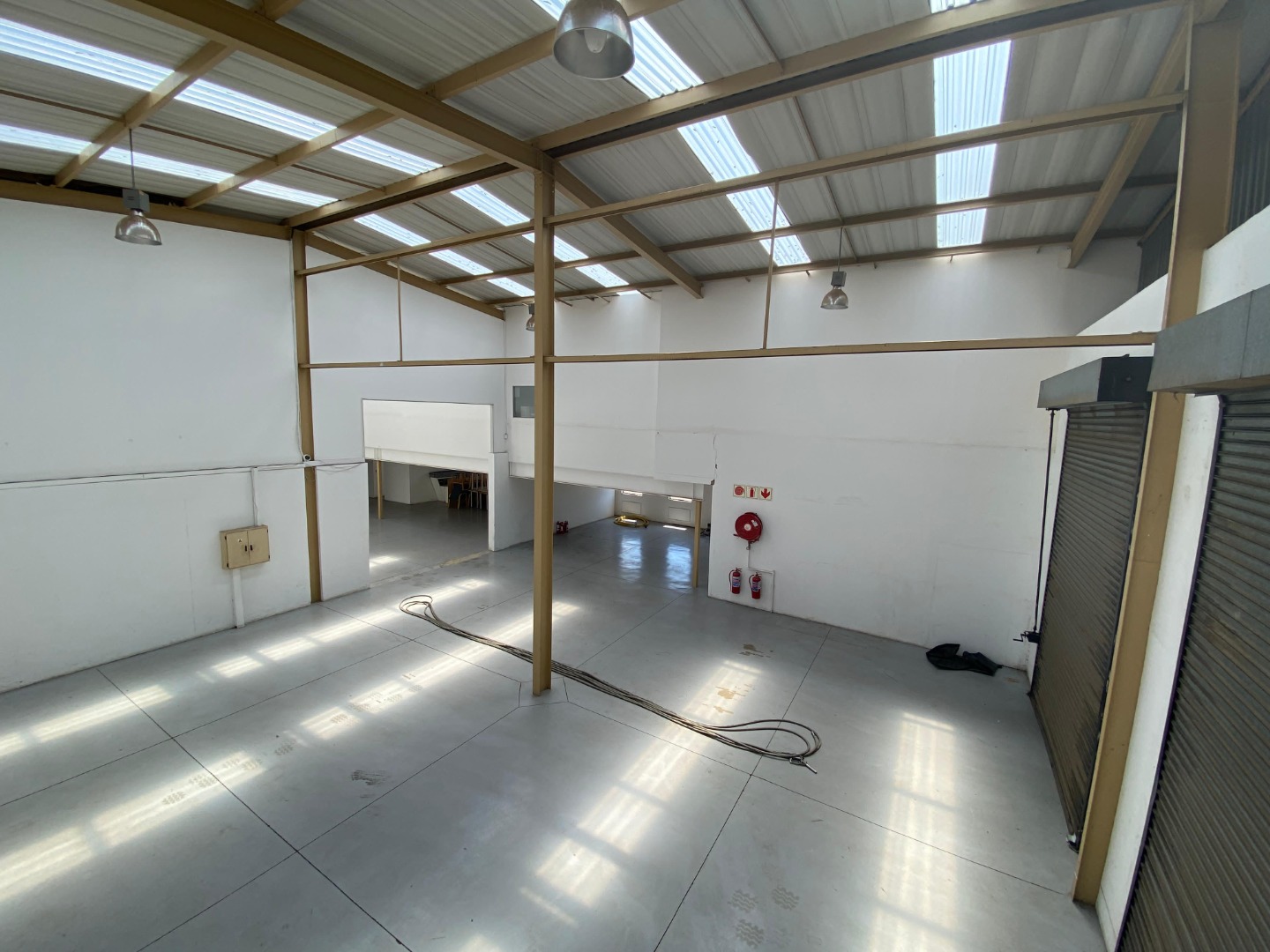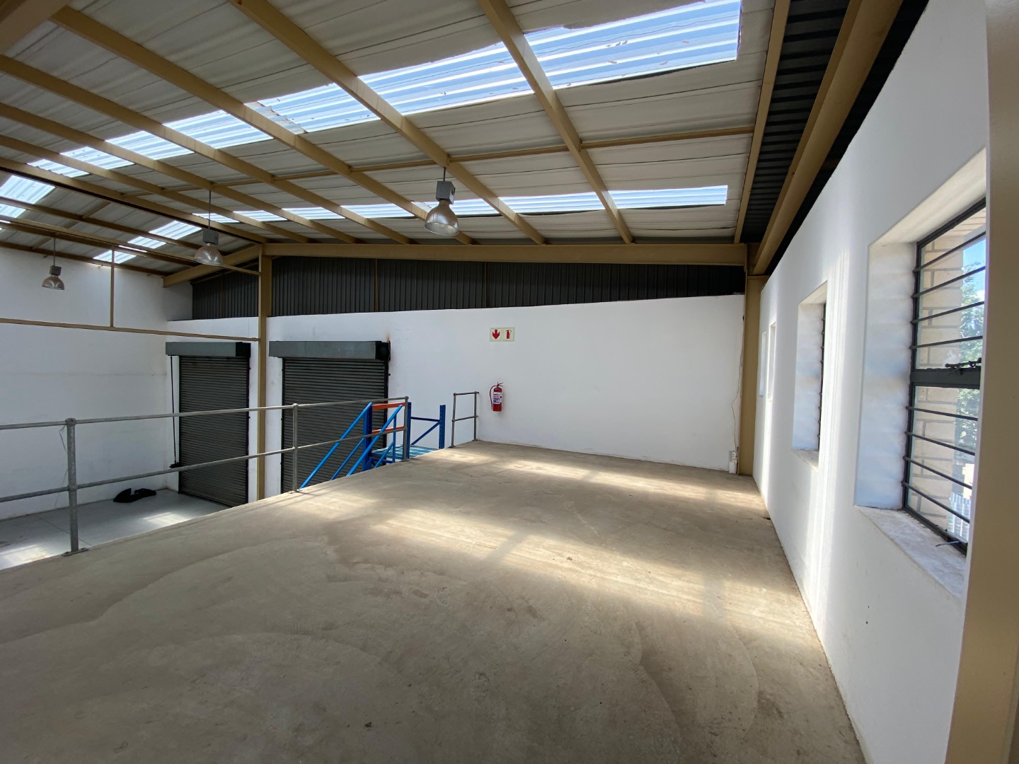 This 452sqm industrial unit in Randjespark, Midrand, offers a versatile, open-plan layout with high ceilings and durable concrete flooring, ideal for various operations. Natural light floods the space through numerous skylights and windows, enhancing the working environment. A dedicated mezzanine level provides additional office or storage space. Its adaptable design, featuring multiple large roller shutter doors, makes it suitable for warehousing, light manufacturing, or distribution businesses seeking efficient logistics. The property includes five dedicated parking bays and a large paved yard for easy access and manoeuvring. Security fencing ensures a secure operational environment. Located in Randjespark, Midrand, this prime commercial space benefits from excellent connectivity within a thriving business hub in South Africa. Key Features: • 452sqm industrial unit • Open-plan layout • High ceilings & natural light • Multiple roller doors • Mezzanine/office area • 5 parking bays • Paved yard • Security fencing