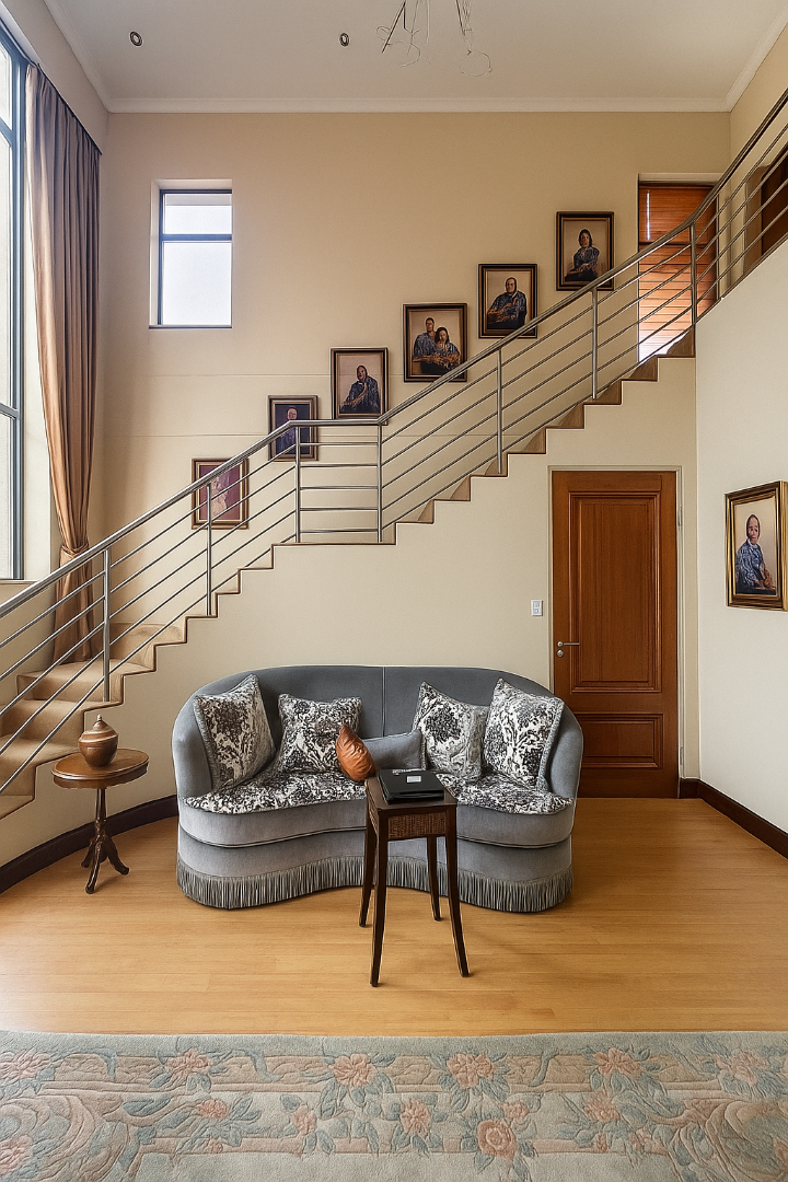 The ground floor also features a large guest bedroom with a full en-suite bathroom, ideal for visiting family or colleagues, along with a guest powder room for added convenience. A dedicated study or home office ensures a quiet, productive workspace.