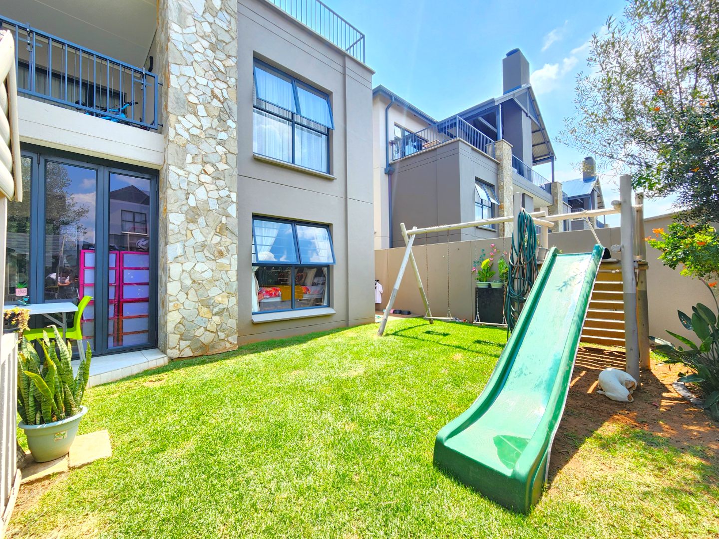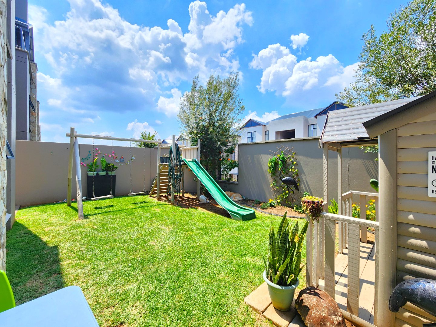 One of the standout features of this apartment is the covered patio, which extends your living space outdoors. From here, you step into a spacious green garden area with a playground — the perfect setting for children to play, relaxing afternoons, or weekend gatherings.