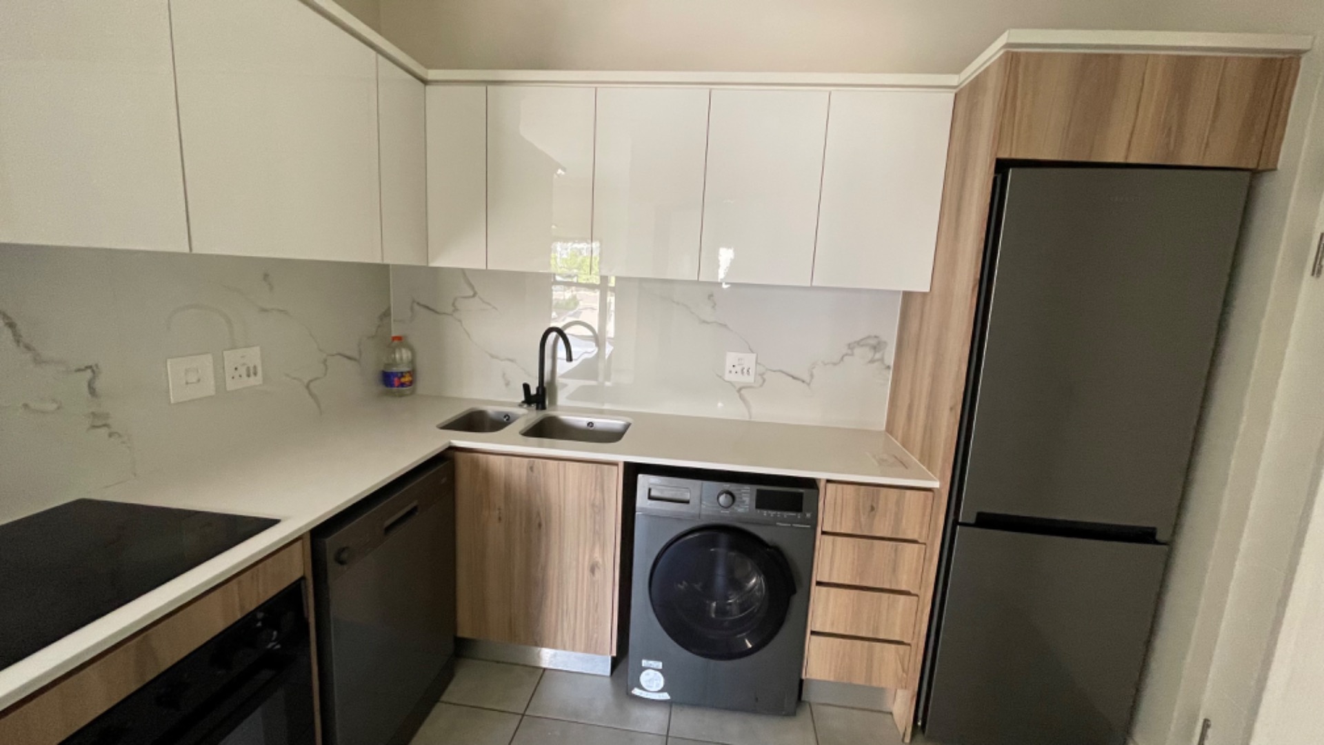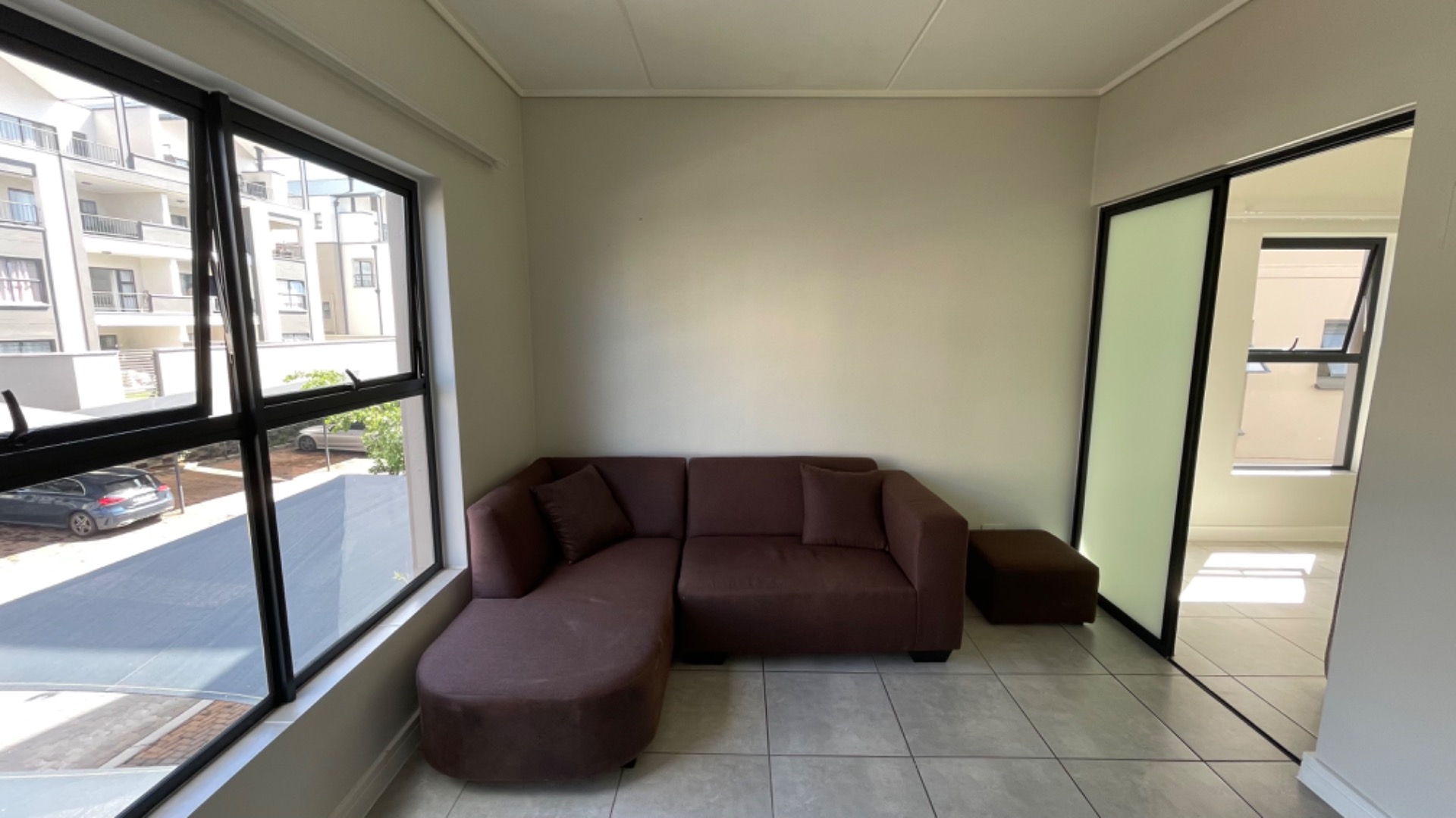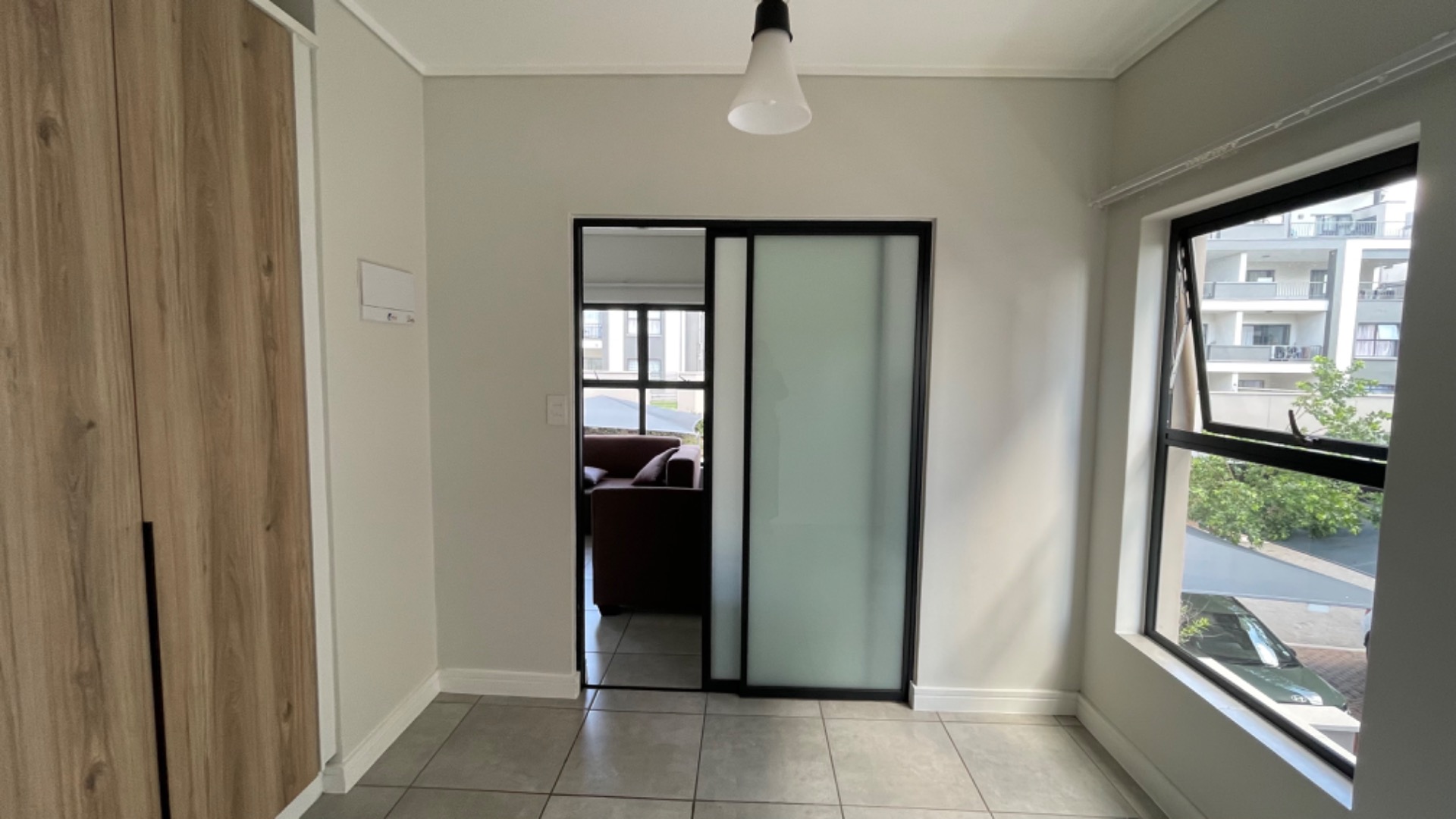 This modern one-bedroom, one-bathroom first-floor apartment in Munyaka Lifestyle Estate offers a comfortable and convenient lifestyle. The unit includes an open-plan kitchen with eco-friendly appliances, a spacious living area that leads onto a private balcony, and a well-sized bedroom with built-in cupboards.