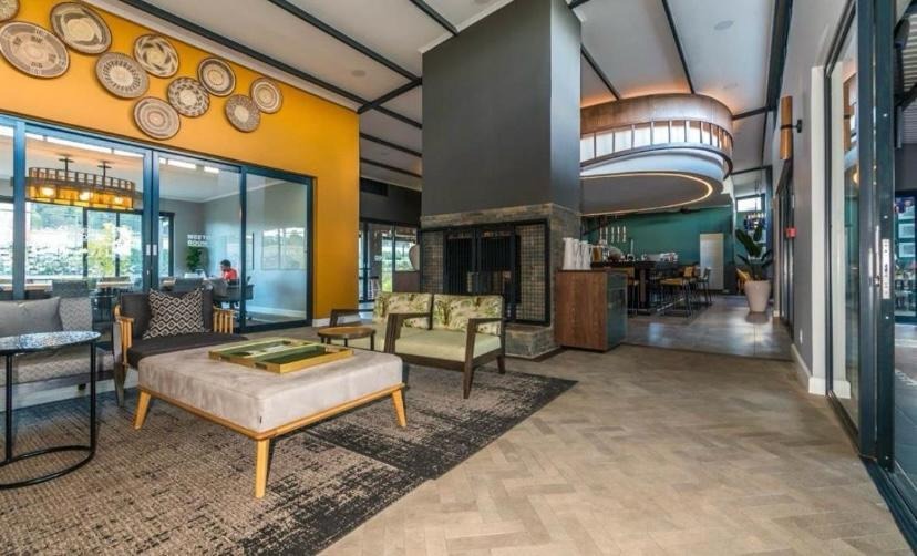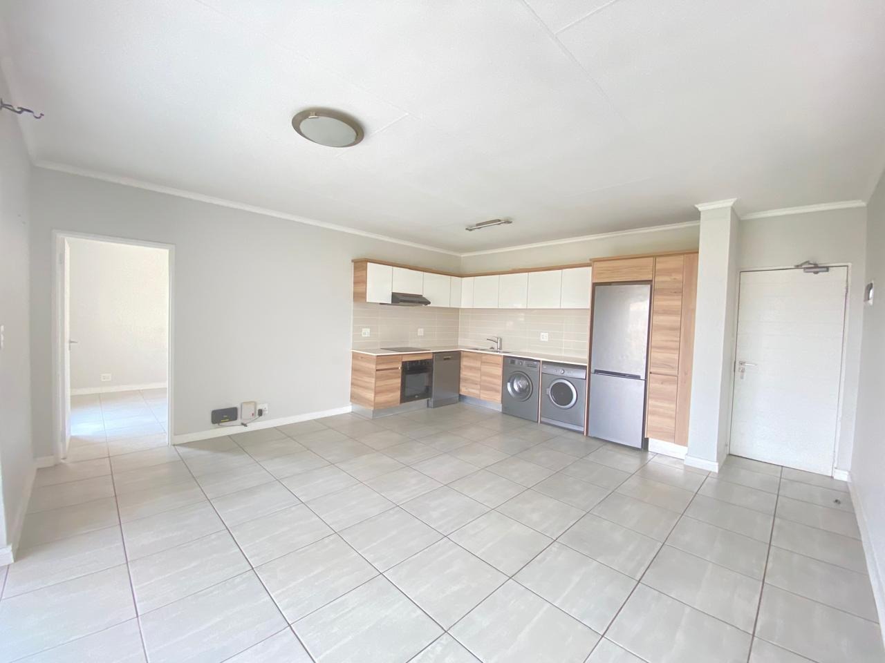 Trendy, stylish and modern, luxury large one bedroom apartment available at Kikuyu Lifestyle Estate. The apartment is fully tiled throughout, with open plan living area leading out onto an expansive patio with balcony and scenic views perfect for outdoor entertainment. Spacious bedroom with built in cupboards and ensuite bathroom. Stylish, modern Scandinavian style kitchen fully equipped with Defy appliances (washing machine, dryer, dishwasher) and built in electric stove, undercounter oven and extractor fan.