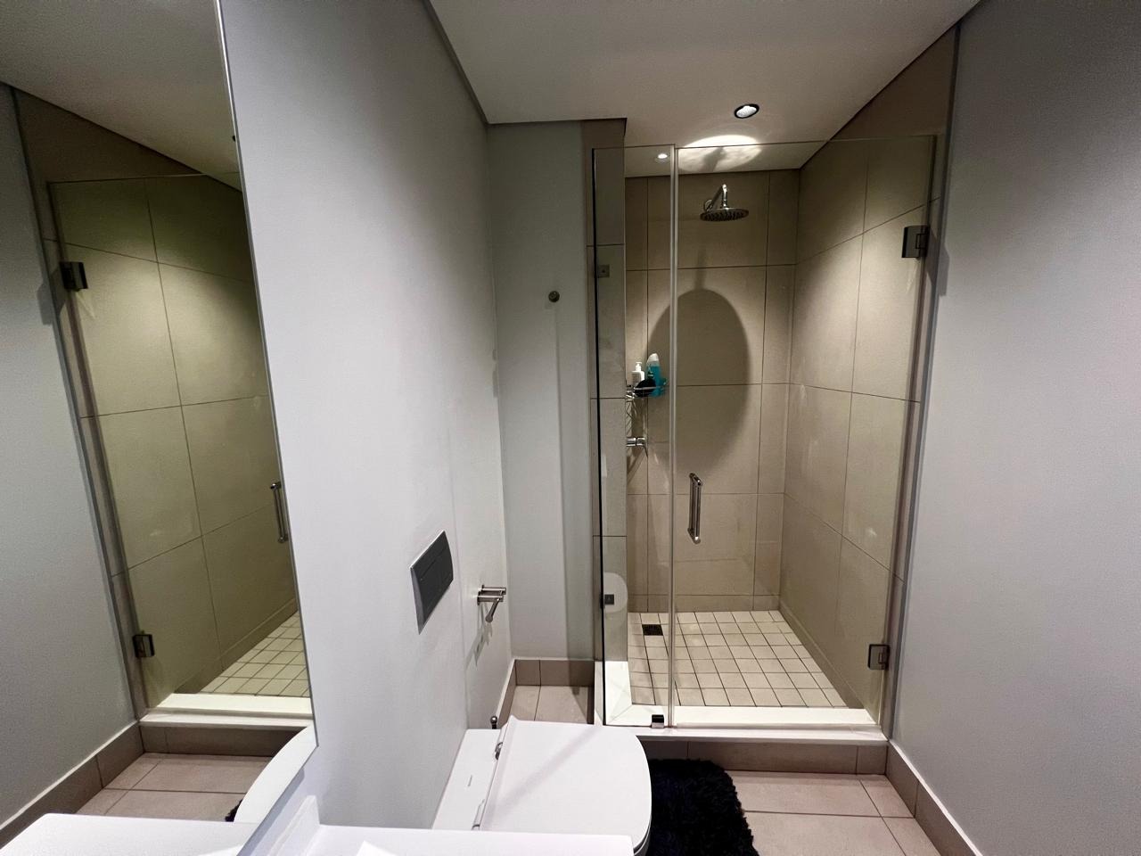 The bedroom is well-sized with built-in cupboards and is complemented by a sleek en-suite bathroom fitted with a modern walk-in shower and quality finishes.