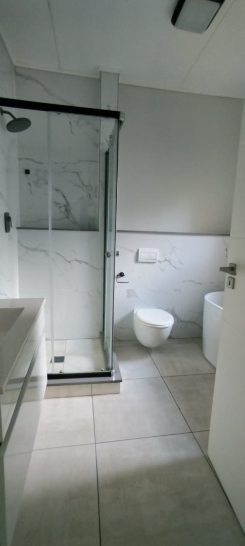 This modern 3-bedroom, 2-bathroom rental property offers a sophisticated living experience in Waterfall, Midrand. The sleek kitchen is a highlight, featuring glossy white cabinetry, dark countertops, a gas hob, and a stylish pendant light fixture, providing both functionality and contemporary appeal. The property includes a dedicated lounge and dining room, perfect for entertaining or daily living. Bathrooms are equally impressive, with one boasting a luxurious freestanding oval bathtub and a separate glass shower enclosure, alongside a wall-mounted toilet. The second bathroom presents a clean aesthetic with a wall-mounted vanity, a chic black-framed mirror, and a glass-enclosed shower with modern marble-patterned tiles. Throughout the home, you'll find clean white walls and durable tiled flooring, creating a fresh and inviting atmosphere. Built-in storage solutions are also present, enhancing practicality. Presented unfurnished, this residence serves as a versatile blank canvas, allowing tenants to infuse their personal style and create a truly bespoke home. It is ideally suited for professionals or families seeking a contemporary and low-maintenance lifestyle within a vibrant community. As part of an exclusive estate, residents benefit from access to exceptional communal amenities, including a sparkling swimming pool, a well-equipped gym, and a clubhouse, fostering a balanced and active lifestyle. Security is paramount within this estate environment, offering peace of mind for all residents. The property is also fibre-ready, ensuring high-speed internet connectivity essential for modern living and remote work. Two dedicated parking bays add to the convenience and accessibility of this rental. Nestled in this prime Midrand location, the property provides excellent access to local amenities, major transport routes, and business hubs. Living within this wellness estate offers a unique blend of urban convenience and tranquil living, making it an ideal choice for those seeking a balanced lifestyle. Key Features: * 3 Bedrooms, 2 Bathrooms * Modern kitchen with gas hob * Sleek, contemporary bathrooms * Durable tiled flooring throughout * Unfurnished, ready for customisation * Access to communal pool, gym, and clubhouse * Fibre-ready connectivity * 2 Dedicated parking bays * Located within a secure estate