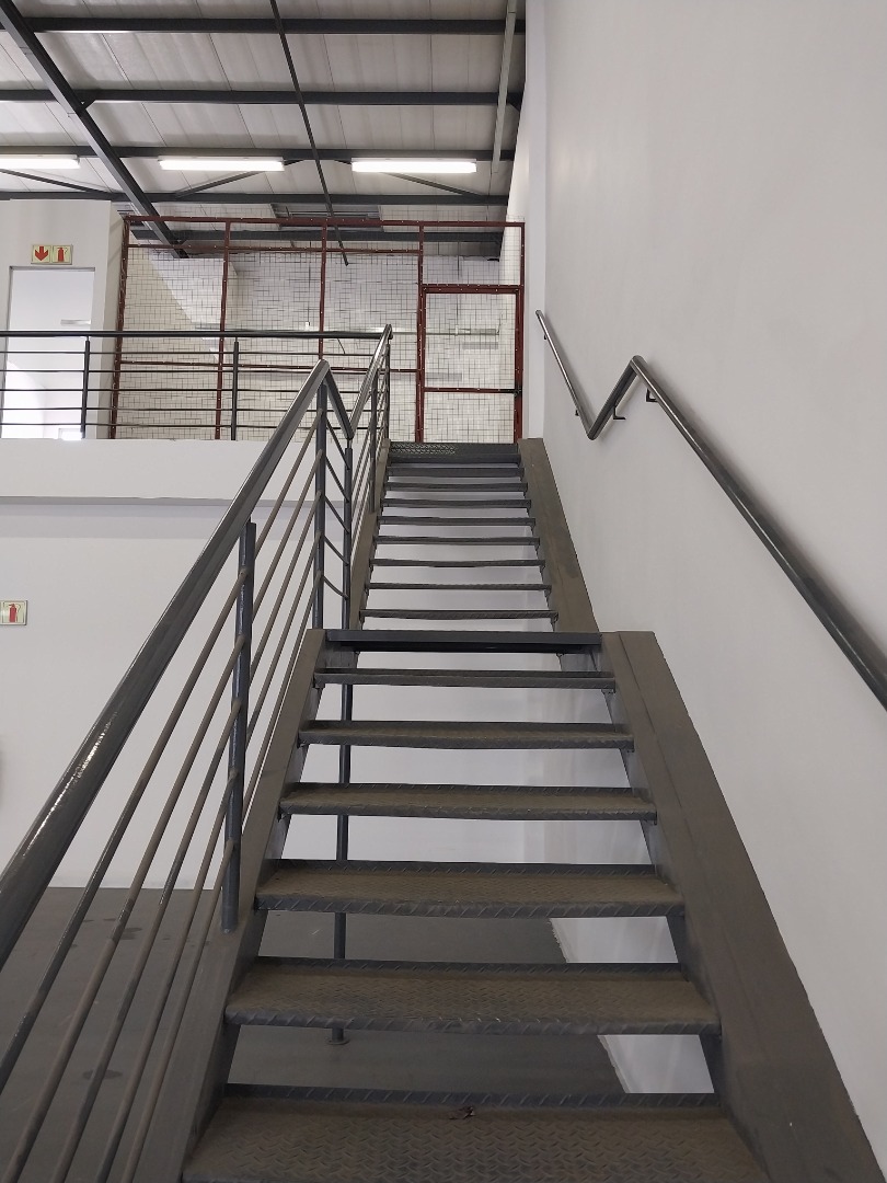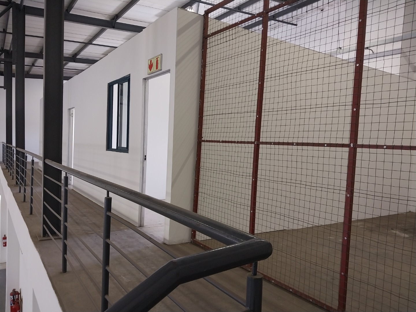 Upstairs, the spacious mezzanine level provides flexible open-plan space ideal for offices or additional storage, complemented by two neatly partitioned drywalled offices. A side fire-escape door enhances functionality and compliance.