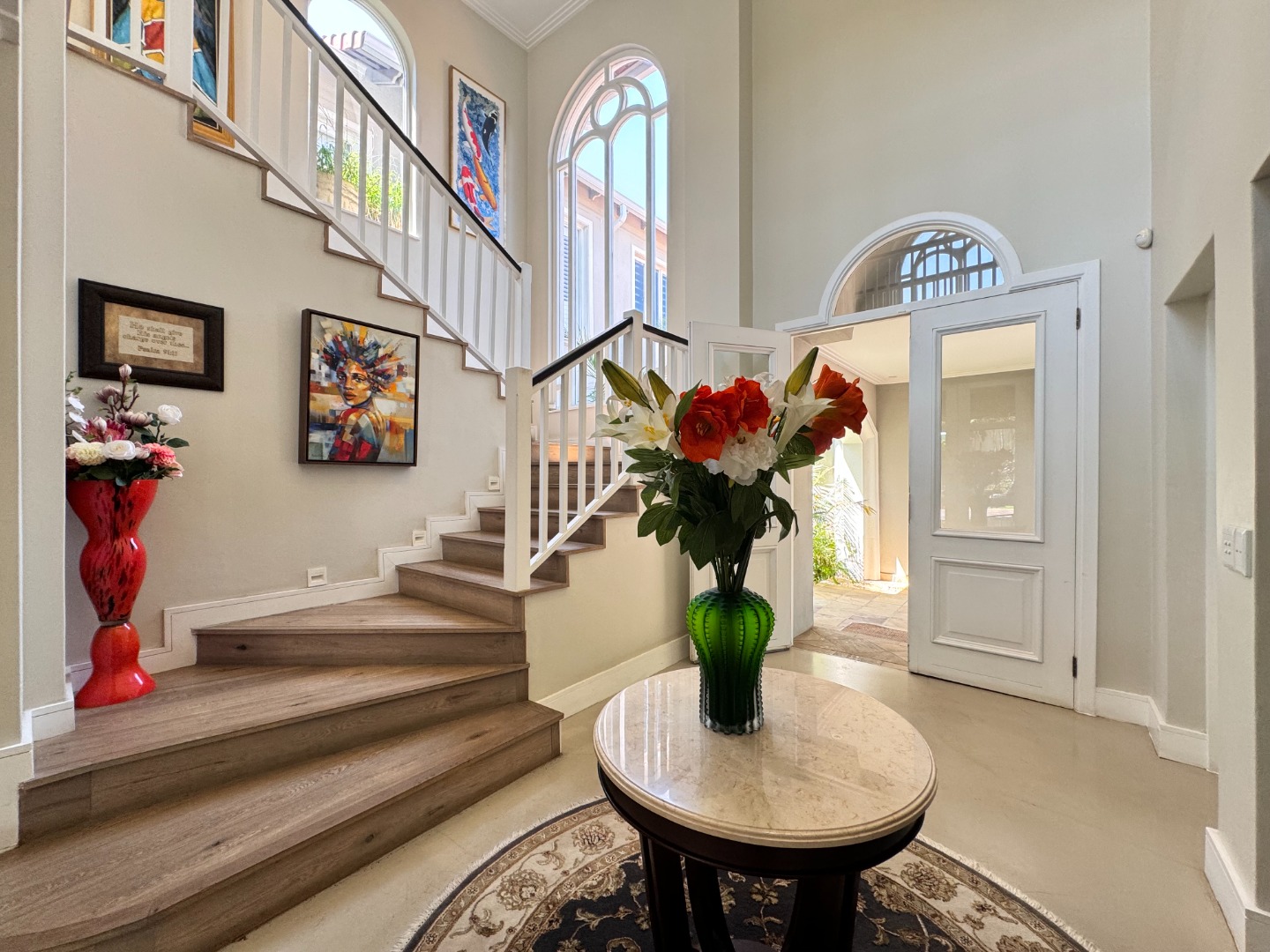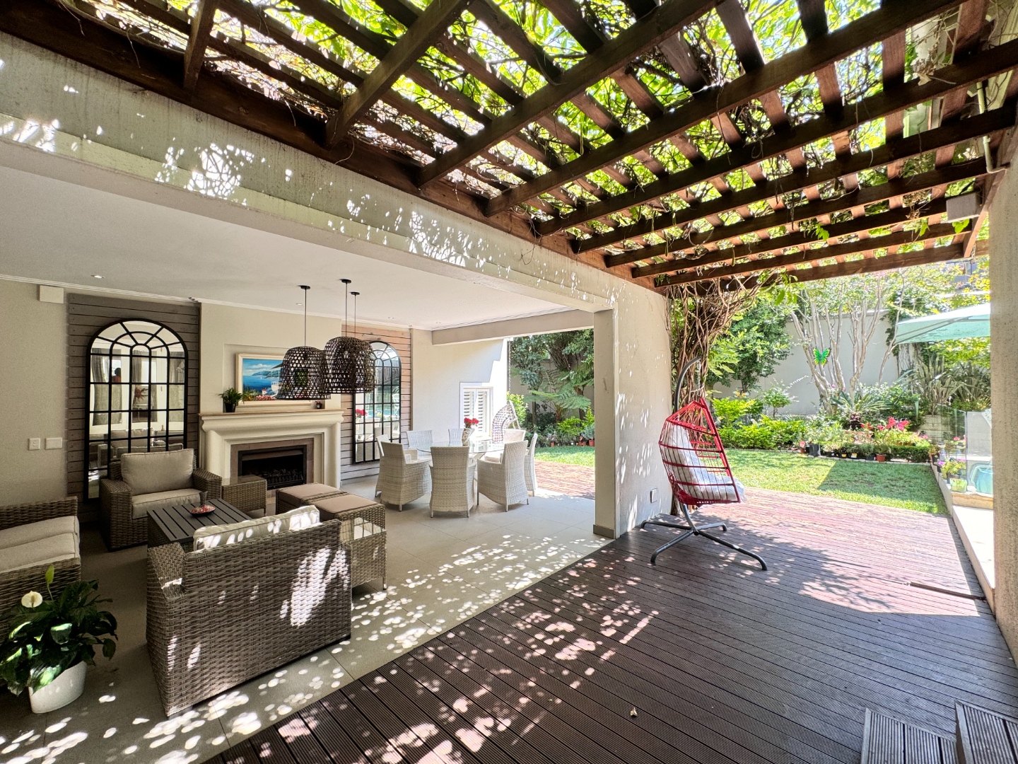 Enter to impressive entrance hall, warm and open-plan living areas - lounge, dining room, TV room - opening to year-round patio overlooking an enchanting garden of “Eden” and heated swimming pool to set your heart on fire.