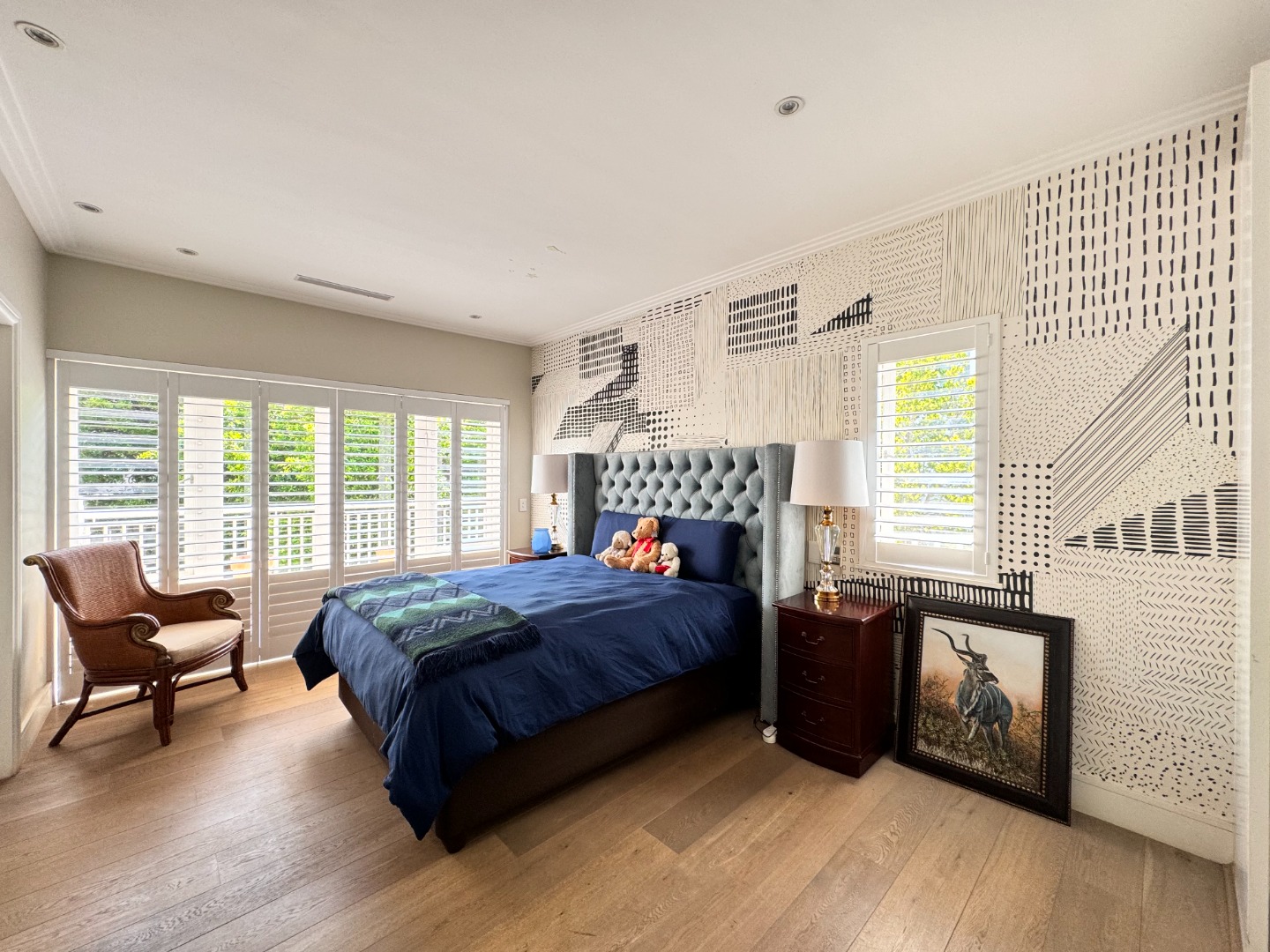 5 deluxe bedrooms (including downstairs guest suite) plus massive upstairs pyjama/TV lounge. Extra spacious main bedroom with dressing area.