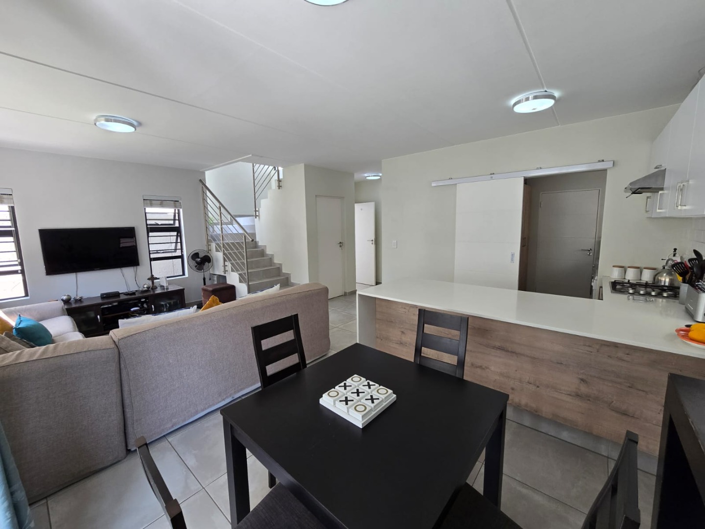 This lovely 3-bedroom, 2.5-bathroom home in Broadacres, Sandton, is ready for you to move in and make it your own! Step inside and you'll find a super modern, open-plan living space that just feels right. The contemporary kitchen is a real highlight, boasting a gas hob, oven, and an island that's perfect for casual meals or entertaining. There's plenty of counter space and storage, plus a separate scullery with a handy pantry. The living area is sizeable with air conditioning and gets loads of natural light, flowing seamlessly onto your private outdoor patio. You'll love the easy-to-maintain tiled flooring throughout, giving the whole place a clean, fresh look.