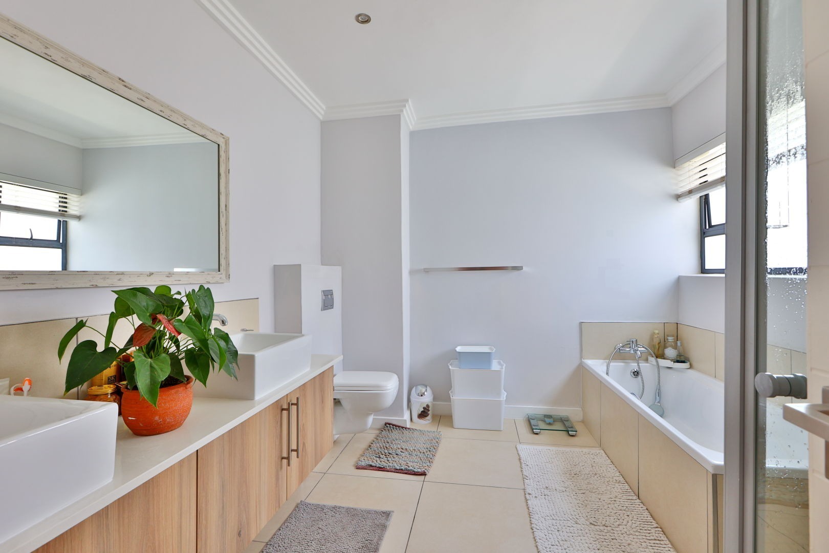 Sizeable, bright main bedroom with a walk-in closet and en-suite with double vanity and a bath and shower. Main bedroom has access to the balcony. Abundance of cupboard space.