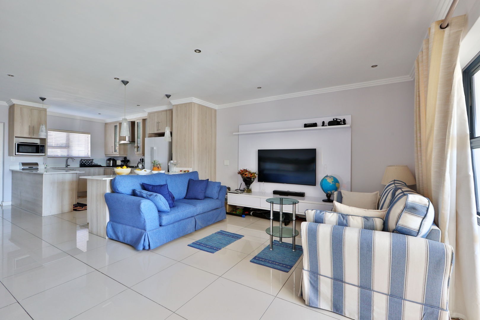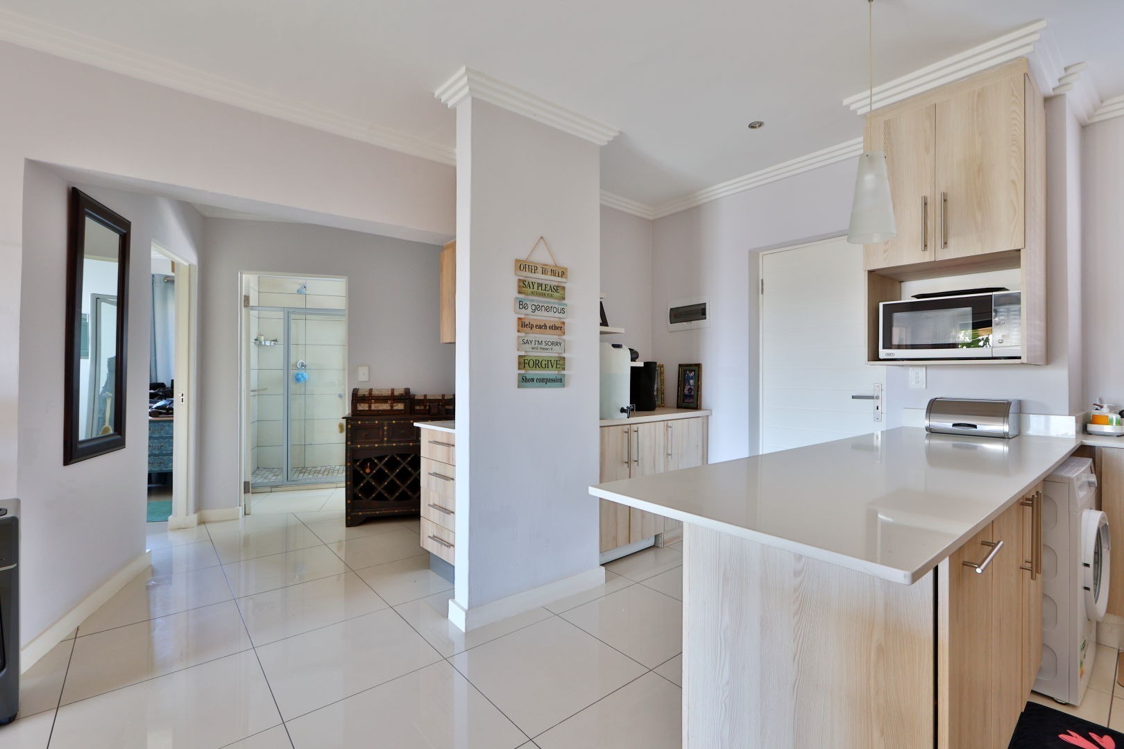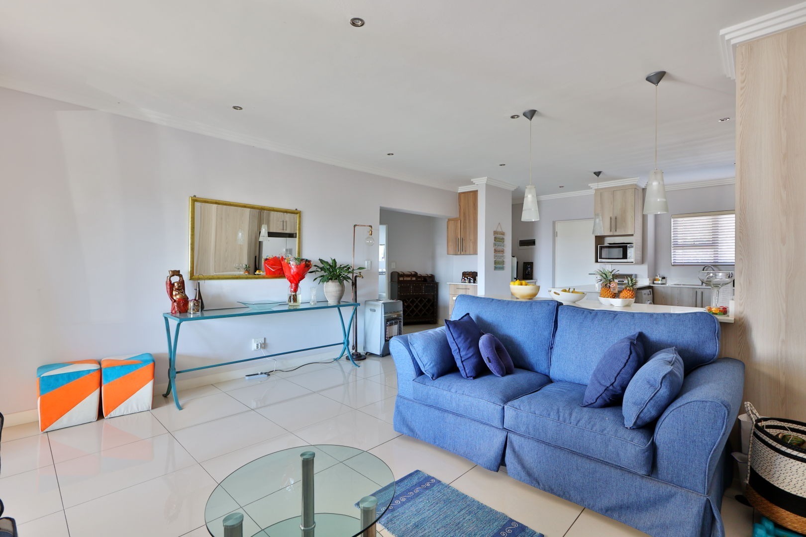 Lovely spacious lounge tiled throughout leading you through a large slider door to a gorgeous balcony where one can disappear into calm after a day at work.
