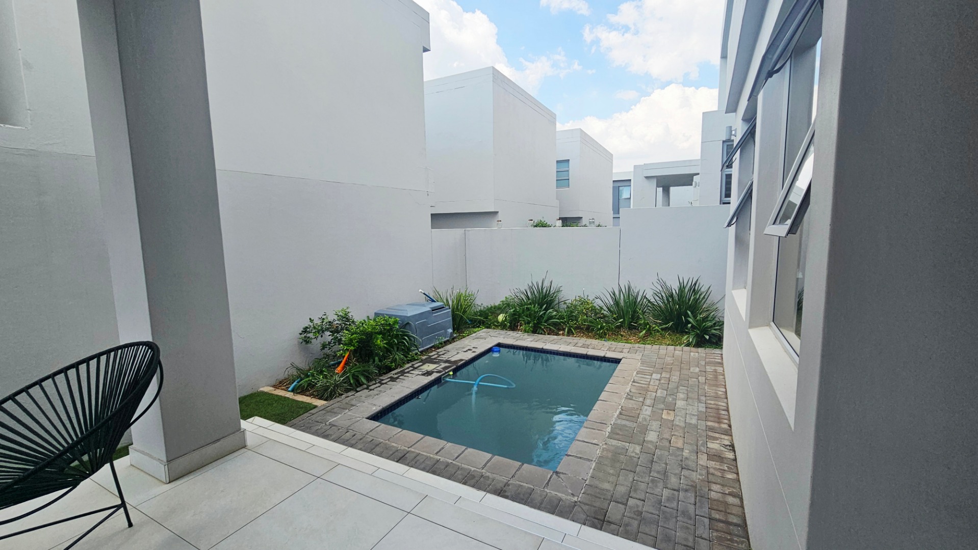 Discover an unparalleled lifestyle within this exquisite modern residence, perfectly situated in the prestigious Bryanston, Sandton. This sophisticated rental property, spanning 230 sqm of refined living space, offers three luxurious bedrooms, each boasting a private en-suite bathroom, complemented by an additional guest toilet for ultimate convenience. The home unfolds into expansive open-plan living areas, featuring two elegant lounges and a dedicated dining room, all bathed in abundant natural light from large windows and sliding doors, creating an inviting and airy ambiance.