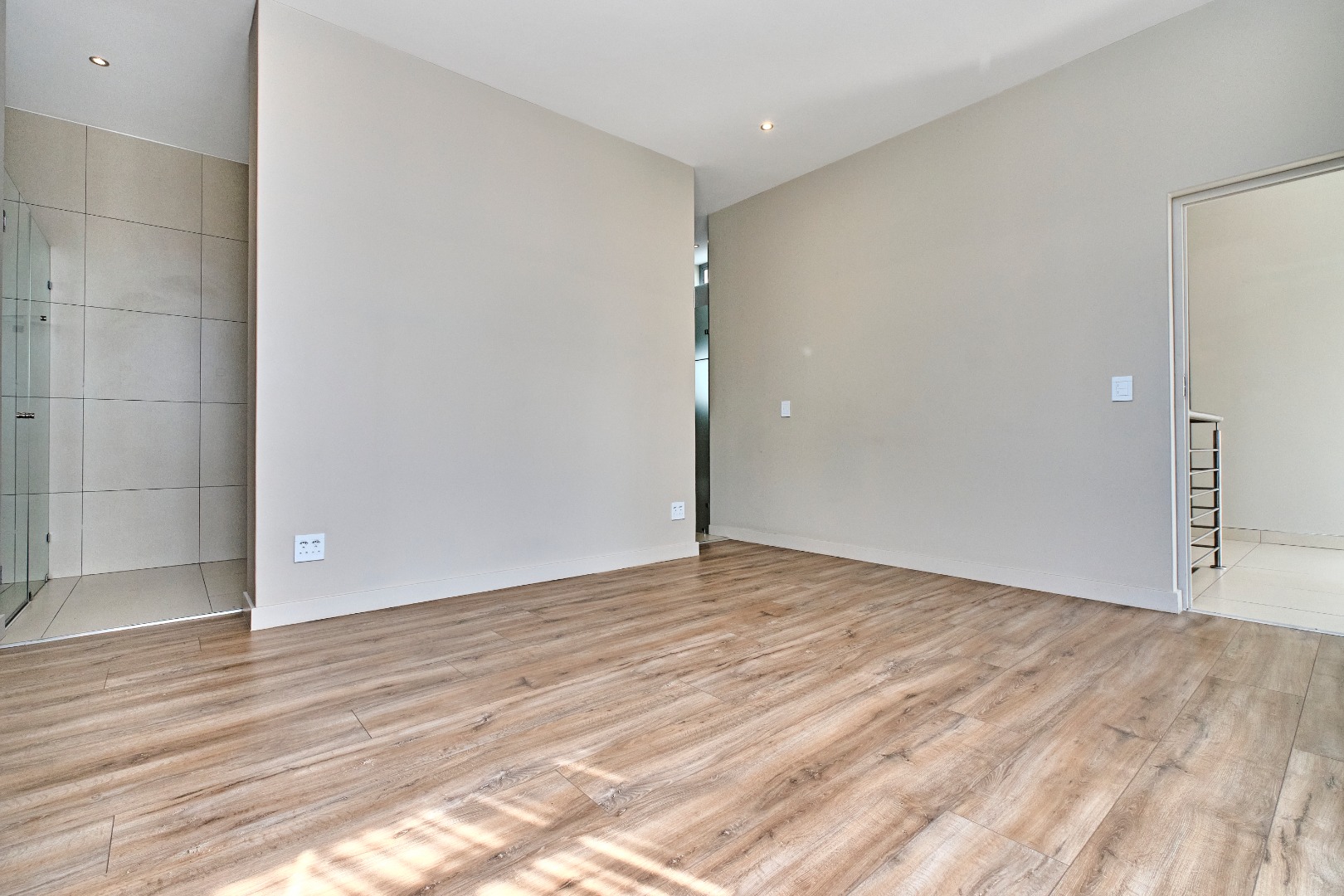 The ultra-modern kitchen is a culinary masterpiece, boasting a premium Smeg oven, gas stove, and a separate scullery for three appliances. Upstairs, three sumptuously appointed bedrooms await, each a private sanctuary with warm wood laminate floors and its own luxurious en-suite bathroom. The master suite is a true haven, complete with a charming Juliette balcony and a lavish full bathroom featuring a double vanity, bath, and invigorating shower. An inviting pyjama lounge provides an intimate retreat, complemented by a convenient guest toilet downstairs, totalling 3.5 bathrooms.