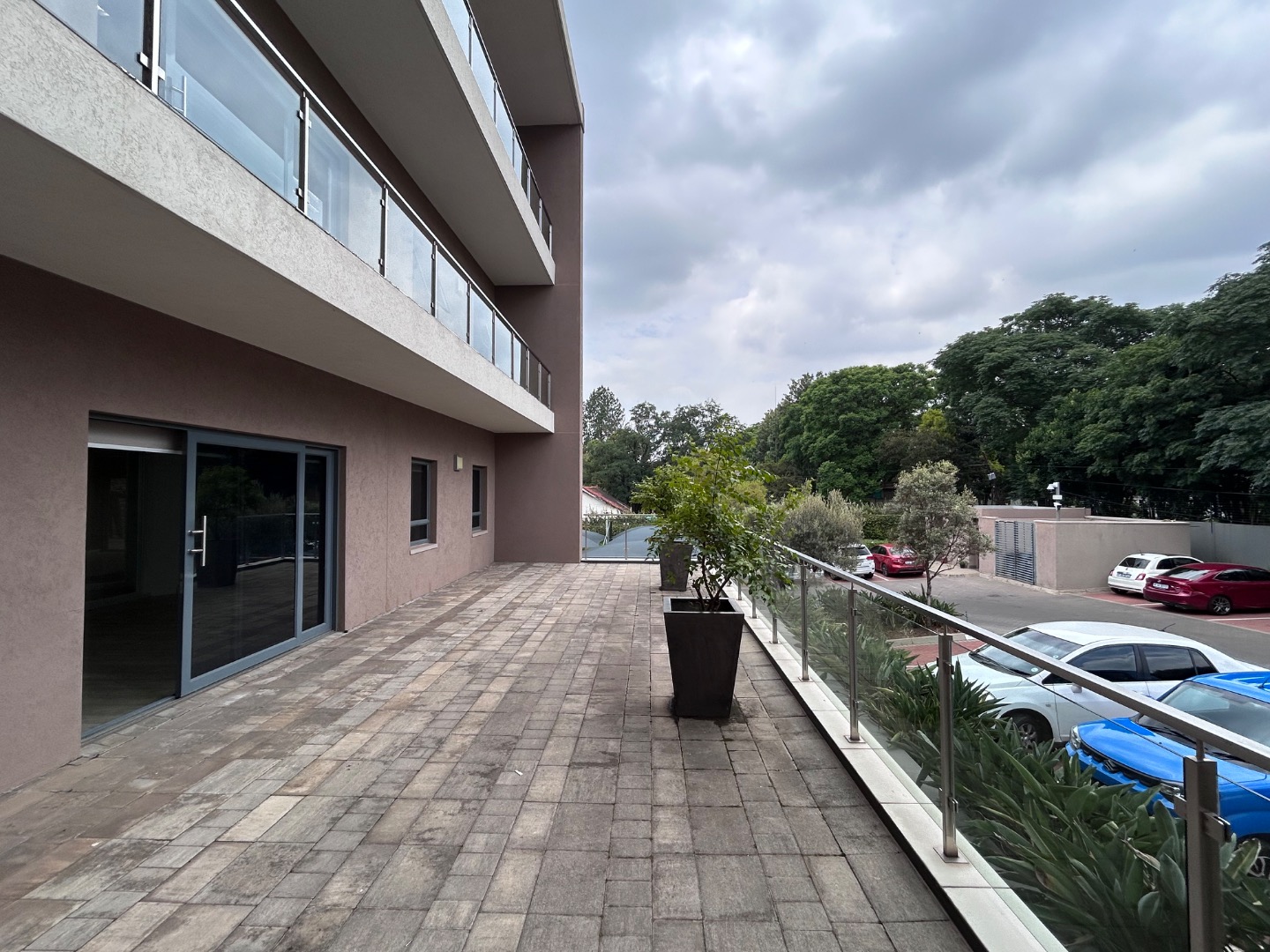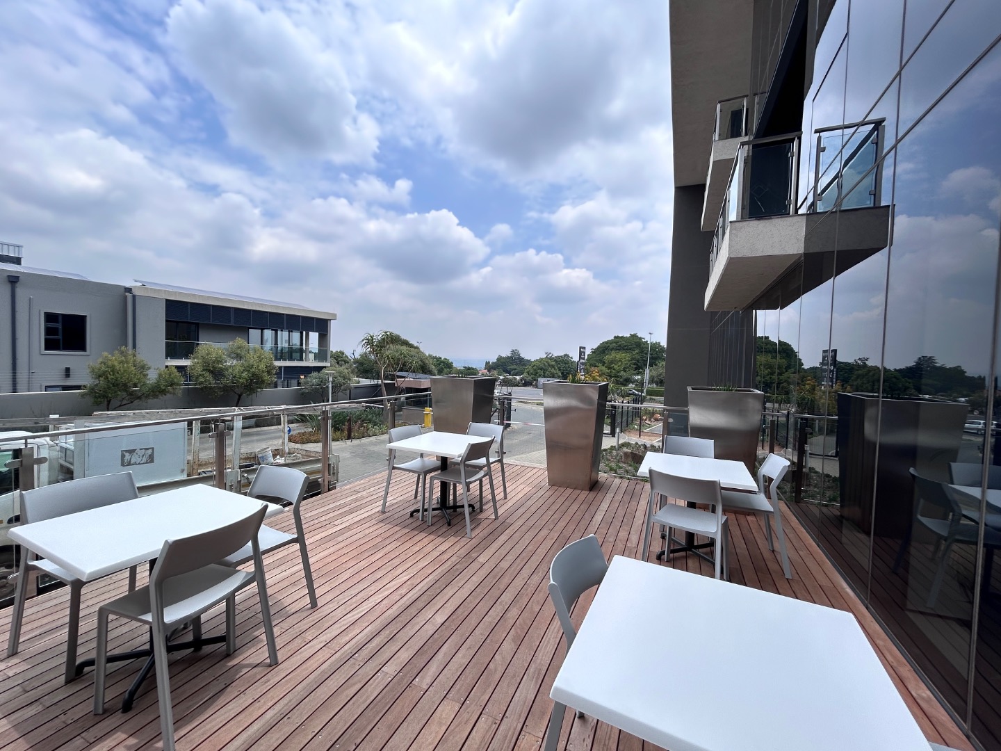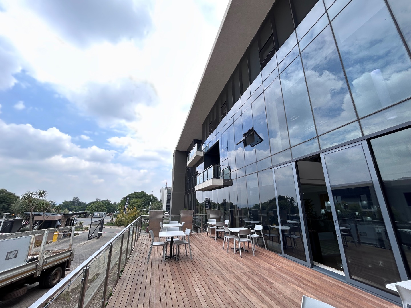 This exceptional commercial rental opportunity in Bryanston, Sandton, presents a modern and sophisticated workspace spanning 248 square meters. The building boasts a striking architectural design, featuring an extensive glass facade that ensures abundant natural light. Multiple spacious balconies with sleek glass railings offer valuable outdoor access, enhancing the work environment.
