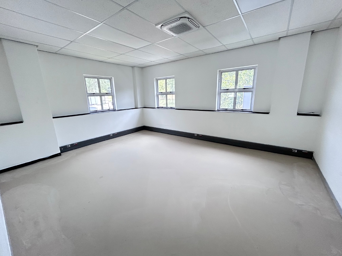 This exceptional 419 sqm commercial rental opportunity in Bryanston offers a versatile and modern workspace designed to accommodate diverse business requirements. The units present a clean, adaptable canvas with freshly painted white walls, high ceilings, and abundant natural light streaming through multiple windows. Many spaces feature open layouts, ready for custom tenant fit-outs, while some benefit from direct access to an outdoor balcony, enhancing the work environment. The current unfinished flooring in certain areas allows for bespoke finishes tailored to your brand's aesthetic and operational needs.