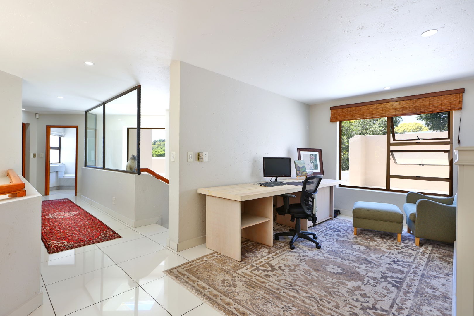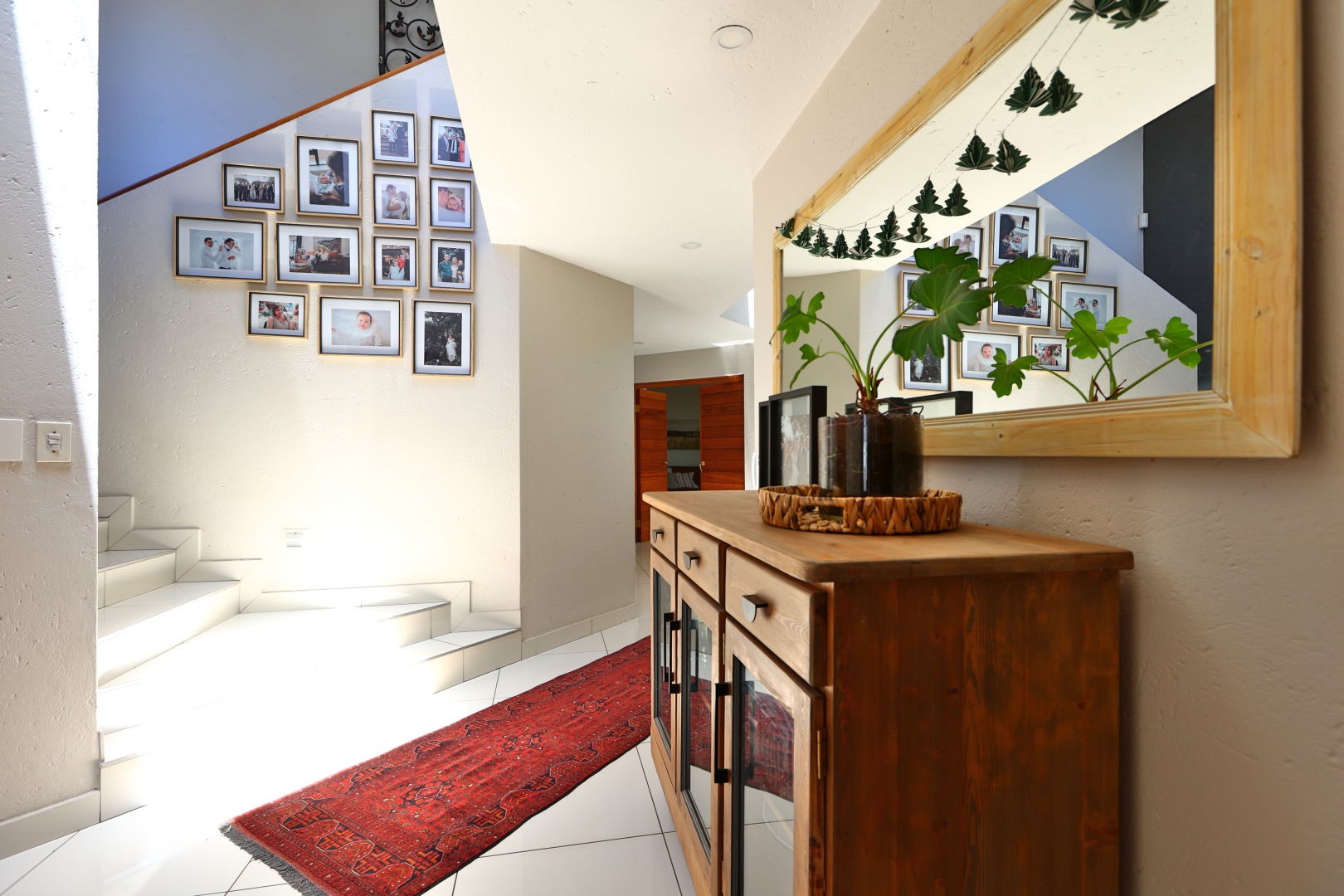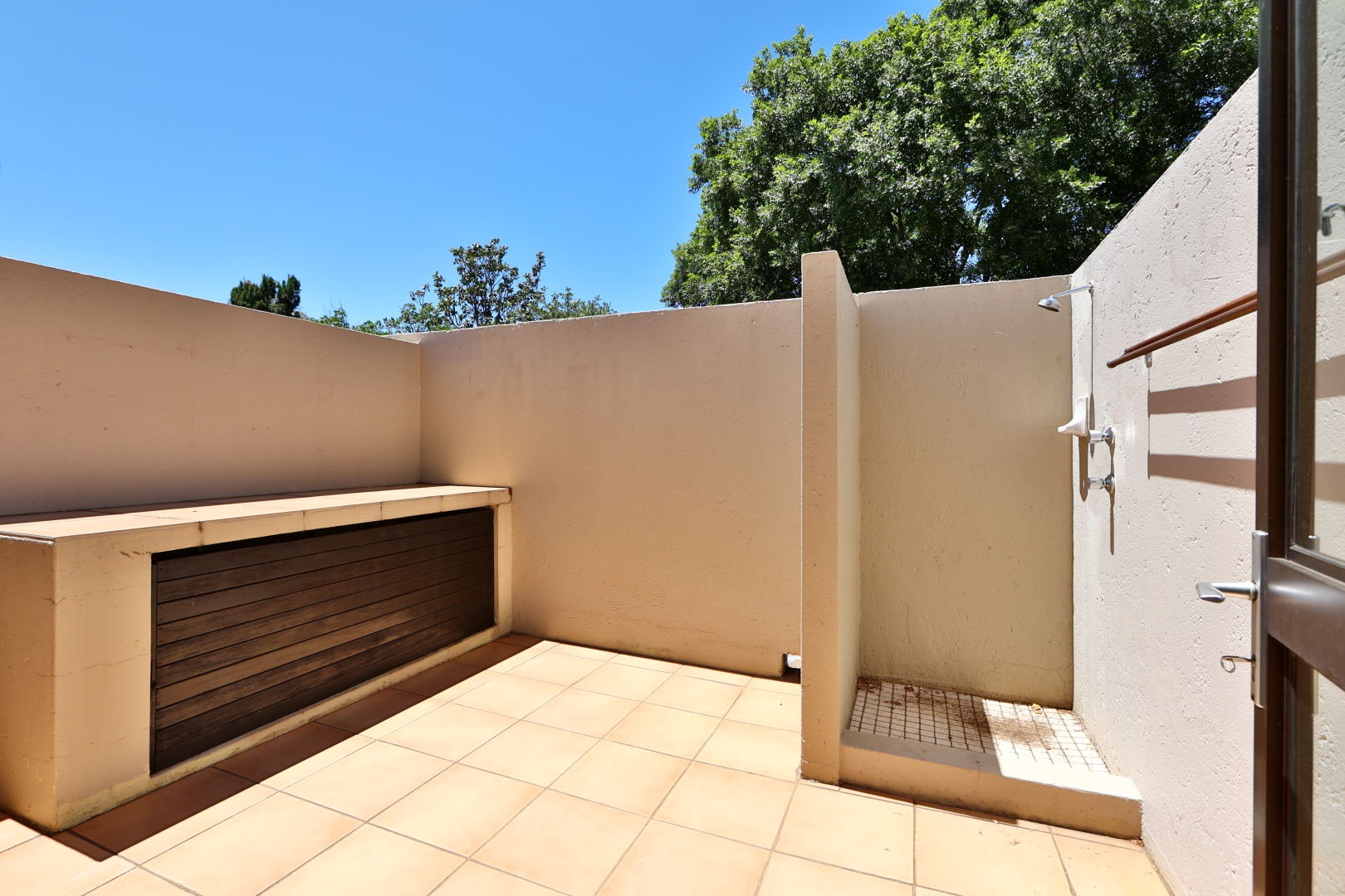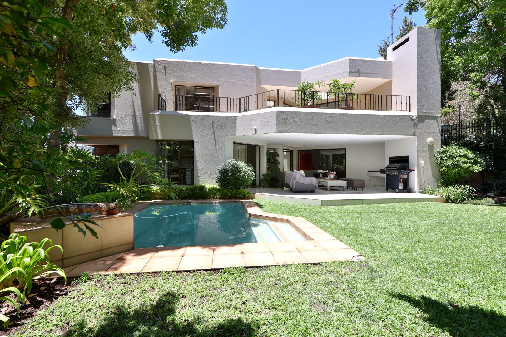 Step outside to a private oasis on the 895 sqm erf. An expansive covered patio, perfect for outdoor entertaining, seamlessly connects to a lush garden and refreshing swimming pool. Multiple balconies and a dedicated braai room enhance entertainment. Security is paramount within this complex, featuring an access gate, alarm system, electric fencing, and a security post. Pets are welcome, and practical amenities include air conditioning, staff quarters, and three garages with four total parking spaces. Occupation 1 February 2026.