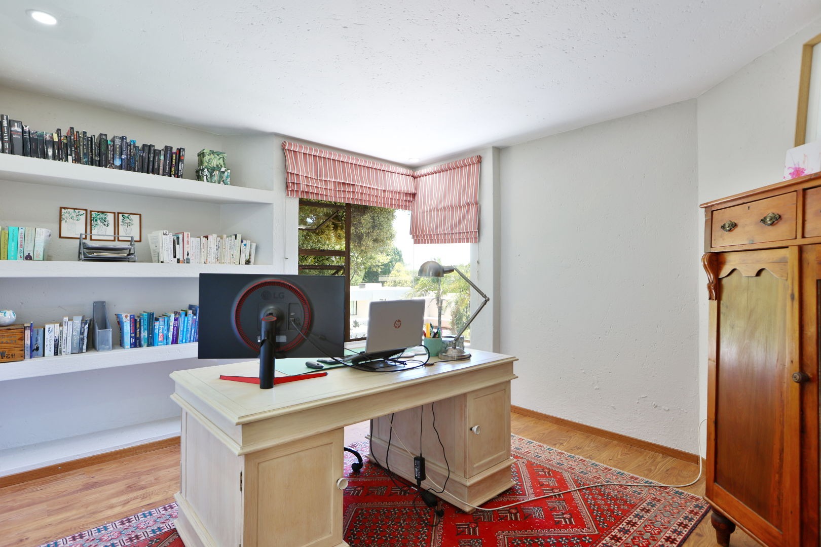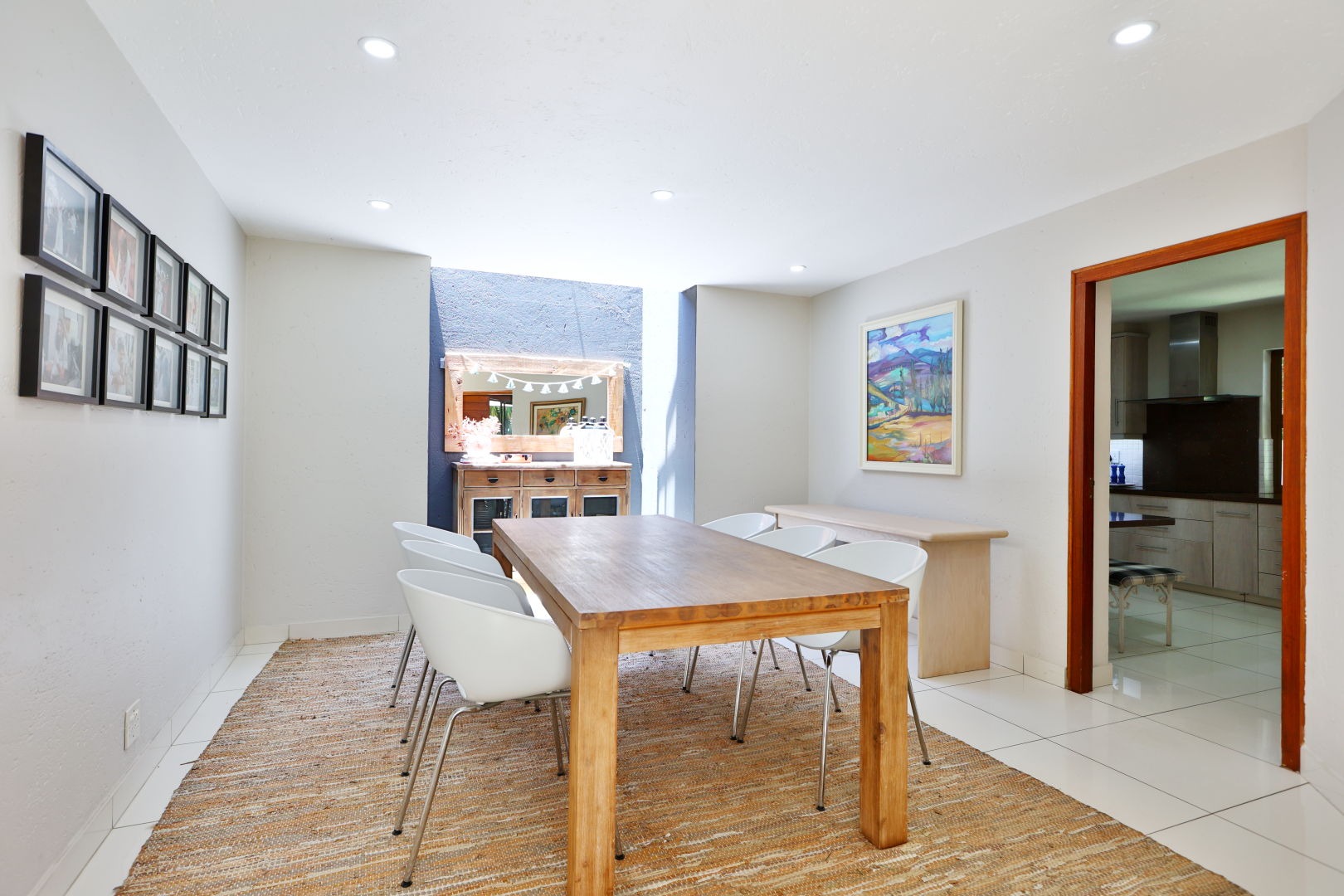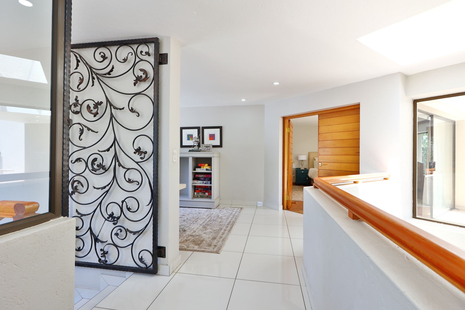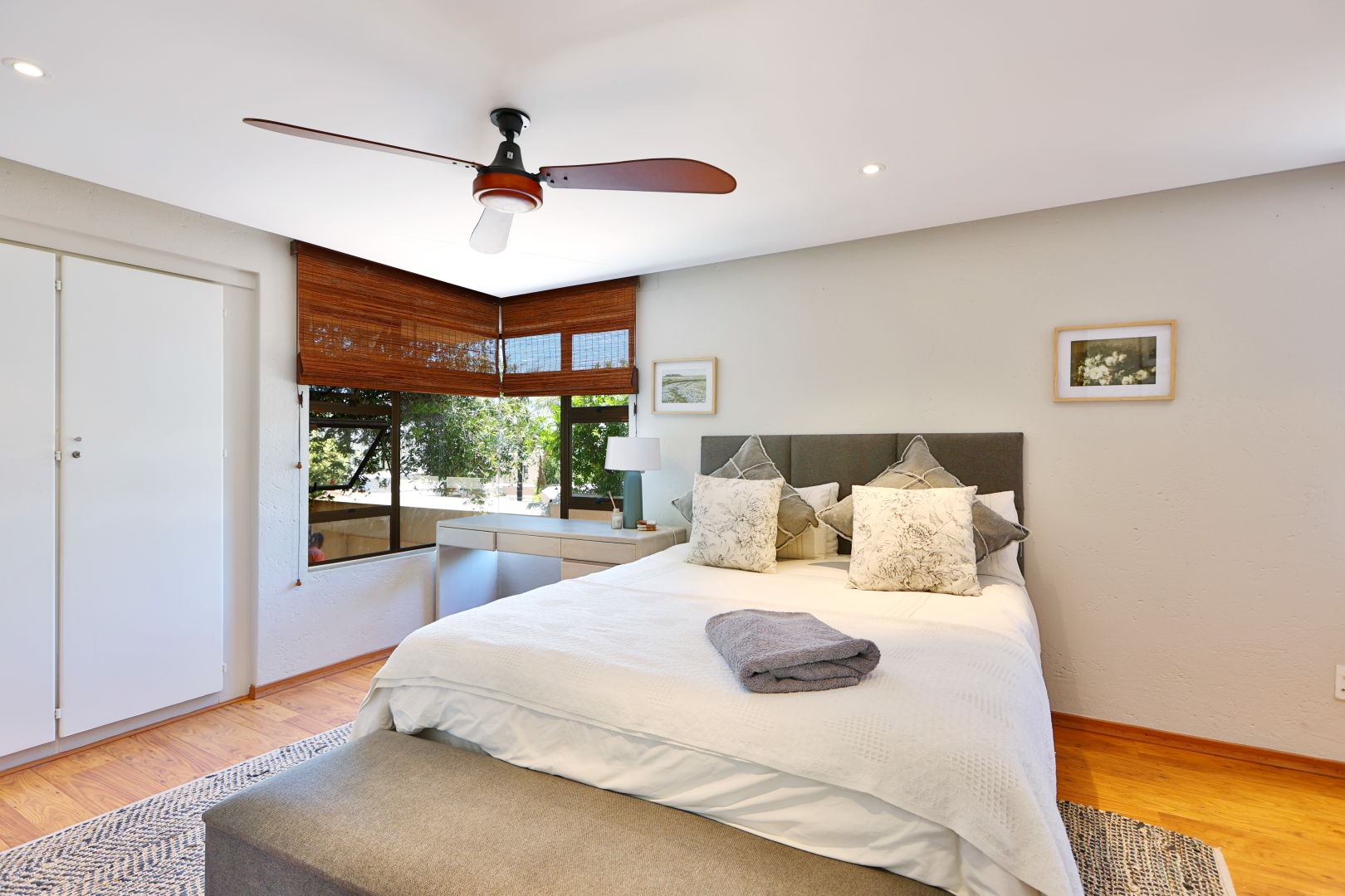 Step outside to a private oasis on the 895 sqm erf. An expansive covered patio, perfect for outdoor entertaining, seamlessly connects to a lush garden and refreshing swimming pool. Multiple balconies and a dedicated braai room enhance entertainment. Security is paramount within this complex, featuring an access gate, alarm system, electric fencing, and a security post. Pets are welcome, and practical amenities include air conditioning, staff quarters, and three garages with four total parking spaces. Occupation 1 February 2026.