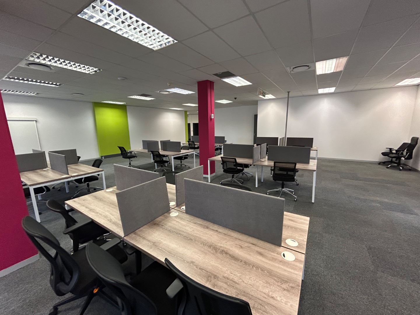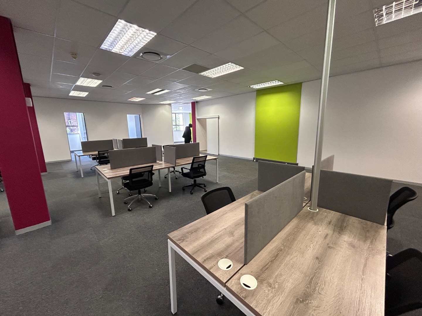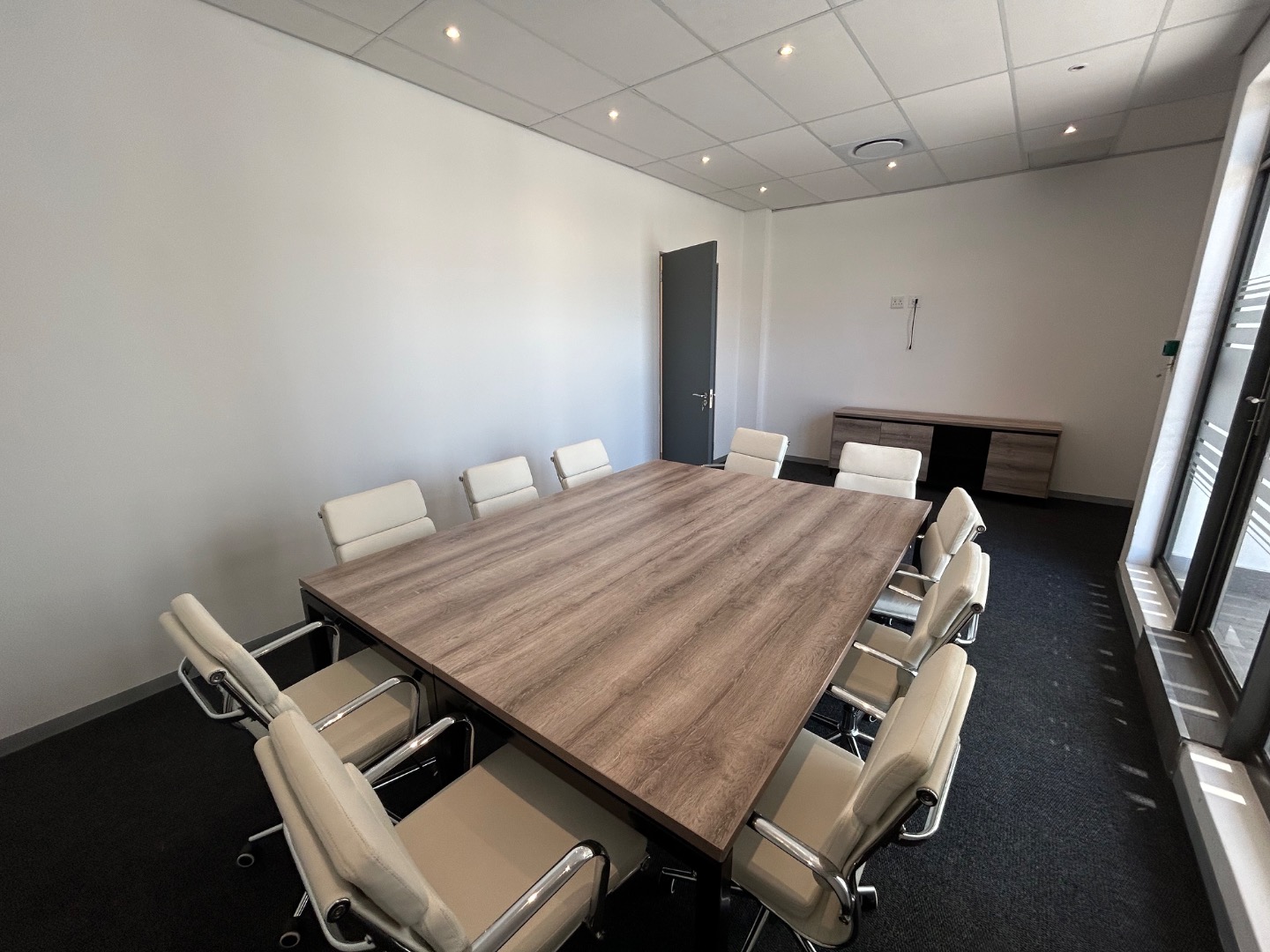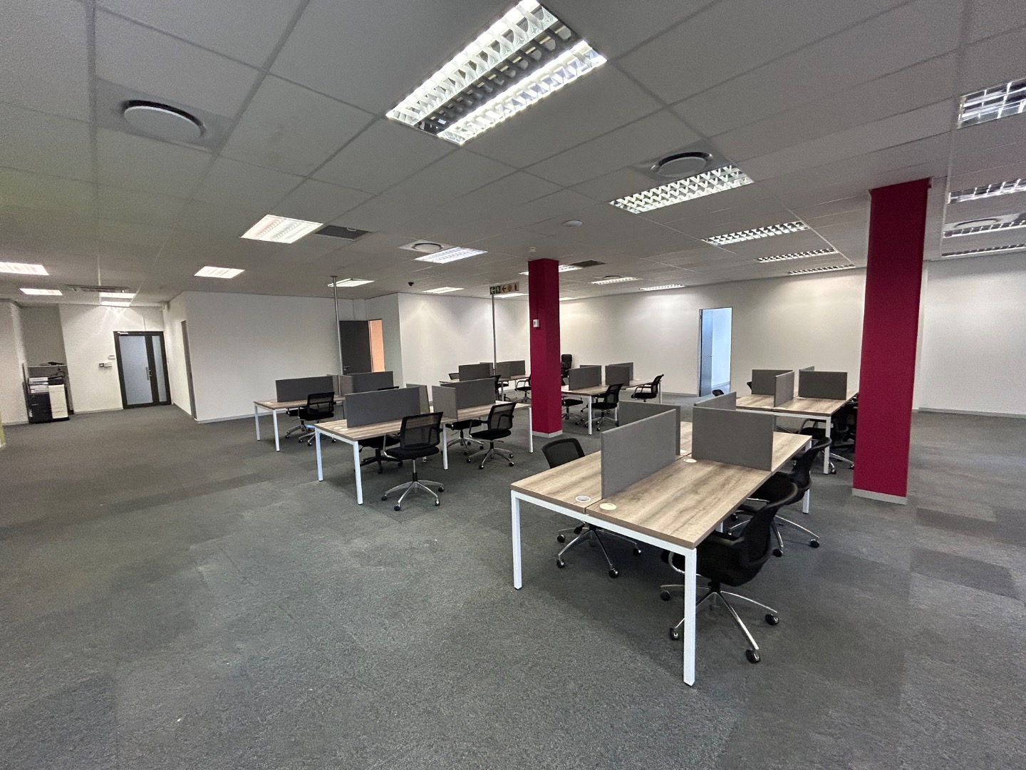 The office is in excellent condition; just move in. With reception, boardroom, meeting room, 6 spacious private offices, a large open-plan office area with desks in place, breakaway area leading to huge patio, and a clean, modern, open-plan kitchnette. Offie suite ajoining for future expansion space.