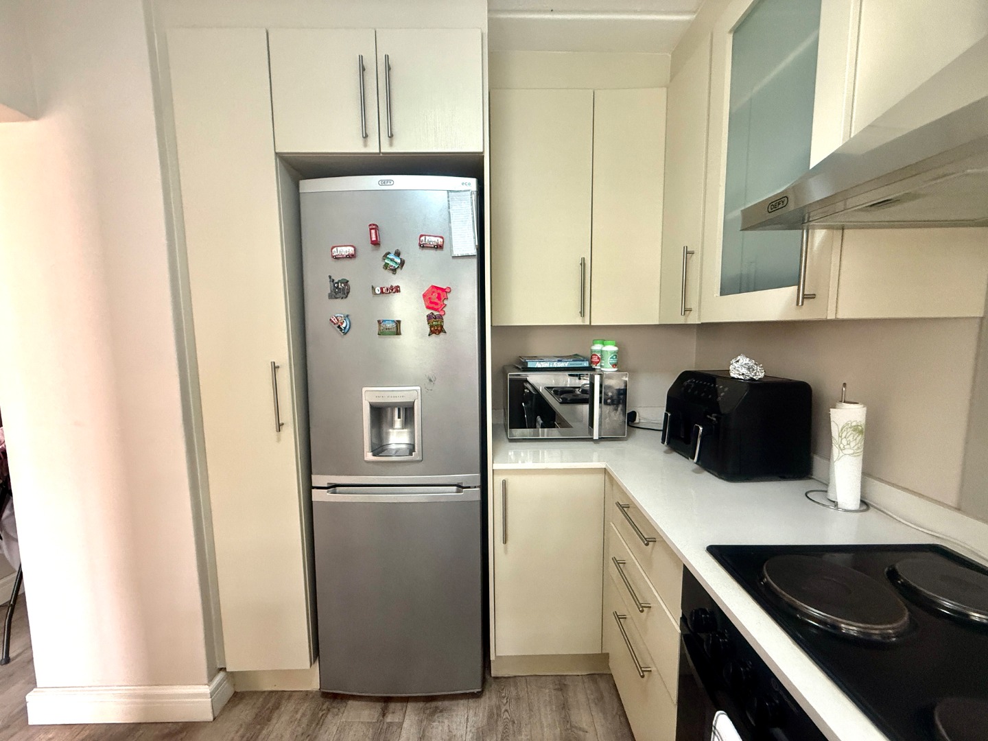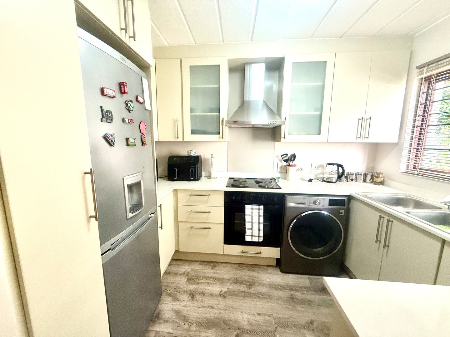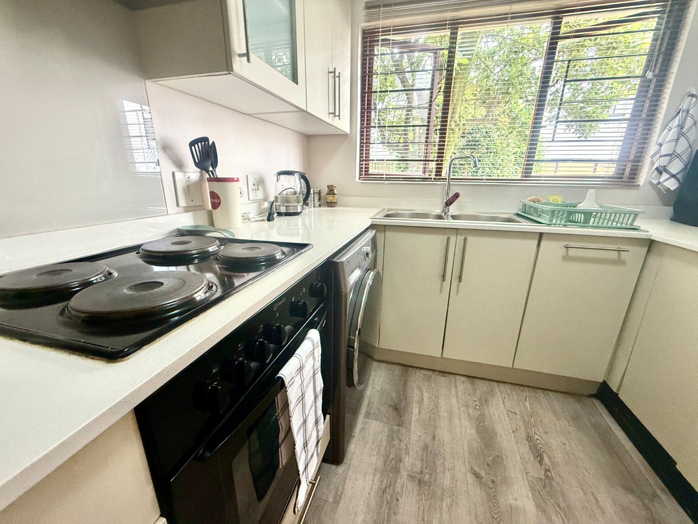 This beautifully refurbished 1-bedroom, 1-bathroom apartment is perfect for hassle-free modern living. Semi-furnished for your convenience, it includes a comfortable bed and features an open-plan living area that seamlessly flows into a secluded, modern kitchen. The kitchen comes equipped with a duo washing machine/dryer and a fridge, making life easy.
