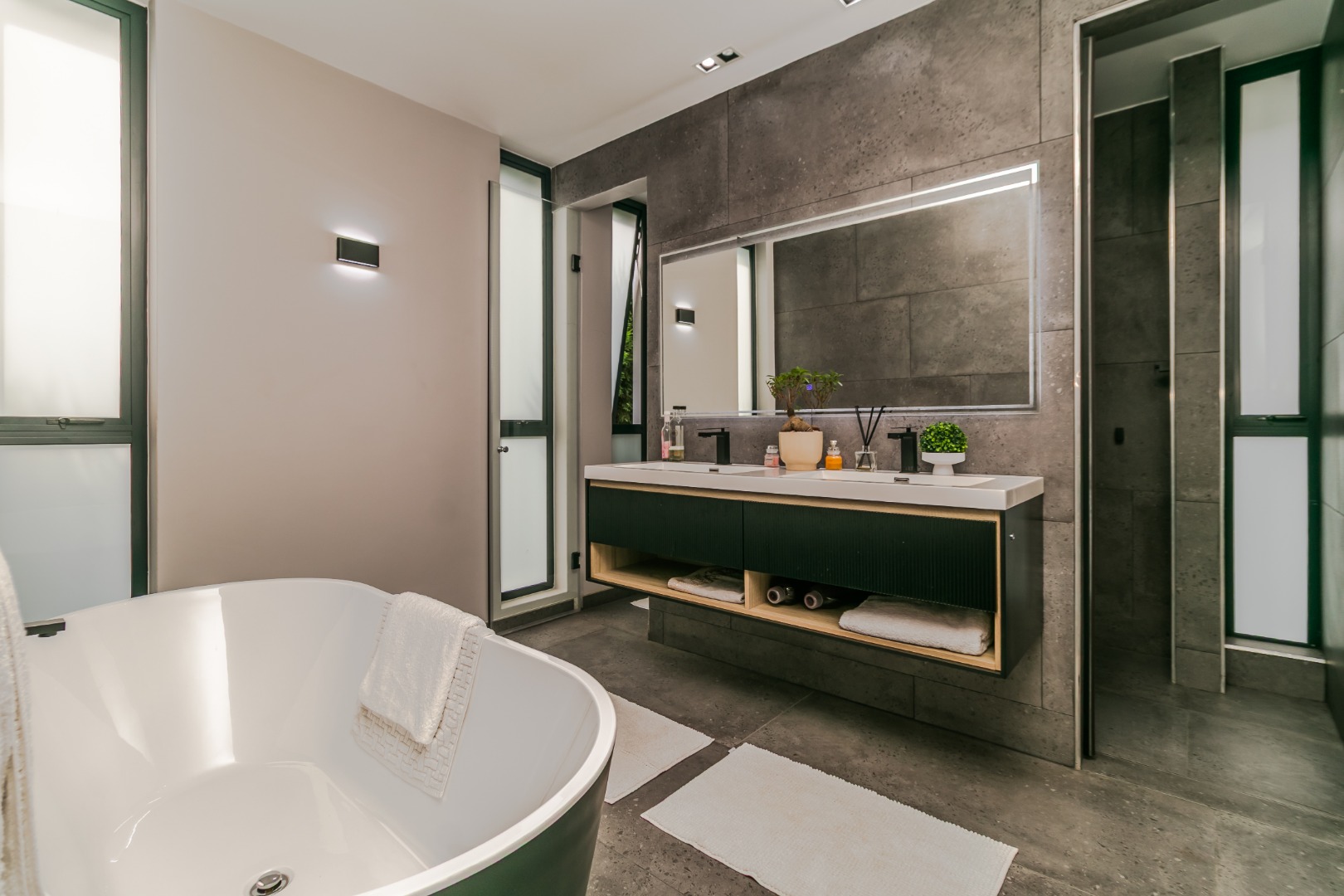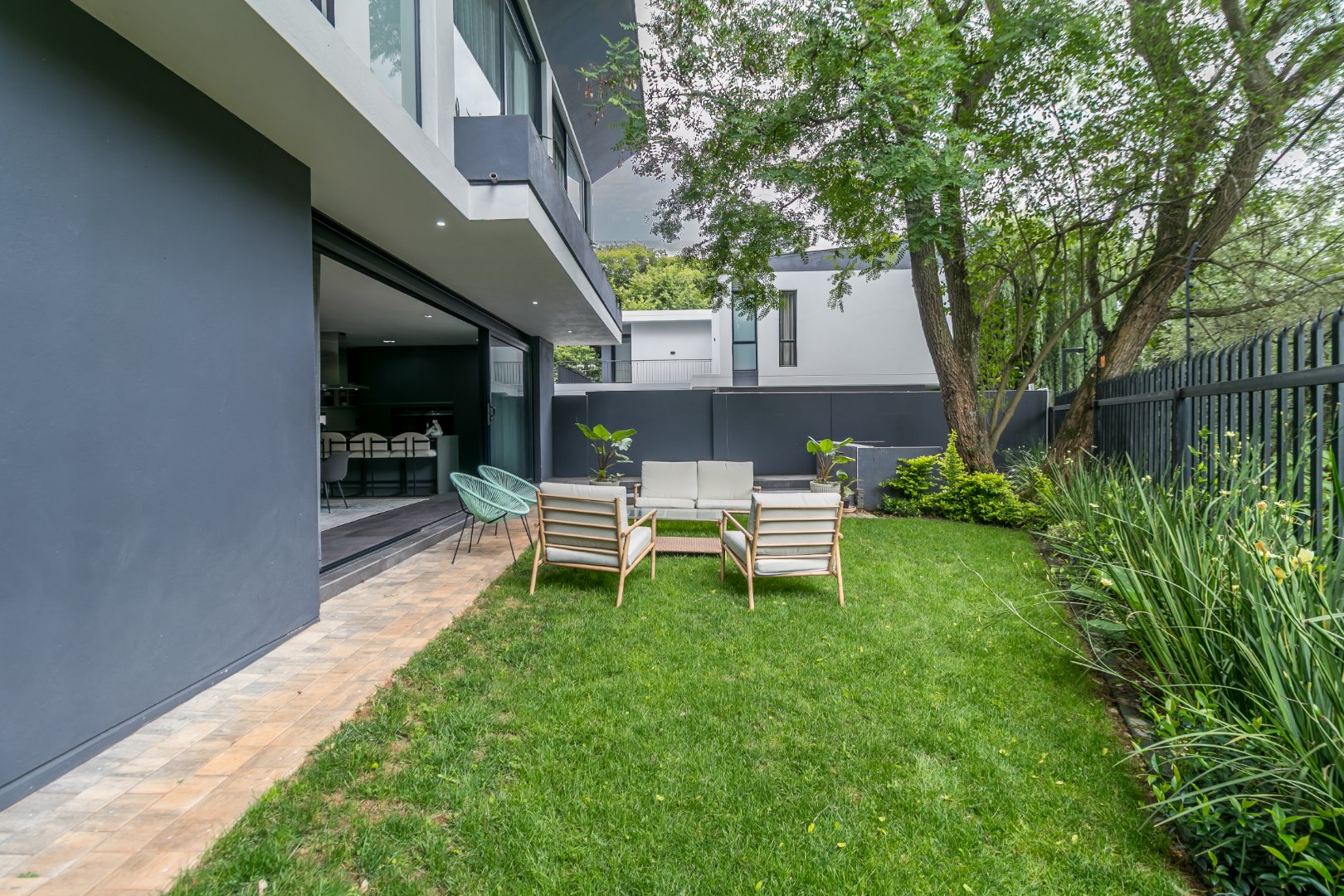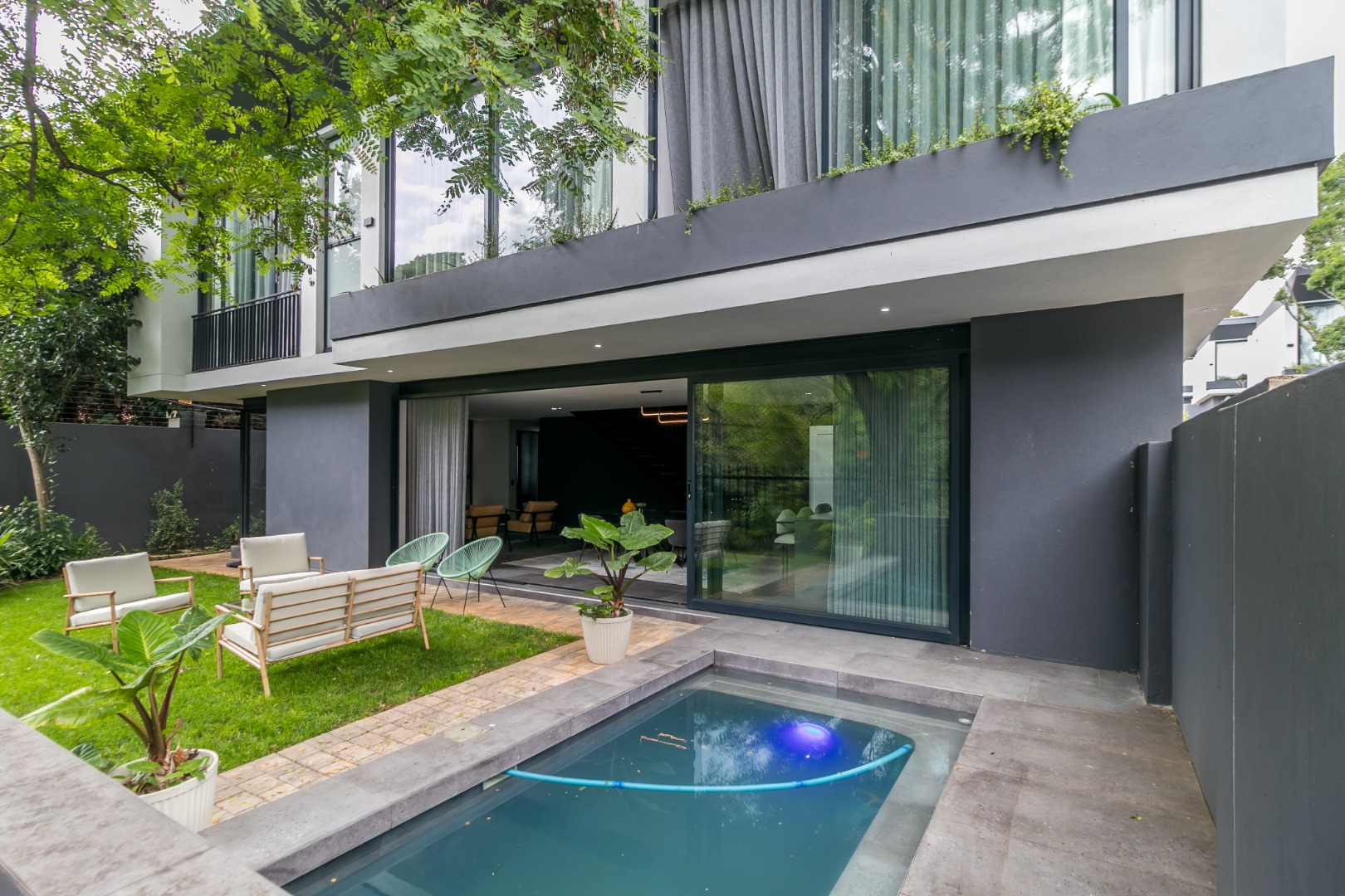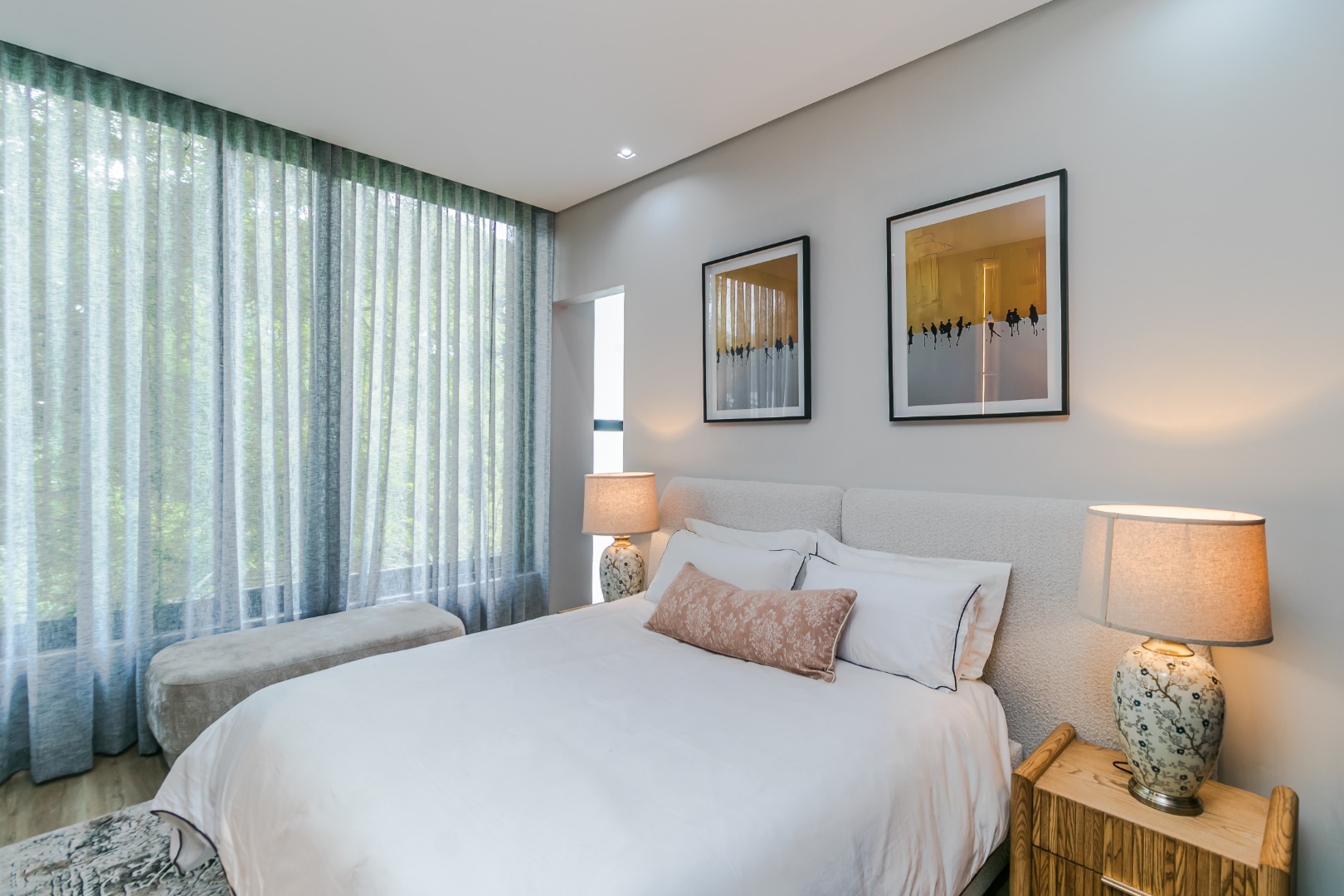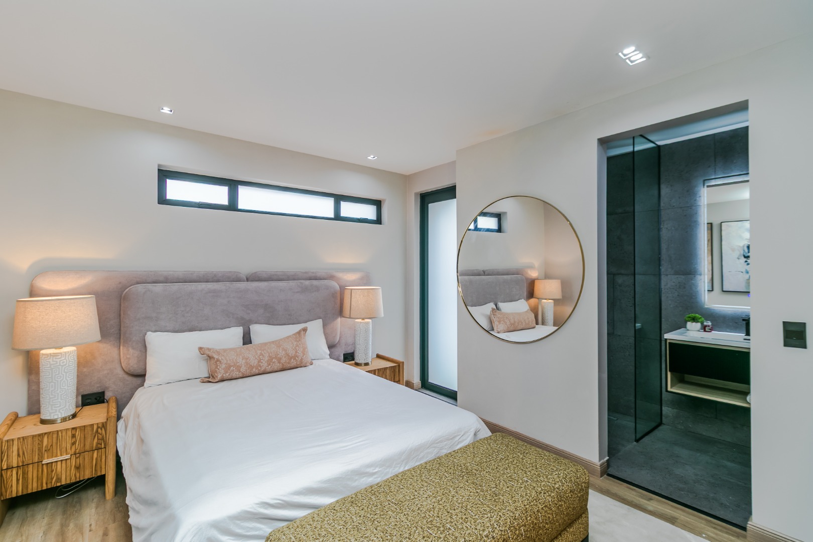 All four bedrooms are generously sized and en-suite, offering exceptional comfort and privacy for family living or executive accommodation. The home is fully furnished with curated, modern pieces that complement the architecture and elevate the turnkey appeal.