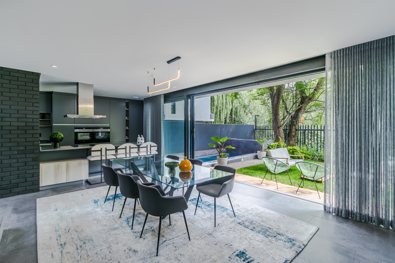 Overlooking a private green park, the home is flooded with natural light and framed by tranquil views, creating a sense of space and calm that is seldom found in cluster living. Sleek architectural lines and contemporary finishes define the interiors, while the open-plan layout allows for effortless flow between living, dining, and entertainment spaces.