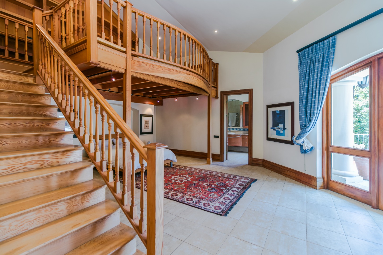 Upstairs, four luxuriously appointed bedrooms, each with its own en-suite bathroom, offer comfort, privacy, and versatility. Downstairs, three additional bedrooms are situated in a private wing, ideal for accommodating guests or extended family.