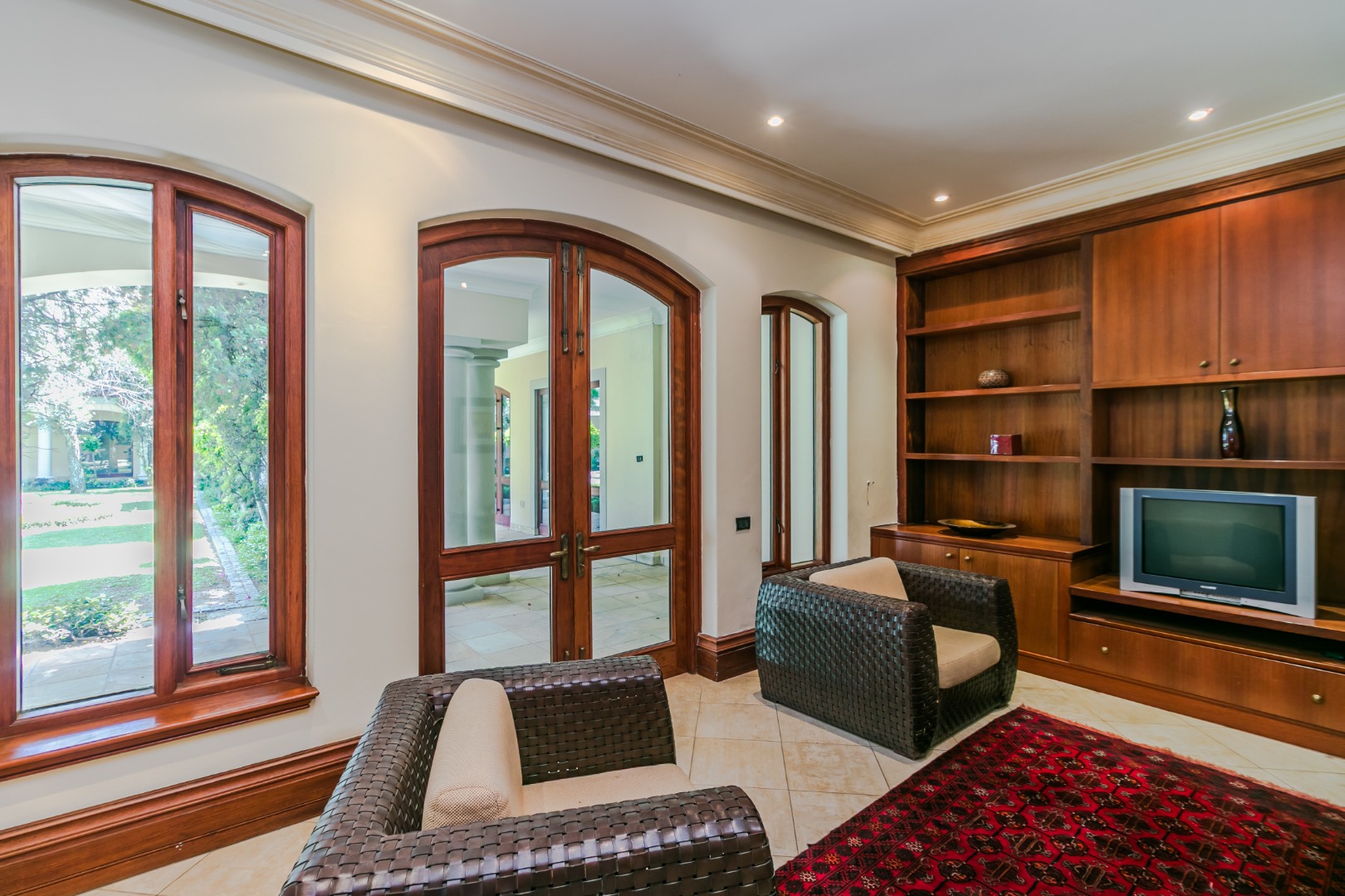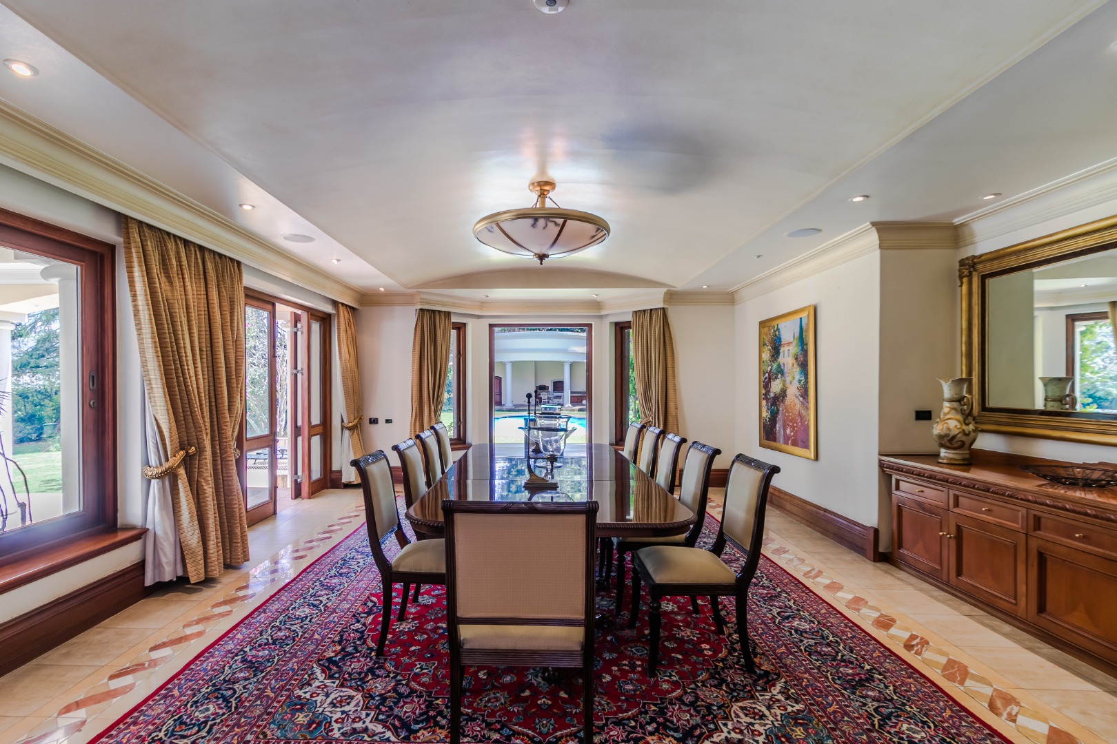 Designed for both sophisticated entertaining and effortless everyday living, the expansive reception spaces include beautifully appointed formal and informal lounges, an elegant dining room, and refined study areas. These seamlessly extend onto a generous patio overlooking exquisitely landscaped gardens, a sparkling swimming pool, tranquil water features, and a stunning indoor pool for year-round enjoyment.