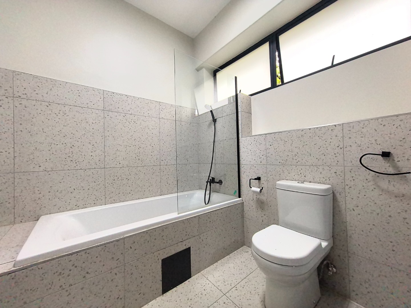 The second bedroom connects seamlessly to the sunroom, offering a warm, light-filled space with a welcoming ambiance. The second and third bedrooms are serviced by a stylish shared bathroom, which also doubles as a guest bathroom for added convenience.