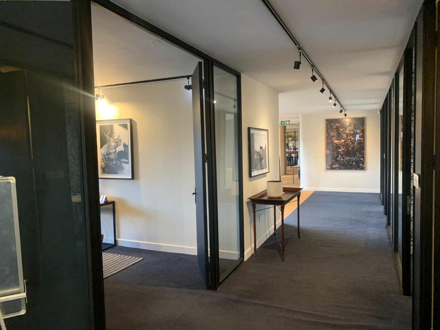 Versatile Layout which Includes a welcoming reception, boardroom, multiple consultation rooms, 2 private phone booths, a spacious open-plan workspace with excellent natural light, and a cozy lounge/pause area.
