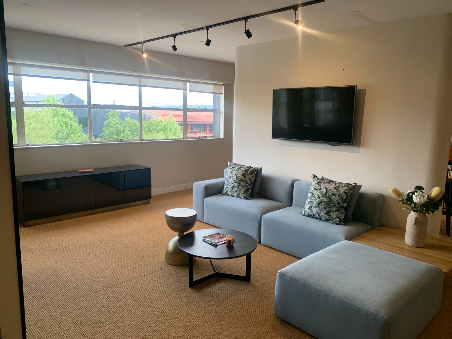The modern building is situated, with visibility to and just off, Katherine Drive. It is in the popular design quarter of Kramerville and is also minutes from Sandton CBD and access to the M1 & N1 freeway, is close-by. There is back-up power and water.