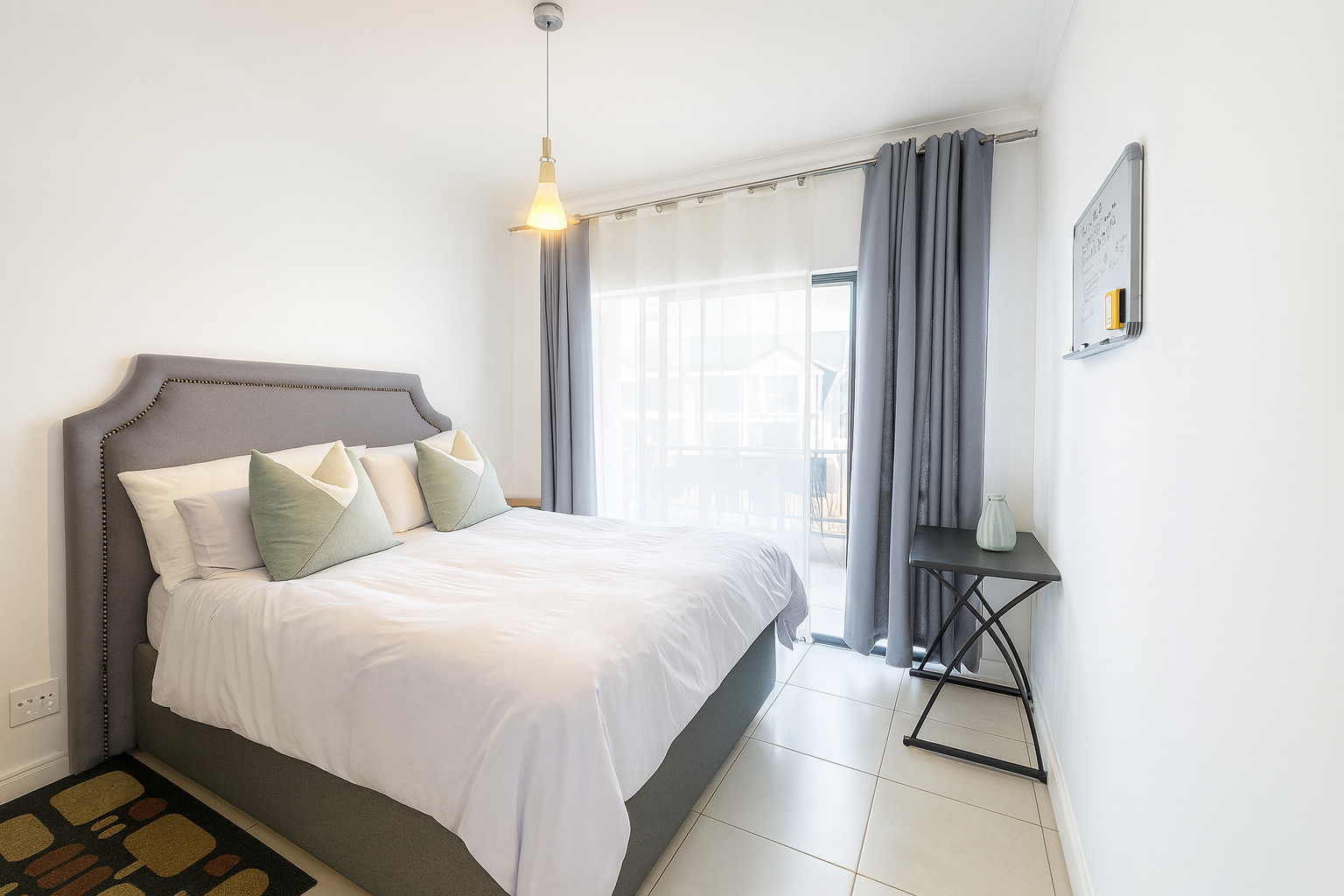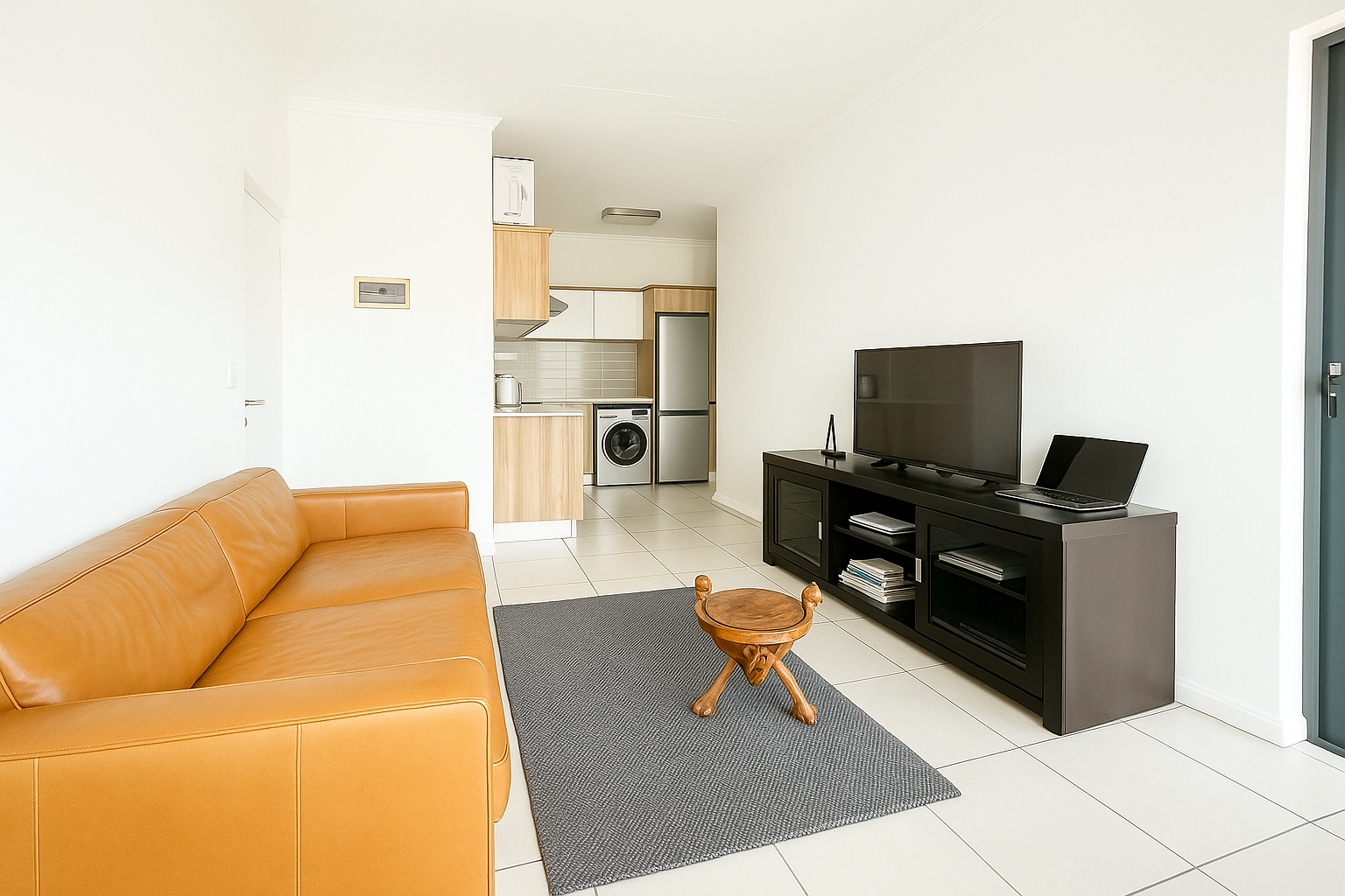 The bedroom is designed for comfort, boasting light wood built-in wardrobes that provide ample storage, complemented by a neutral colour palette and tiled flooring. This apartment is perfectly suited for professionals or individuals seeking a lock-up-and-go lifestyle within a vibrant community. Residents benefit from a dedicated parking bay and access to an array of world-class amenities at The Reid Lifestyle Centre, including a swimming pool, fully equipped gym, clubhouse, and squash court, alongside practical services like a wash zone and dry cleaning.