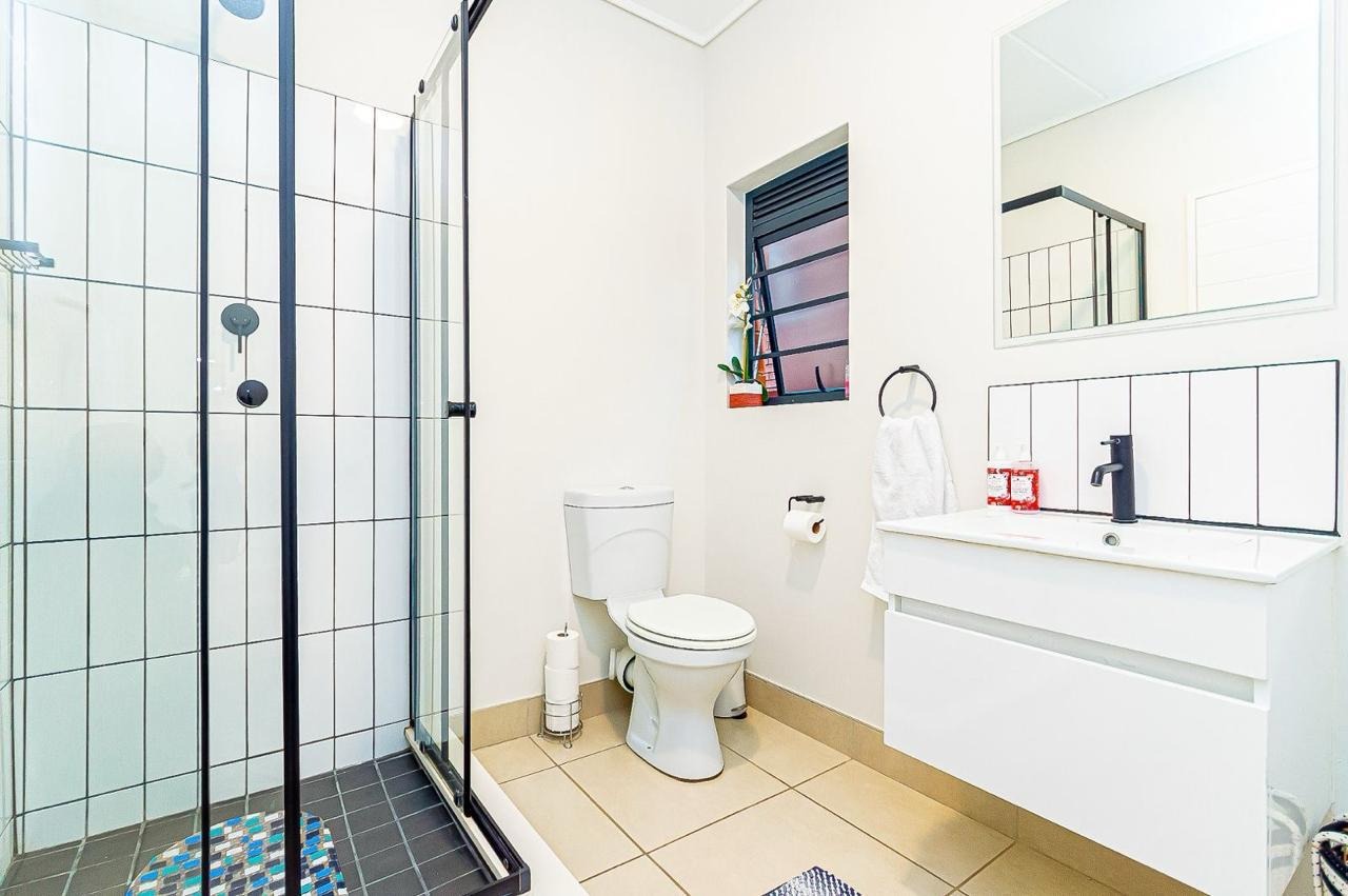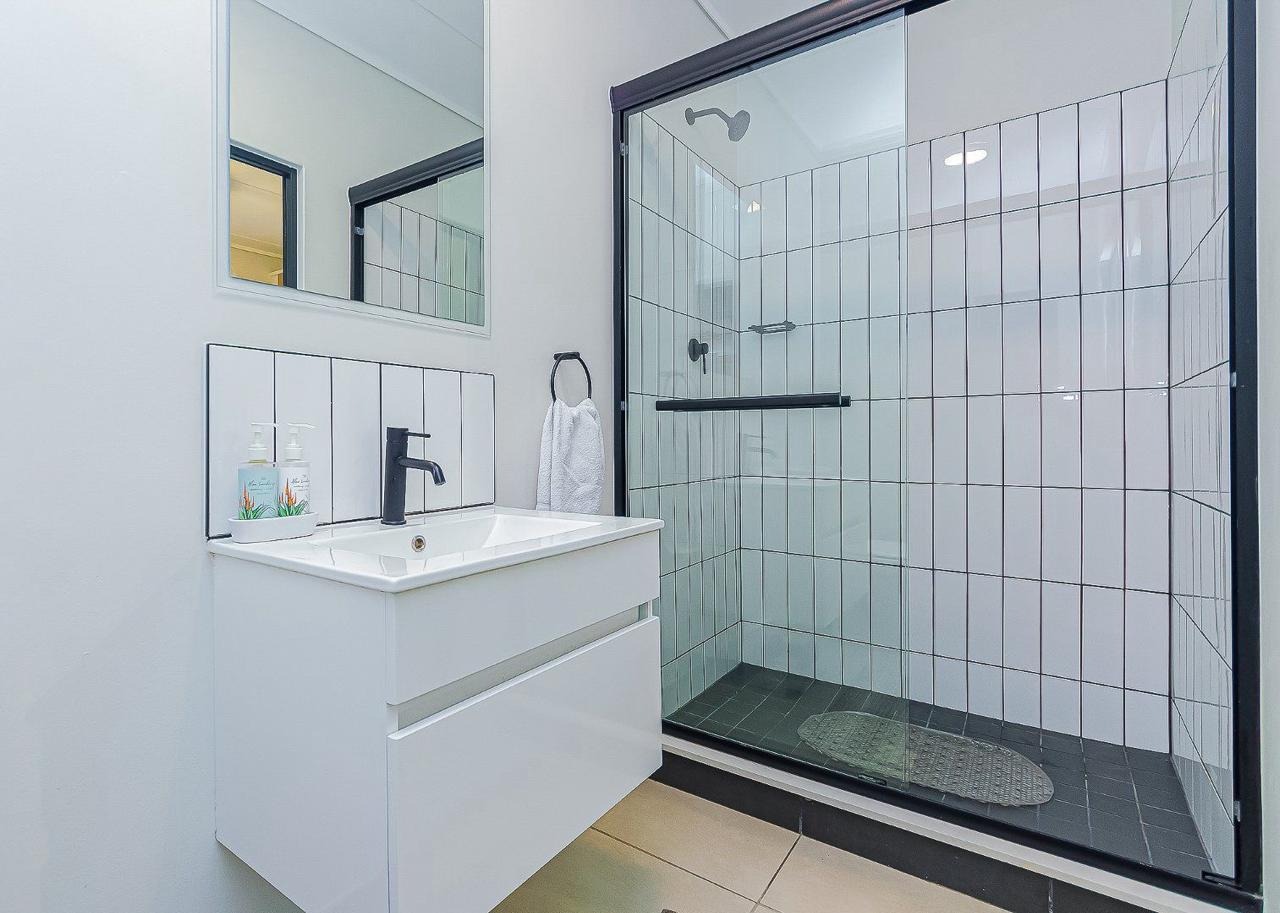 The unit features three generously sized bedrooms and two modern bathrooms. The main bedroom is exceptionally spacious, offering ample cupboard space. The en-suite bathroom is fitted with a shower, basin and toilet.